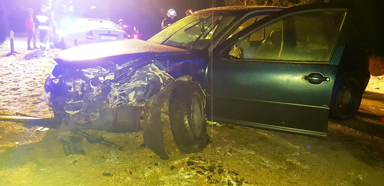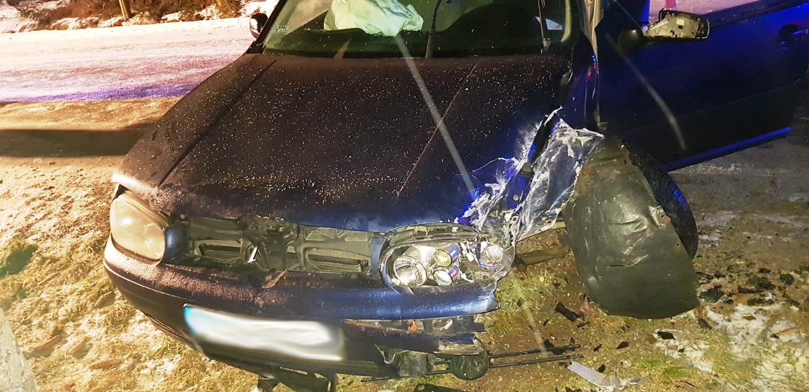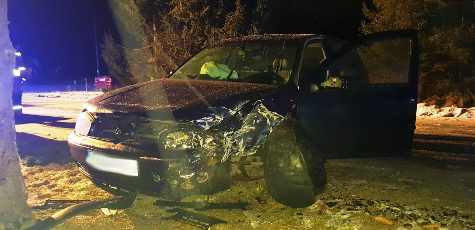 10 stycznia o godzinie 19.57 zastępy z JRG w Krynicy Zdroju oraz z OSP Łabowa zadysponowane zostały do działań w Łabowej. Po przybyciu na miejsce zdarzenia ustalono, że samochód osobowy marki VW Golf wypadł z drogi i uderzył w drzewo. Kierujący pojazdem w chwili przybycia zastępu OSP leżał na drodze obok pojazdu. Działania strażaków polegały na zabezpieczeniu miejsca zdarzenia, udzieleniu pomocy osobie poszkodowanej oraz odłączeniu akumulatora w pojeździe. Droga była całkowicie zablokowana. Z uwagi na trudne warunki zadysponowano piaskarkę. Na miejsce dotarła karetka Pogotowia ratunkowego, która przejęła osobę poszkodowaną. Po przybyciu na miejsce zastępu z JRG jedna z obecnych na miejscu osób przyznała, że również była pasażerem pojazdu i zaczęła uskarżać się na dolegliwości. Informacja ta została przekazana koordynatorowi medycznemu Pogotowia ratunkowego, który powiadomił kolejny zespół ratownictwa medycznego. Do czasu przyjazdu kolejnej karetki rota medyczna strażakow sprawowała opiekę nad osobą poszkodowaną. W trakcie działań jedna z osób obecna na miejscu zdarzenia udzieliła informacji, że kolejna osoba podróżowała tym pojazdem. Osoba ta od tej chwili znajdowała się pod opieką strażaków PSP. Ponownie zapytano wszystkich uczestników zdarzenia czy nikt więcej nie przebywał w pojedzie. Uzyskano ostatecznie potwierdzenie, że były to tylko trzy osoby. Karetka zabrała do szpitala jedna osobę. Kolejne dwie osoby, które podróżowały samochodem po przebadaniu pozostały na miejscu zdarzenia. Działania JRG zostały zakończone a na miejscu na czas prowadzonych czynności policyjnych pozostał zastęp z OSP Łabowa. Działania strażaków trwały półtorej godziny.
