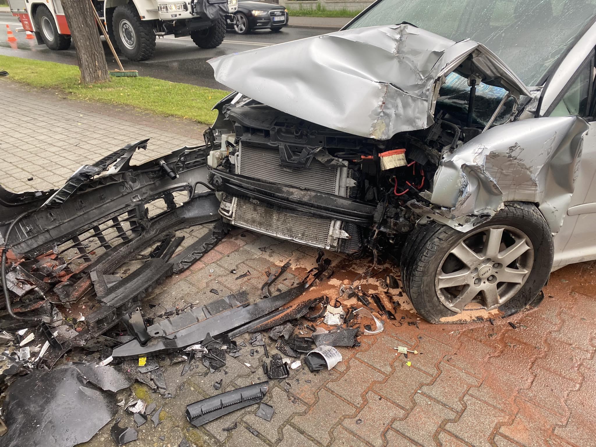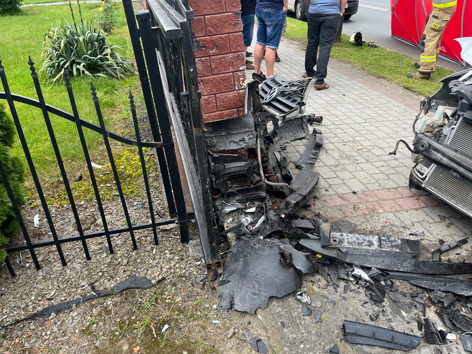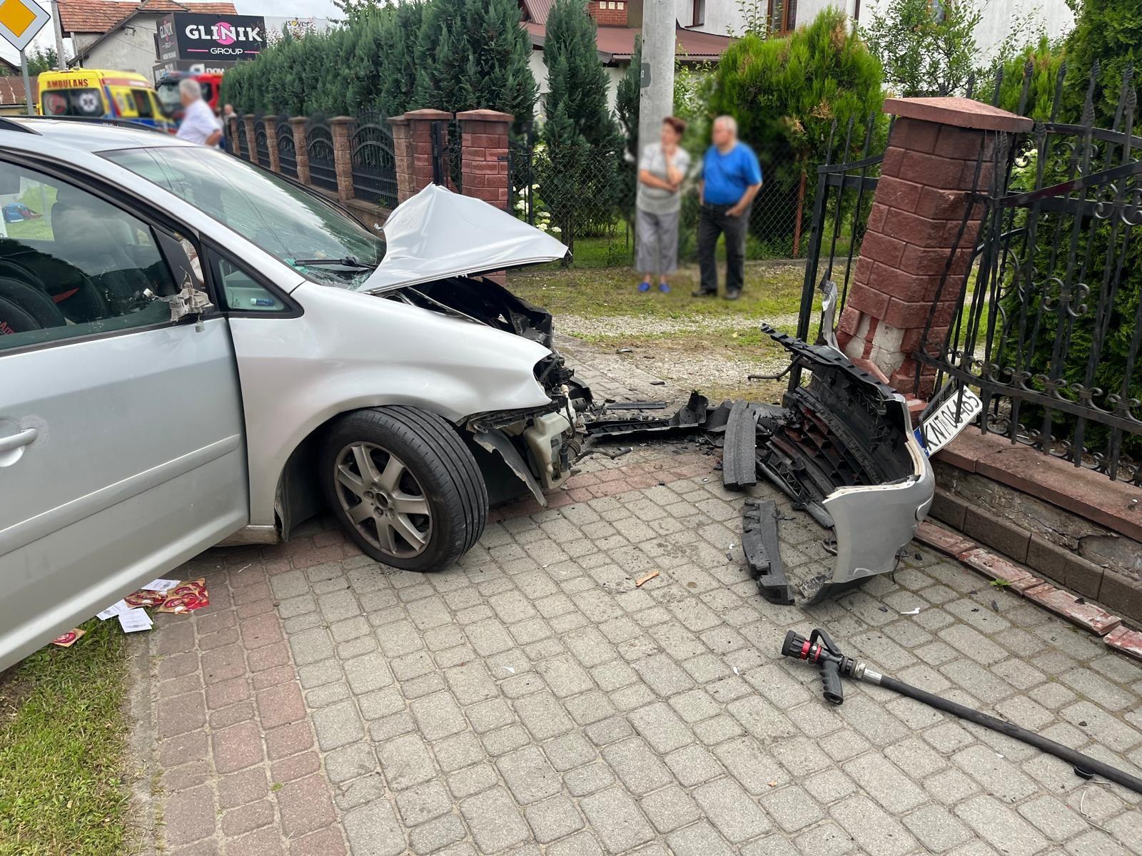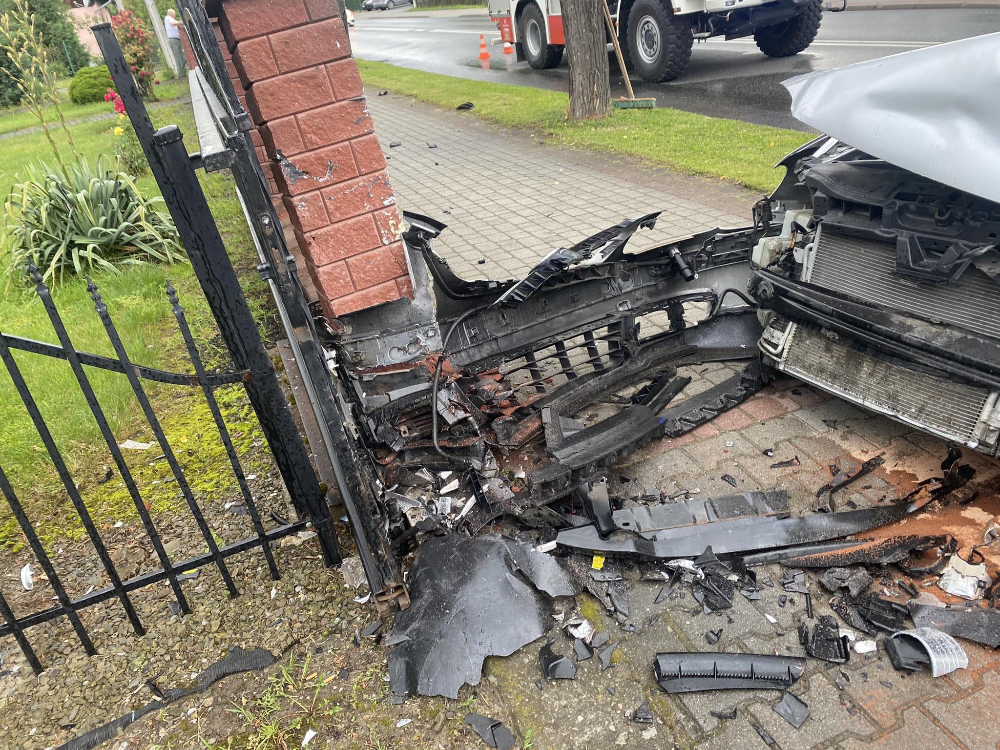 Łącko – samochód osobowy wypadł z drogi i uderzył w ogrodzenie posesji