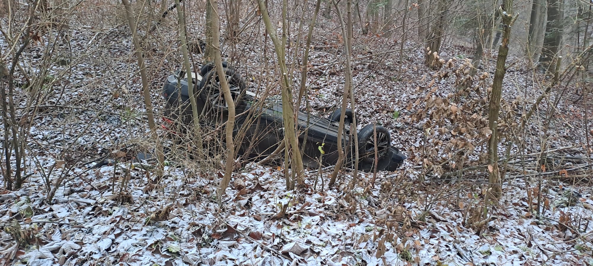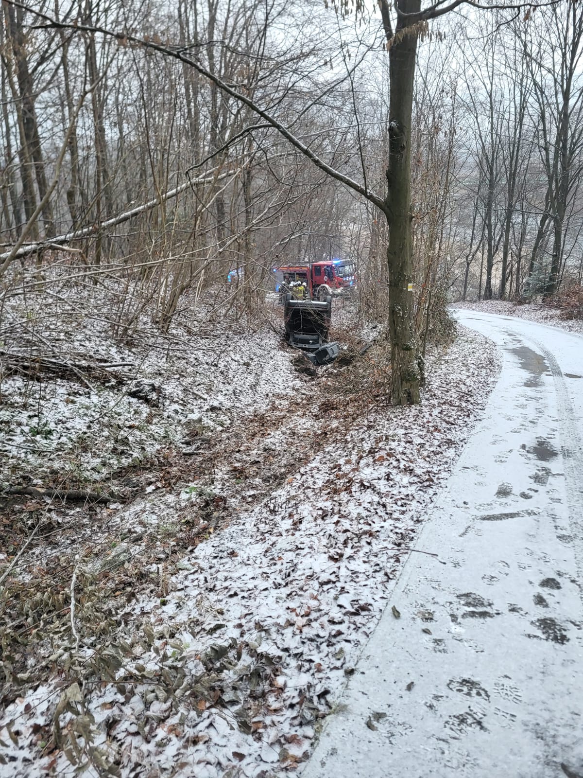 4 grudnia o godzinie 7.28 zastępy z JRG nr 2 w Nowym Sączu, OSP Łącko, OSP Czerniec oraz OSP Zarzecze zadysponowane zostały do działań w Łącku. Po przybyciu na miejsce zdarzenia ustalono, że doszło do dachowania samochodu osobowego marki Nissan. W samochodzie podróżowały dwie osoby, które w chwili przybycia na miejsce strażaków znajdowały się pojeździe. Samochód znajdował się na poboczu. Działania strażaków polegały na zabezpieczeniu miejsca zdarzenia. Osoby poszkodowane wyszły o własnych siłach przez bagażnik i zostały przebadane przez ratowników medycznych. Osoby te nie zostały poszkodowane. Po przekazaniu pojazdu właścicielowi strażacy zakończyli swoje działania, które trwały prawie dwie godziny.