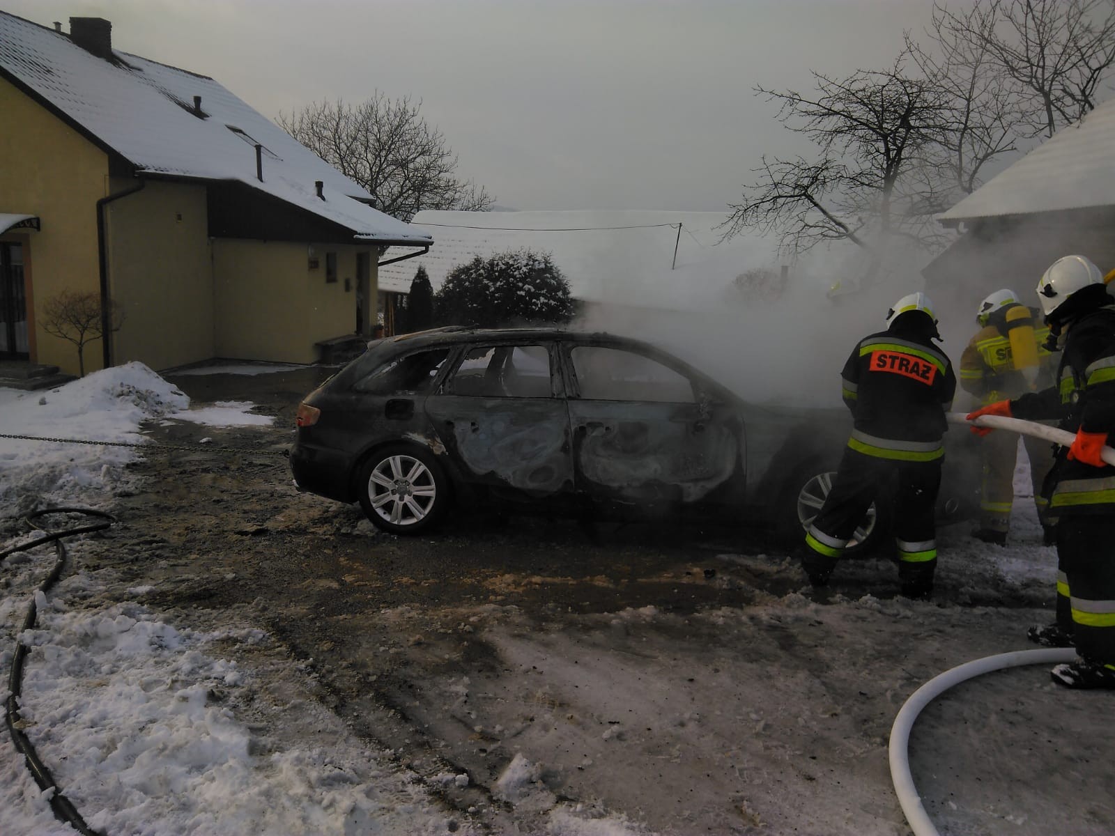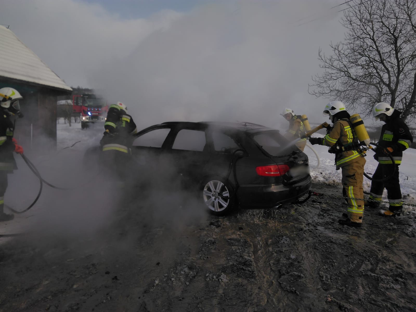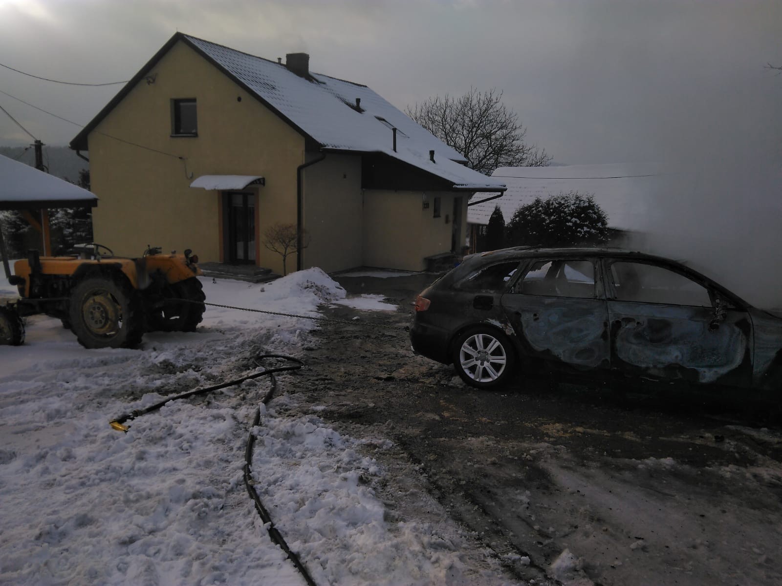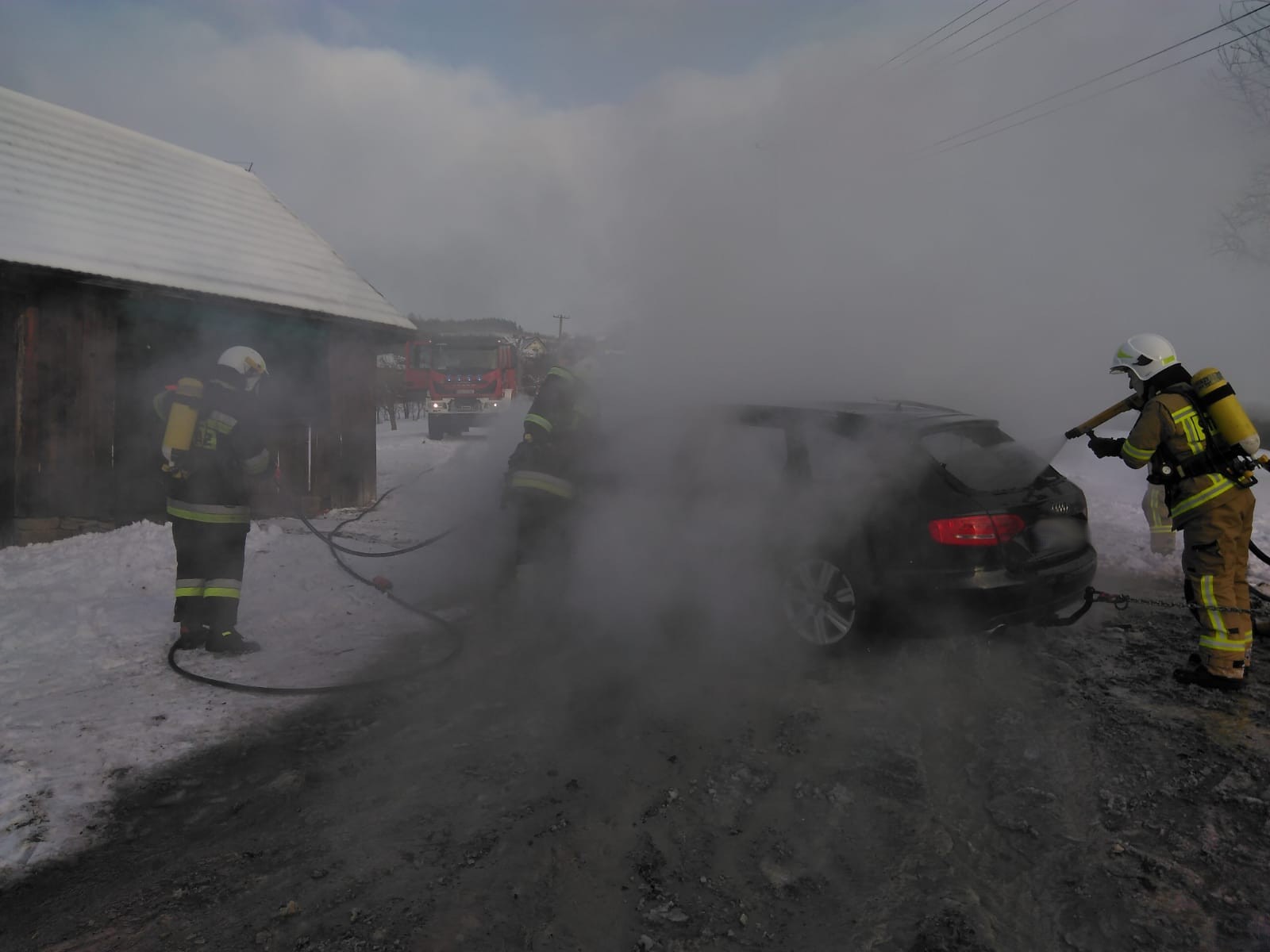 13 lutego około godziny 14.47 zastępy z JRG nr 2 w Nowym Sączu, OSP Łącko oraz OSP Zagorzyn zadysponowane zostały do działań w Łącku. Po przybyciu na miejsce zdarzenia ustalono, że palił się samochód osobowy marki Audi. Samochód w chwili przybycia straży pożarnej znajdował się przed garażem i w całości objęty był pożarem. Właściciel przed przyjazdem straży pożarnej wyciągnął samochód traktorem na zewnątrz. Pojazd był zasilany LPG. Działania zastępów straży pożarnej polegały na zabezpieczeniu miejsca zdarzenia oraz podaniu jednego prądu wody w natarciu na palący się pojazd. Po ugaszeniu pożaru sprawdzono go kamerą termowizyjną. Kamerą termowizyjną sprawdzono również garaż nie stwierdzając zagrożenia. Działania strażaków trwały ponad godzinę. Przyczyna pożaru jest nieustalona.