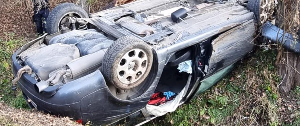 Łazy Biegonickie - dachowanie samochodu osobowego