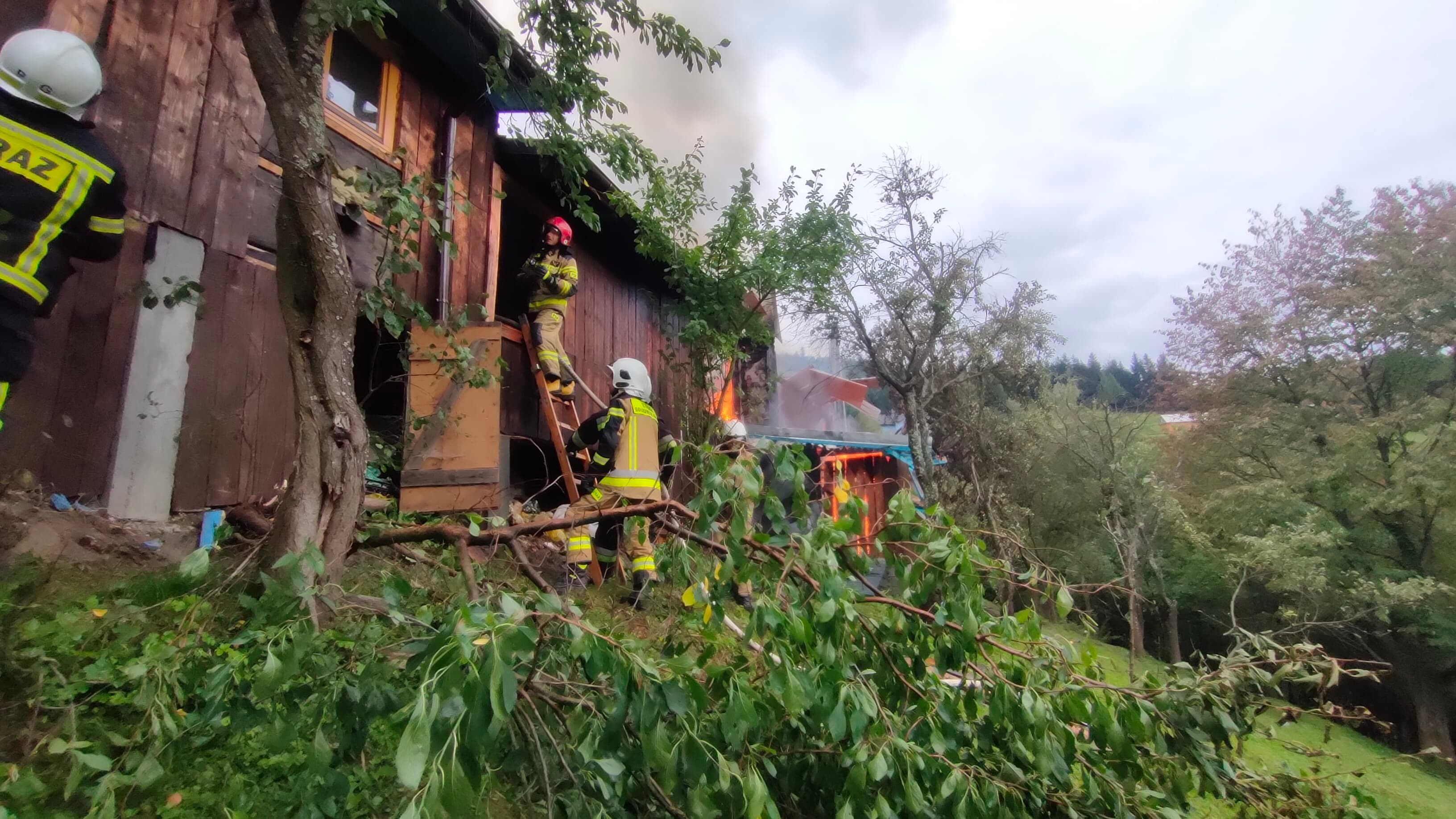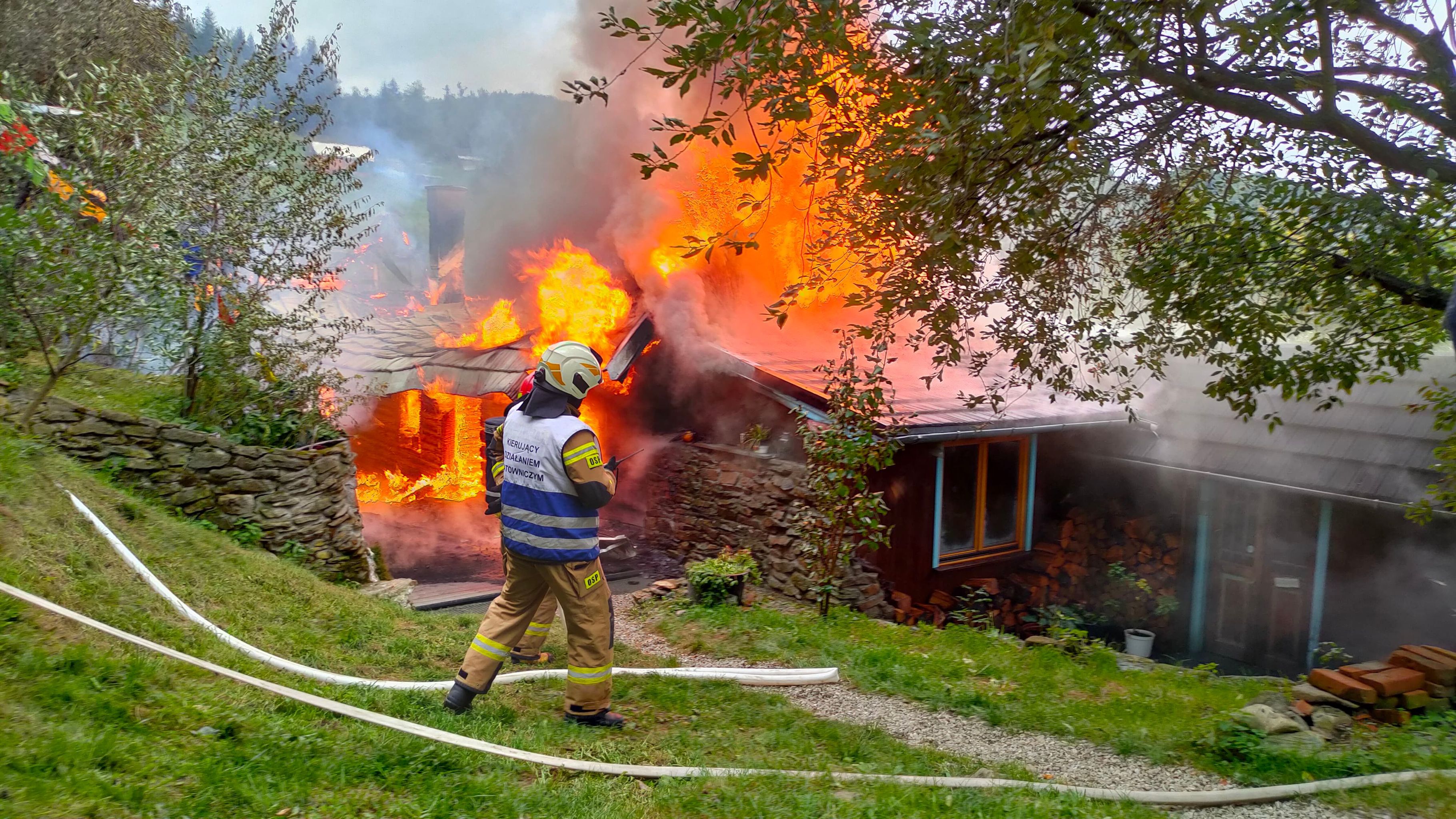 Łazy Brzyńskie - pożar drewnianego budynku mieszkalnego