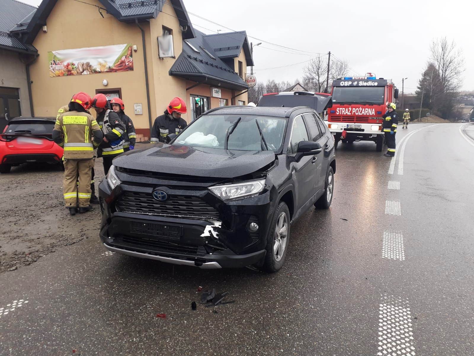 23 lutego o godzinie 8.06 zastępy z JRG nr 1 w Nowym Sączu, OSP Mogilno oraz OSP Siedlce zadysponowane zostały do działań w miejscowości Łęka. Po przybyciu na miejsce zdarzenia ustalono, że doszło do kolizji dwóch samochodów osobowych marki Ford i Toyota (najechanie na tył pojazdu). Samochodami podróżowali sami kierowcy. Na miejscu była karetka Pogotowia, której załoga w karetce zaopatrywała osoby uczestniczące w zdarzeniu. Obydwa pojazdy znajdowały się na jednym pasie jezdni. Występowały utrudnienia w ruchu drogowym. Działania strażaków polegały na zabezpieczeniu miejsca zdarzenia oraz wprowadzeniu ruchu wahadłowego pojazdów. Dodatkowo odłączono zasilanie w samochodzie Toyota. W trakcie działań stan obu osób pogorszył się i zostały one zabrane na dalsze badania do szpitala. Zastępy z JRG nr 1 zakończyły działania. Na miejscu pozostały zastępy OSP, które kontynuowały zabezpieczanie miejsca zdarzenia oraz kierowanie ruchem na czas trwania czynności prowadzonych przez Policję. Następnie pojazdy oraz ich pozostałości usunięto na pobocze i udrożniono ruch. Działania strażaków trwały godzinę.