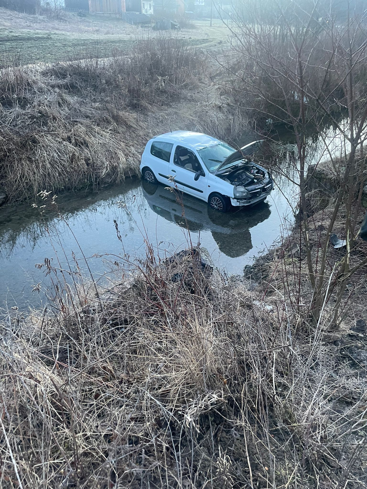 Librantowa – samochód osobowy wypadł z drogi i wpadł do potoku