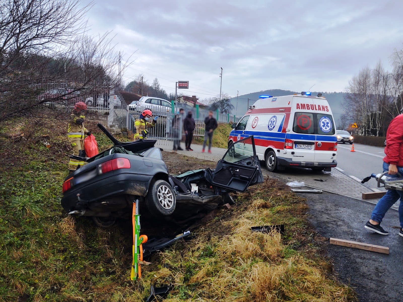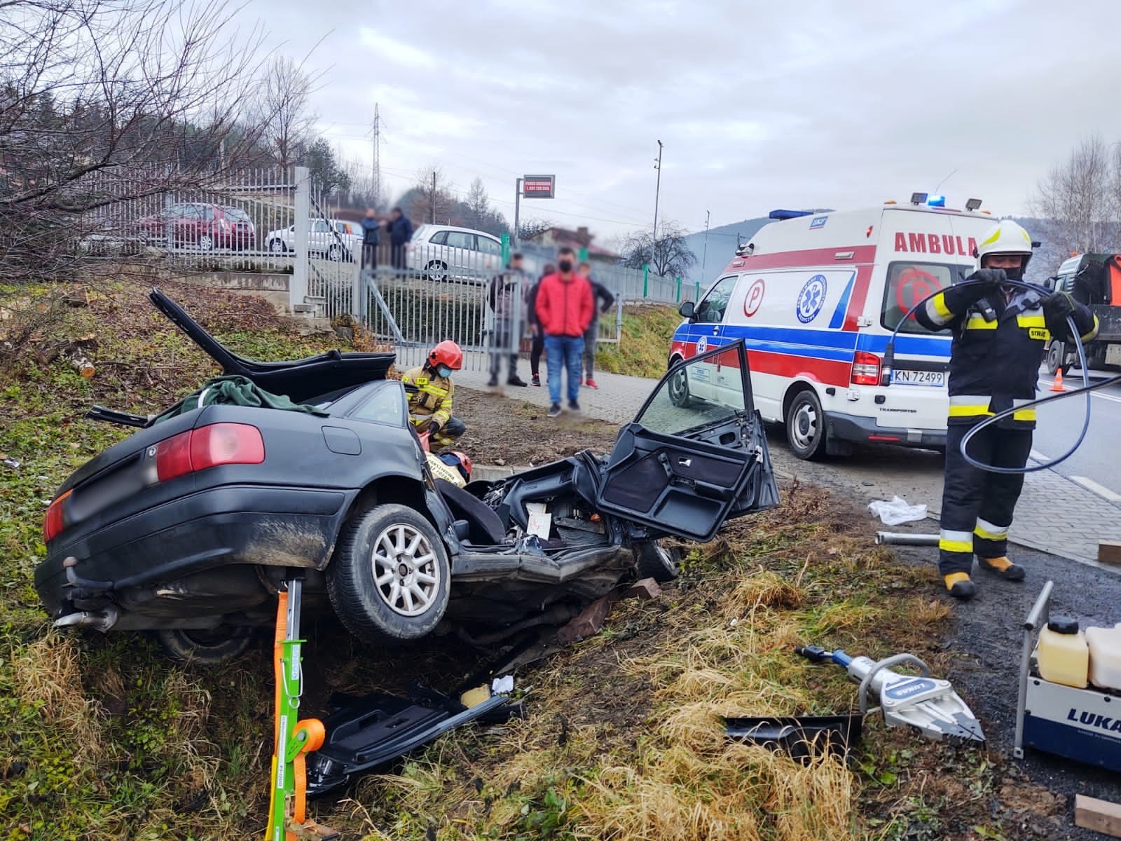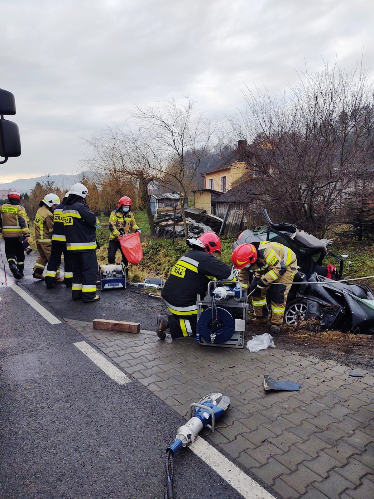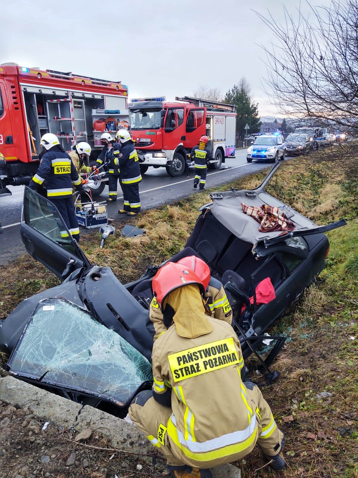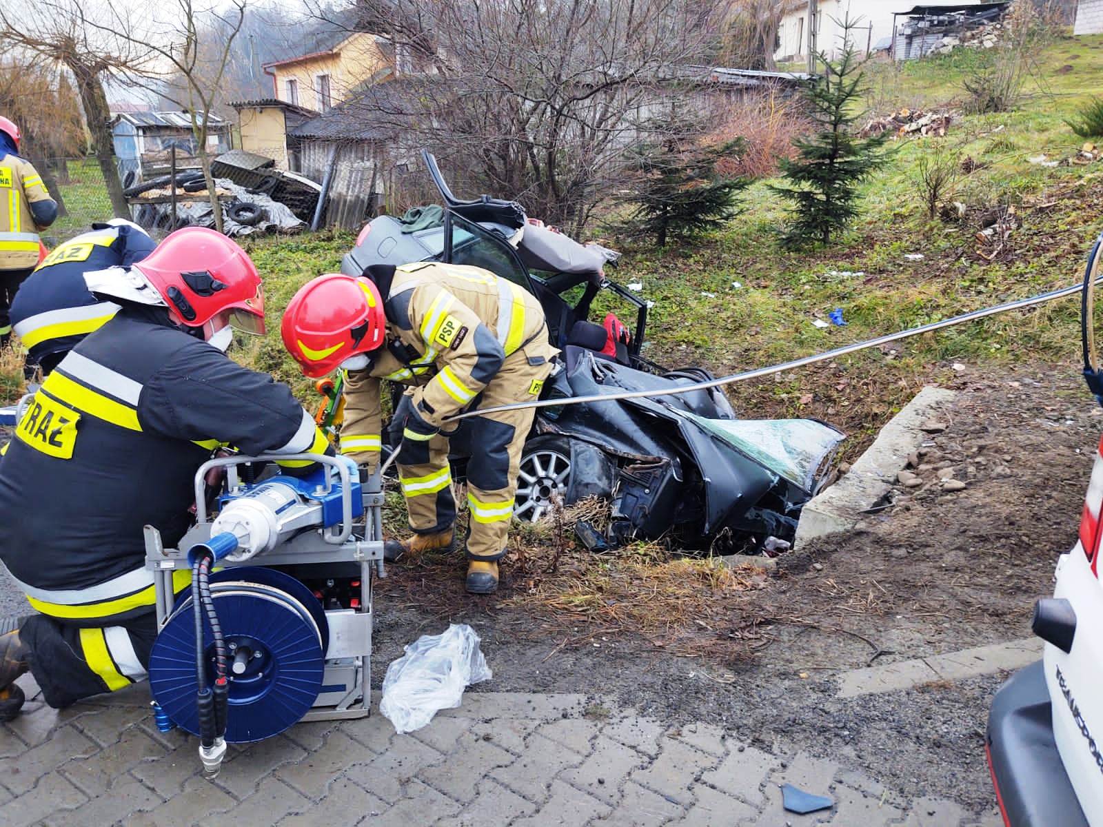 8 grudnia o godzinie 7. 55 zastępy z JRG nr 1 w Nowym Sączu zadysponowane zostały do działań na drodze w Łososinie Dolnej. Po przybyciu na miejsce zdarzenia stwierdzono, że samochód osobowy wypadł z drogi i uderzył w przepust. Samochodem podróżowała jedna osoba, która zakleszczona przebywała w pojeździe. W celu jej wydobycia trzeba było rozciąć karoserie samochodu przy użyciu hydraulicznego sprzętu tnąco - rozpierającego. Osoba poszkodowana została przewieziona do szpitala. Podczas prowadzenia działań ratowniczych jeden pas ruchu był zablokowany. Czynności dochodzeniowe mające na celu ustalenie okoliczności przyczyn zdarzenia prowadziła Policja.