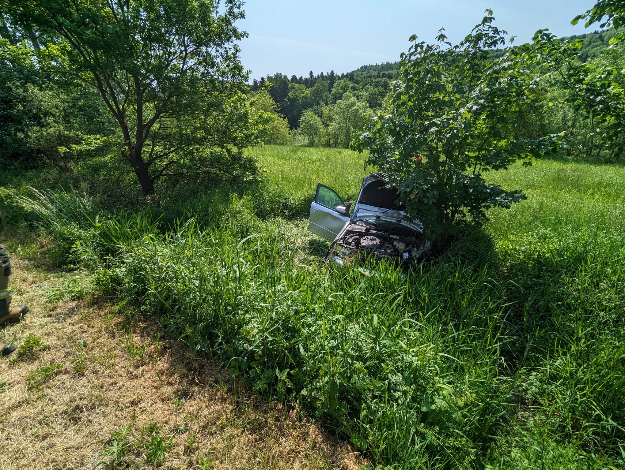 Łososina Dolna - samochód osobowy wypadł z drogi