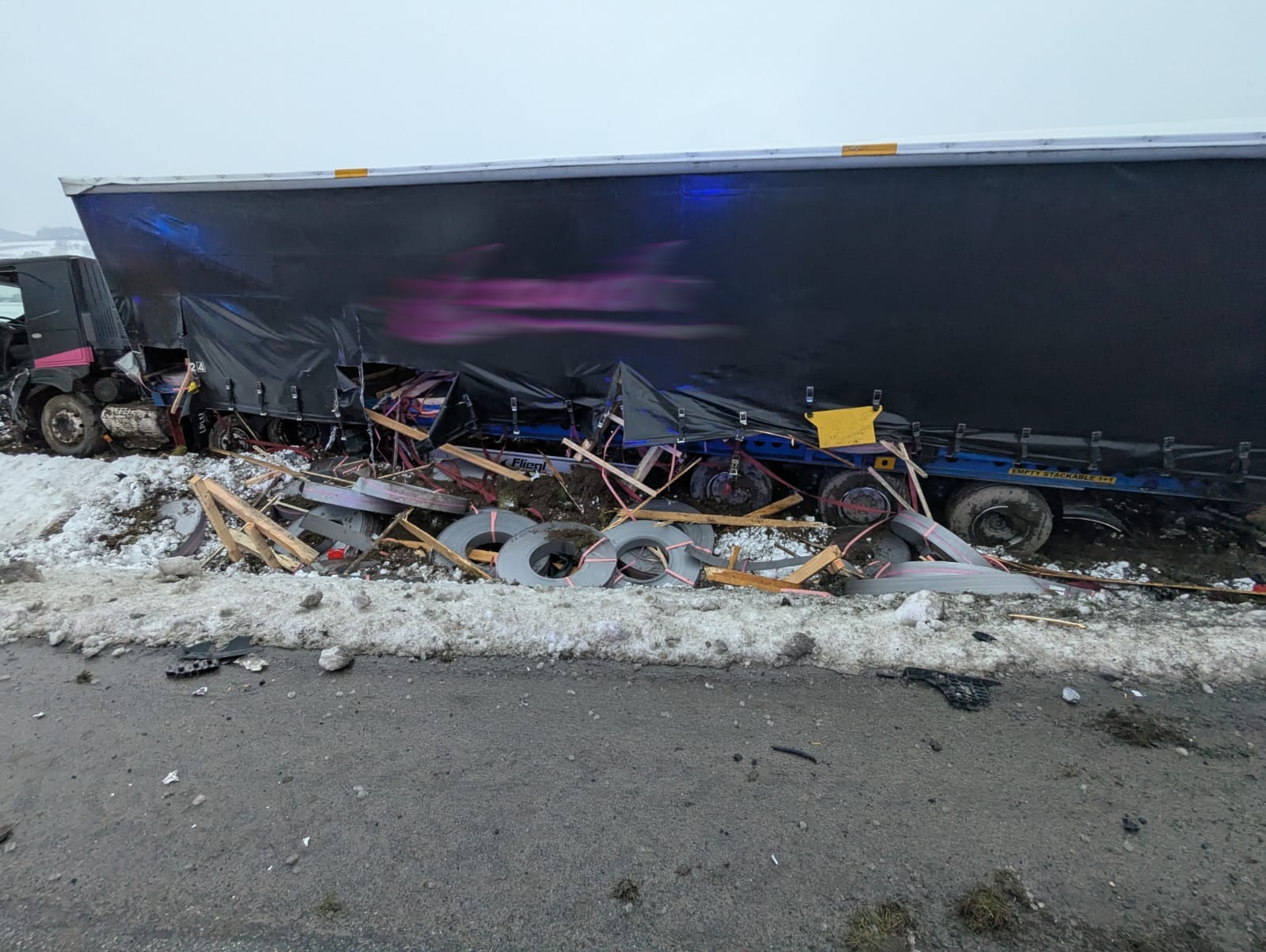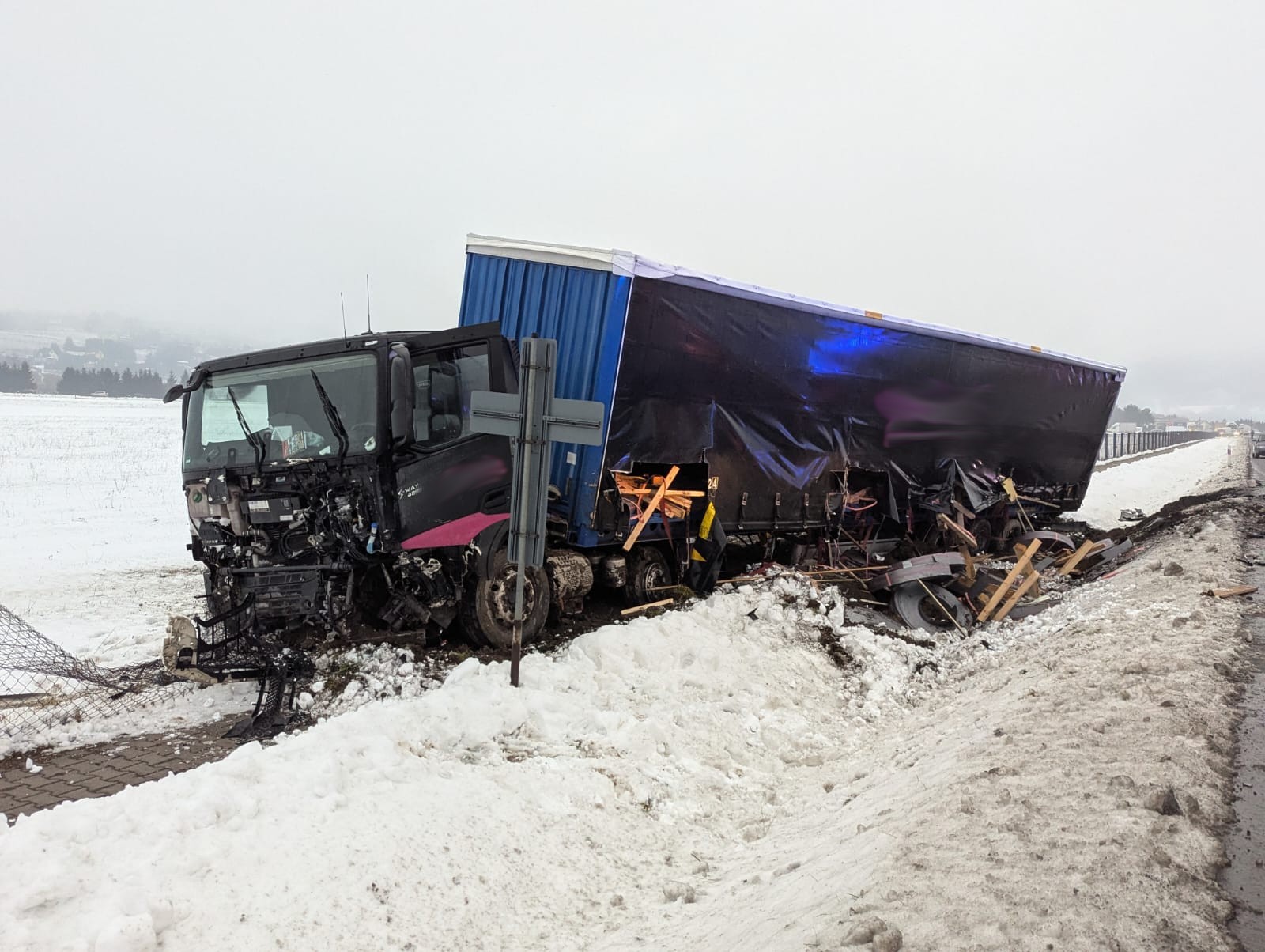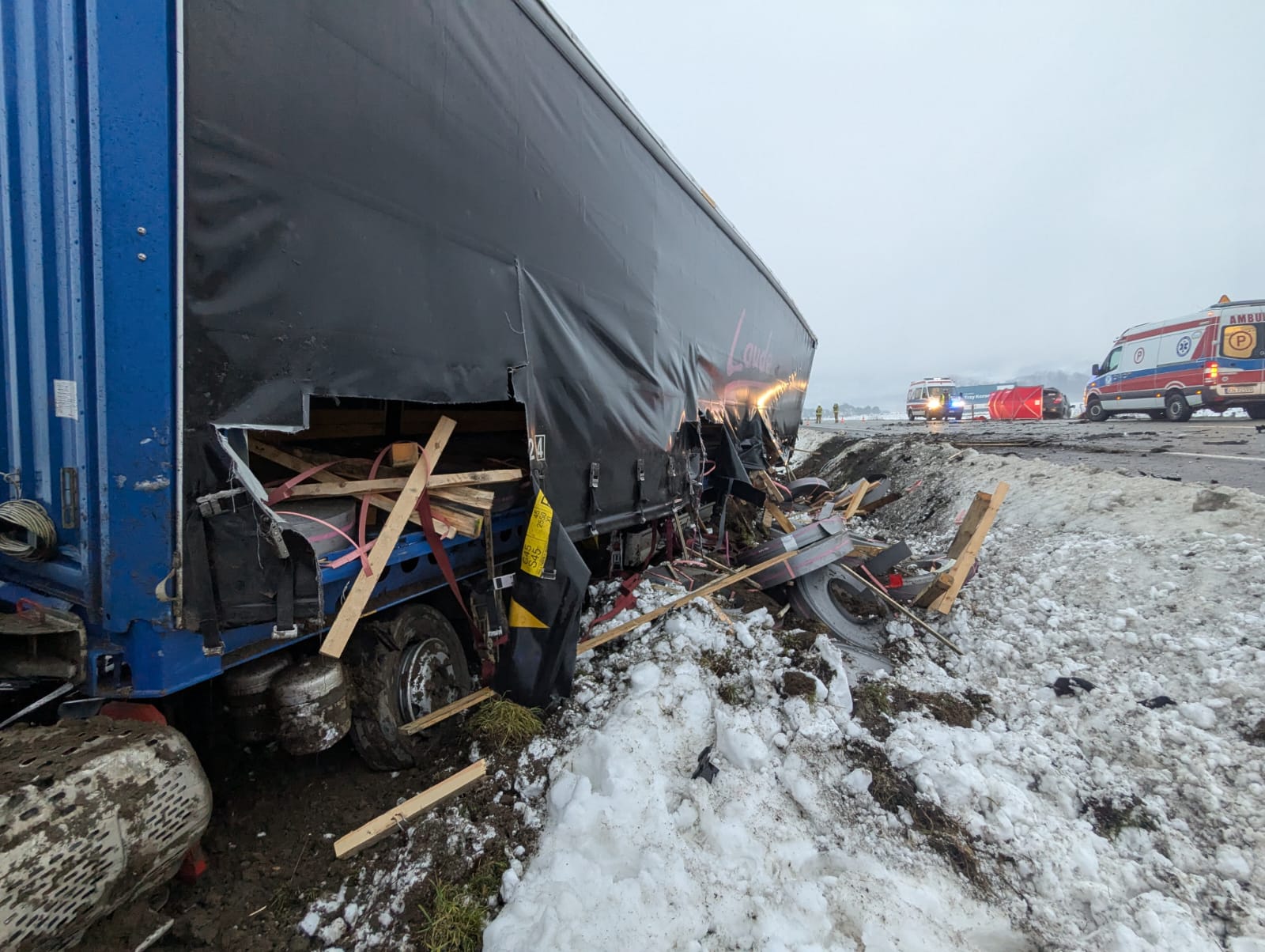 16 stycznia o godzinie 7.02. zastępy z JRG nr 1 w Nowym Sączu, OSP Łososina Dolna, OSP Tęgoborze oraz OSP Tabaszowa zadysponowane zostały do działań w Łososinie Dolnej. Po przybyciu na miejsce zdarzenia ustalono, że na drodze krajowej nr 75, doszło do zderzenia samochodu ciężarowego marki Iveco z naczepą oraz osobowego marki Hyundai. Samochód ciężarowy znajdował się całkowicie poza obrysem jezdni. Pojazd zjechał do przydrożnego rowu oraz częściowo na teren Aeroklubu Podhalańskiego w Łososinie Dolnej. Kierowca opuścił pojazd o własnych siłach i znajdował się w karetce. Samochód osobowy znajdował się częściowo na poboczu drogi oraz skarpie przydrożnego rowu. Osoba kierująca pozostawała w pojeździe. W wyniku obniesionych obrażeń Ratownicy Medyczni odstąpili od udzielania pomocy osobie kierującej samochodem osobowym stwierdzając zgon. Działania strażaków polegały na zabezpieczeniu miejsca zdarzenia oraz odłączeniu zasilania elektrycznego w samochodzie ciężarowym. W samochodzie osobowym akumulator znajdował się poza pojazdem. Ruch drogowy został zamknięty w obu kierunkach. Dalsze działania polegały na rozstawienie parawanu oraz wyznaczeniu tymczasowego objazdu. Czynności dochodzeniowo śledcze prowadziła Policja. Kierujący samochodem ciężarowym został zabrany do szpitala. Wydobyto denata z pojazdu przy pomocy narzędzi hydraulicznych. Przybyłe na miejsce pomoce drogowe zabrały pojazdy uczestniczące w zdarzeniu. Dalsze działania polegały na zmyciu jezdni przy użyciu prądów wody oraz usunięciu pozostałości po zdarzeniu z jezdni. Plamę płynów eksploatacyjnych powodujących śliskość jezdni usunięto poprzez użycie dyspergentu oraz sorbentu. Po udrożnieniu ruchu drogowego w obydwu kierunkach wszystkie zastępy zakończyły działania trwające prawie osiem godzin.