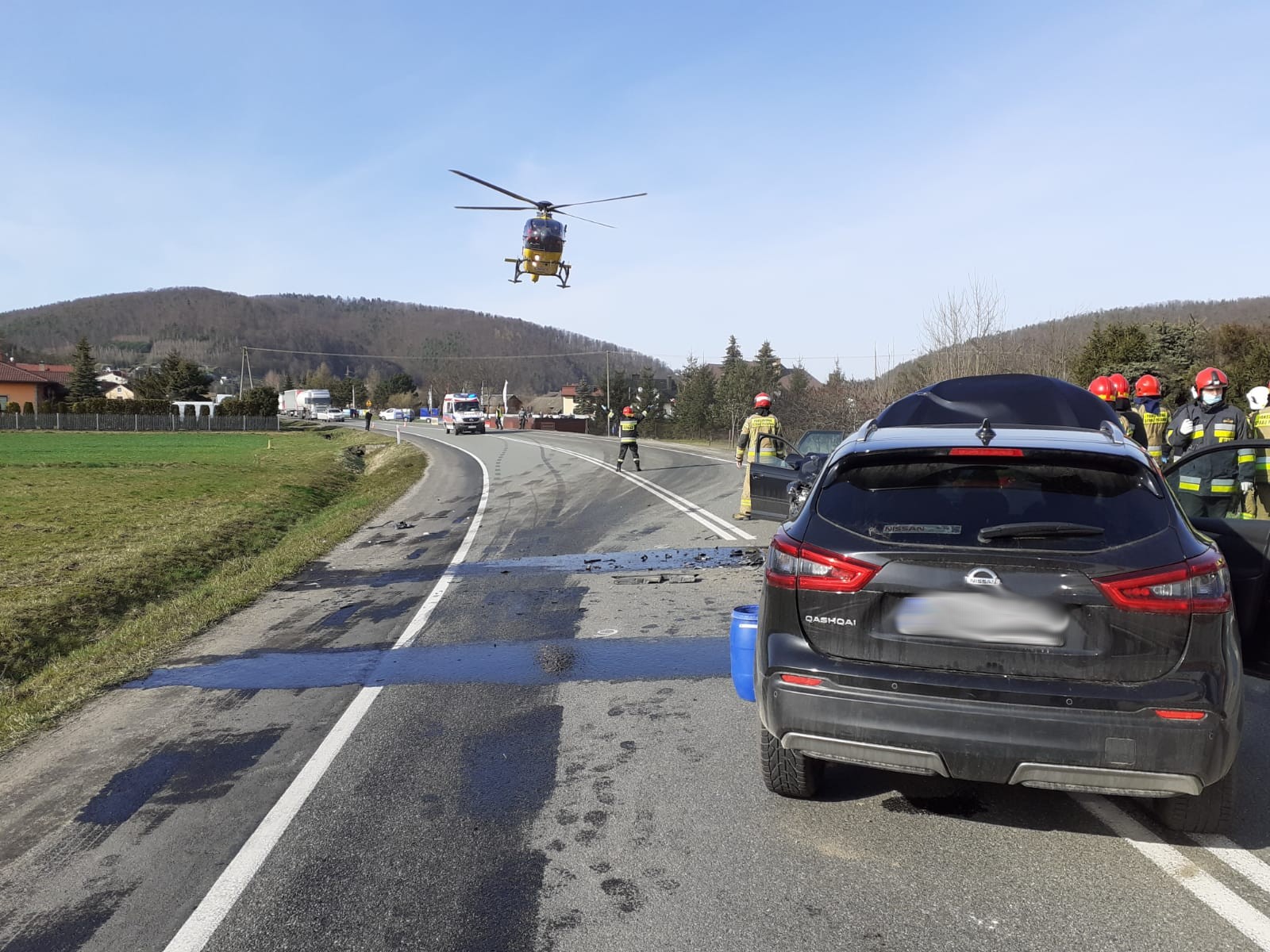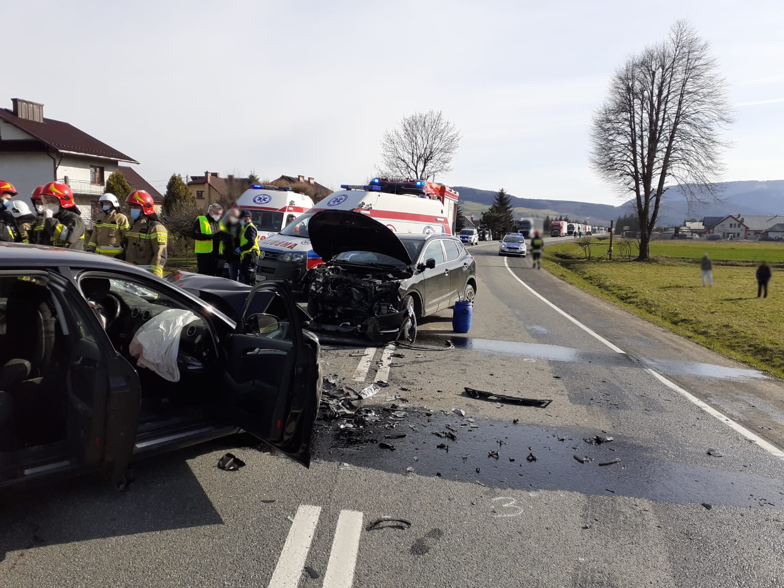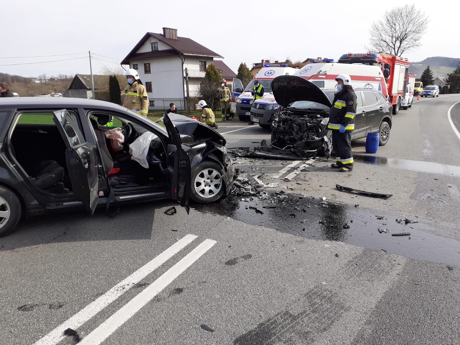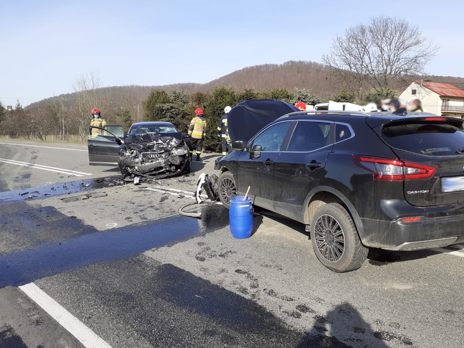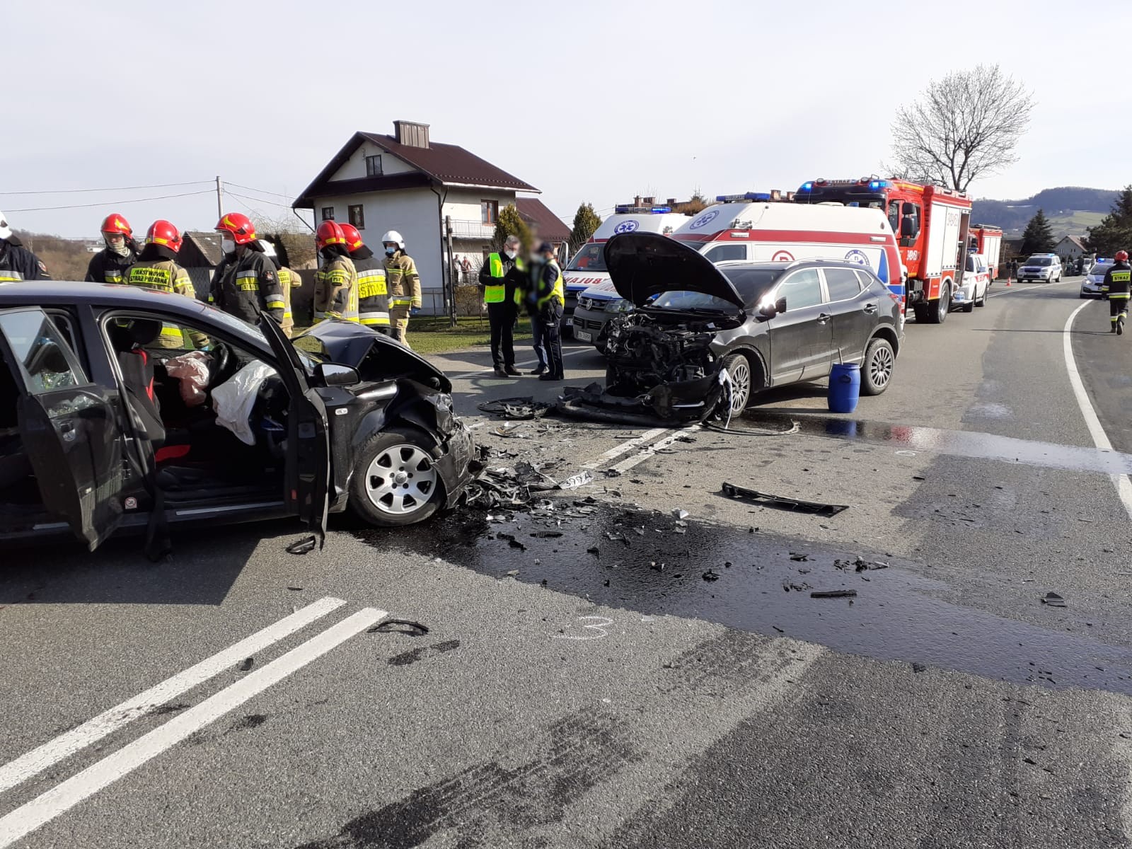 9 kwietnia około godziny 15.20 zastępy z JRG nr 1 w Nowym Sączu oraz OSP Łososina Dolna zadysponowane zostały do działań w Łososinie Dolnej. Po przybyciu na miejsce ustalono, że na drodze krajowej 75 doszło do czołowego zderzenia dwóch samochodów marki Audi i Nissan. Samochody całkowicie blokowały ruch w obydwu kierunkach. Audi podróżowały cztery osoby, natomiast Nissanem dwie osoby. Wszyscy uczestnicy zdarzenia opuścili pojazdy o własnych siłach i znajdowały się na poboczu jezdni. W zdarzeniu poszkodowanych zostało pięć osób. Jedna osoba nie zgłaszała żadnych dolegliwości. Z pojazdów wydobywały się płyny eksploatacyjne oraz olej silnikowy. Działania strażaków polegały na zabezpieczeniu miejsca zdarzenia oraz udzieleniu pomocy ratownikom medycznym Pogotowia Ratunkowego w zaopatrywaniu poszkodowanych. Dokonano rozłączenia klem akumulatorów. Osoba, która na początku nie zgłaszała dolegliwości, źle się poczuła. Udzielono jej pomocy. Zorganizowano lądowiska dla śmigłowca LPR na drodze krajowej. Wszystkie osoby uczestniczące w zdarzeniu zostały przewiezione do szpitala. Czynności dochodzeniowe prowadziła Policja. Pojazdy biorące udział w zdarzeniu zostały zabrane z miejsca zdarzenia przez Pomoc Drogową. Dodatkowo działania strażaków polegały na sorpcji rozlanych płynów eksploatacyjnych oraz oleju, uprzątnięciu pozostałości powypadkowych z jezdni. Działania strażaków trwały prawie dwie godziny.