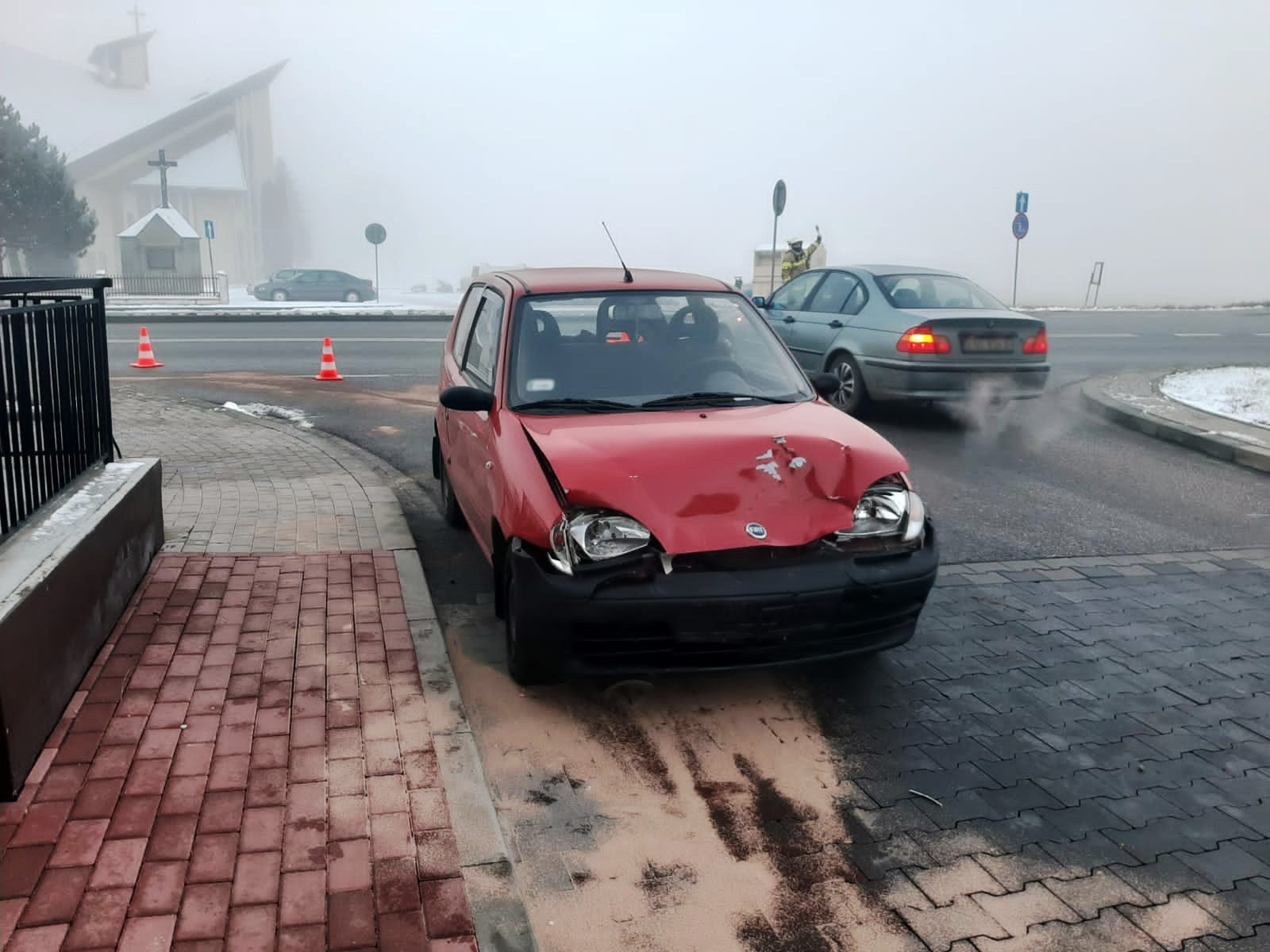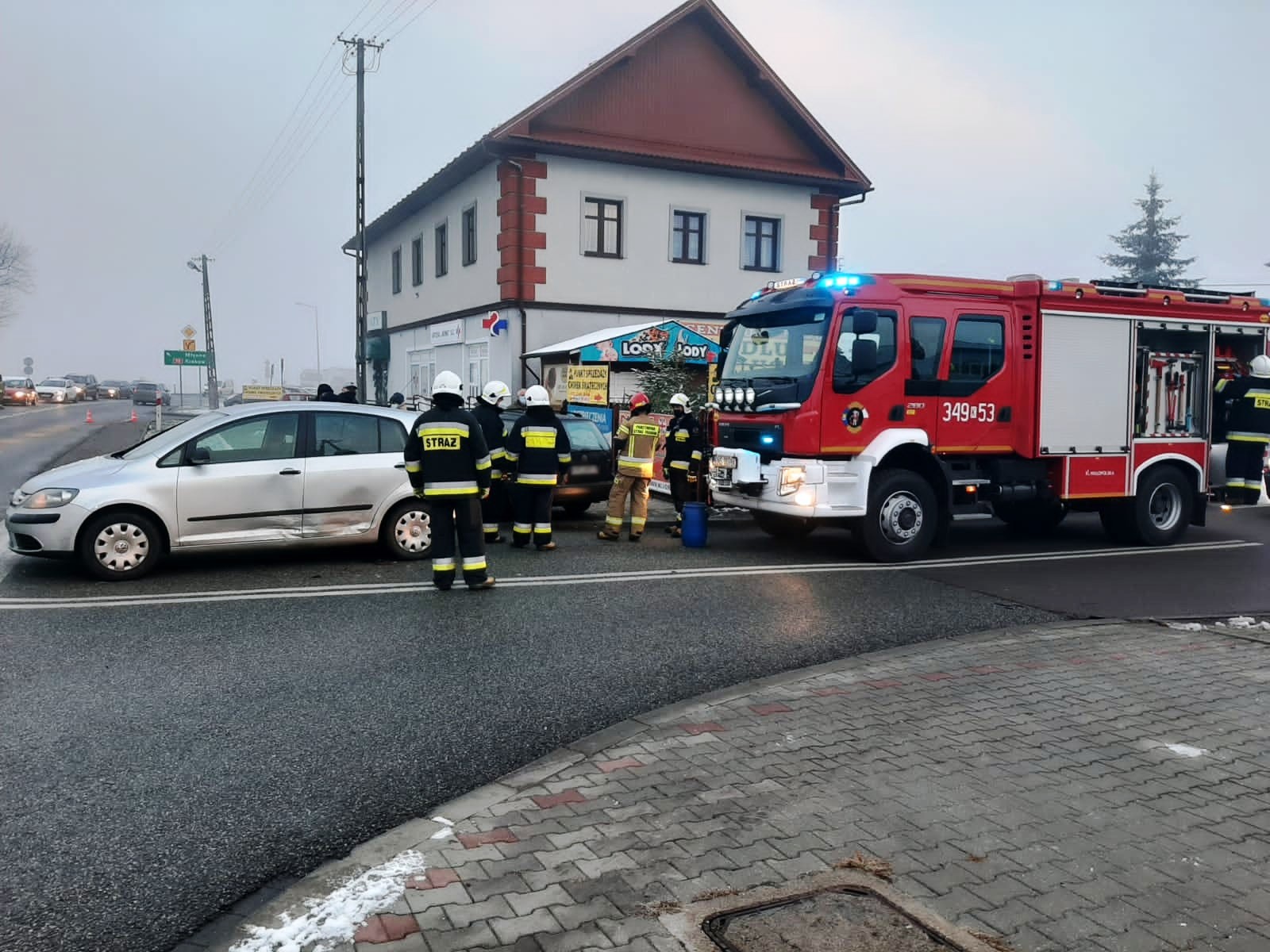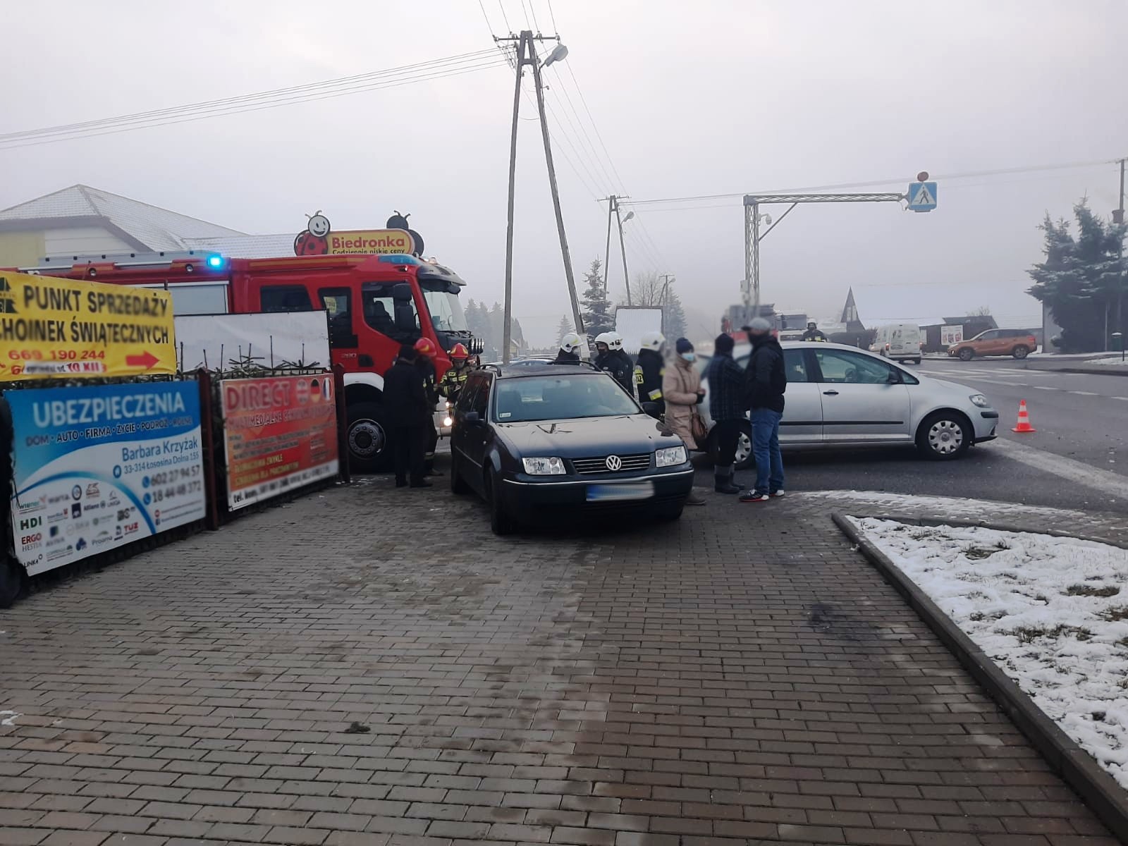 11 grudnia około godziny 7.20 zastępy z JRG nr 1 w Nowym Sączu oraz OSP Łososina Dolna zadysponowane zostały do działań w Łososinie Dolnej. Po przybyciu na miejsce zdarzenia ustalono, że doszło do zdarzenia z udziałem trzech samochodów osobowych tj. VW Bora, Fiat Seicento oraz VW Golf. Pojazdami podróżowało łącznie 4 osoby. Pojazdy znajdowały się poza drogą krajową nr 75. Działania strażaków polegały na zabezpieczeniu miejsca zdarzenia oraz odłączeniu klem akumulatora w samochodzie Fiat Seicento. Sprawdzono stan osób biorących udział w zdarzeniu. Jedna osoba była pod wpływem zdarzenia i uskarżała się na dolegliwości. Udzielono jej pomocy. Osoba poszkodowana po przebadaniu przez załogę karetki Pogotowia ratunkowego pozostała na miejscu zdarzenia. Usunięto plamę płynów eksploatacyjnych z jezdni przy pomocy sorbentu. Po zakończeniu czynności przez Policję usunięto z jezdni pozostałości po zdarzeniu.