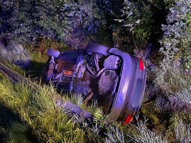 16 lipca o godzinie 20.57 zastępy z JRG w Krynicy Zdroju oraz OSP Łabowa zostały zadysponowane do działań w Maciejowej. Po przybyciu na miejsce zdarzenia ustalono, że samochód osobowy Audi A4 wypadł z drogi i leżał na dachu w rowie. Pojazdem podróżowało pięć osób. Jedna osoba poszkodowana była pod opieką ratowników medycznych Pogotowia Ratunkowego. Pozostałe osoby były pod wpływem zdarzenia. Działania zastępów straży pożarnej polegały na zabezpieczeniu miejsca zdarzenia oraz kierowaniu ruchem, który odbywał się wahadłowo. Strażacy wsparli działania prowadzone przez ratowników medycznych Pogotowia. Sprawdzono teren pod kątem wycieków płynów eksploatacyjnych, których nie stwierdzono. Do czasu zakończenia czynności dochodzeniowych przez Policję na miejscu pozostał zastęp OSP Łabowa. W wyniku zdarzenia dwie osoby zostały poszkodowane. Działania strażaków trwały ponad godzinę.