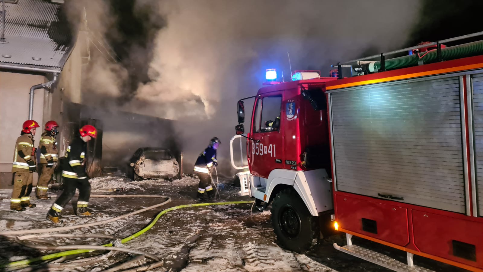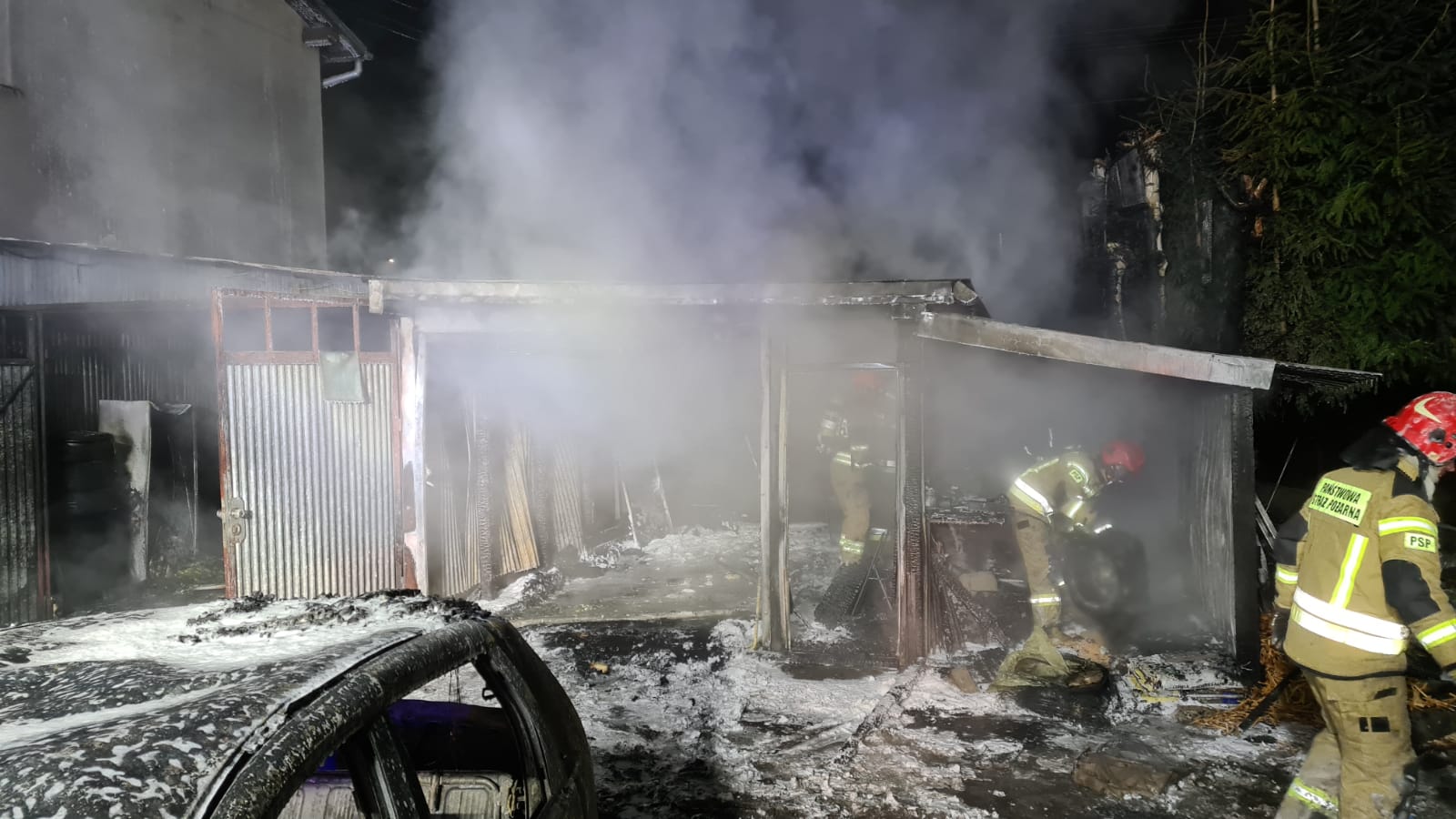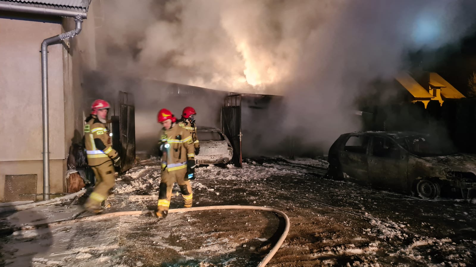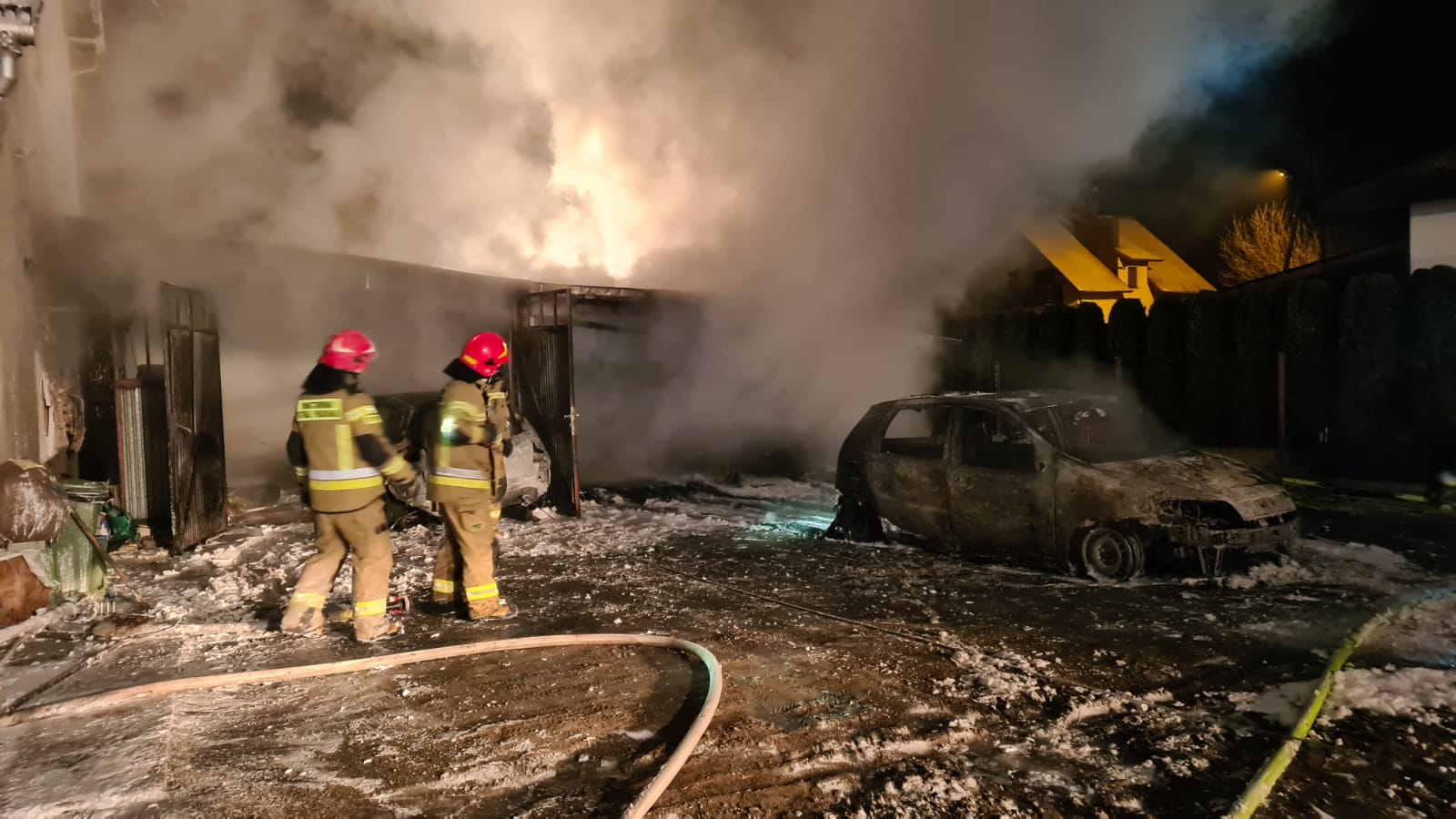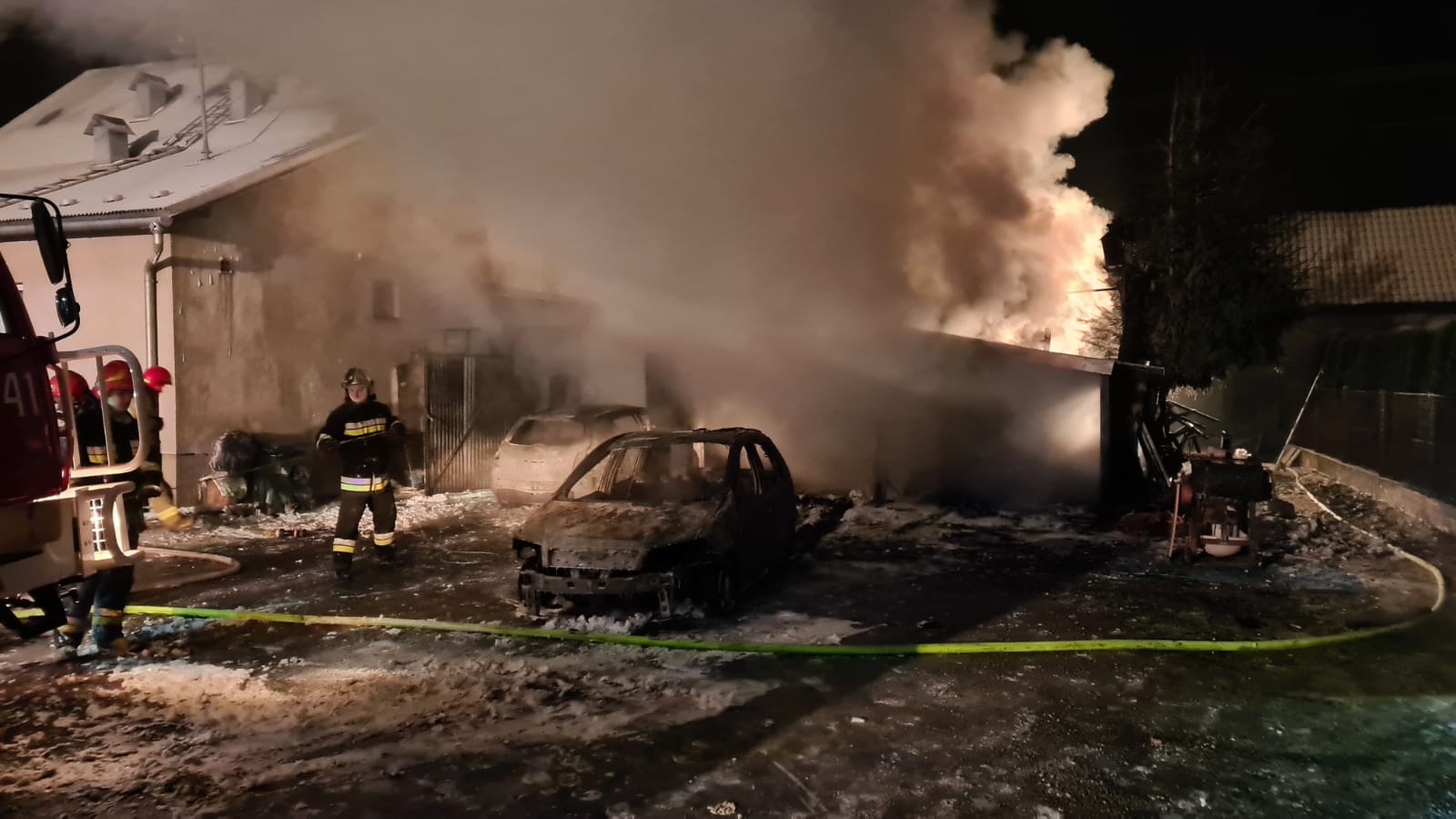 Mała Wieś, ul. Papieska-pożar dwustanowiskowego garażu