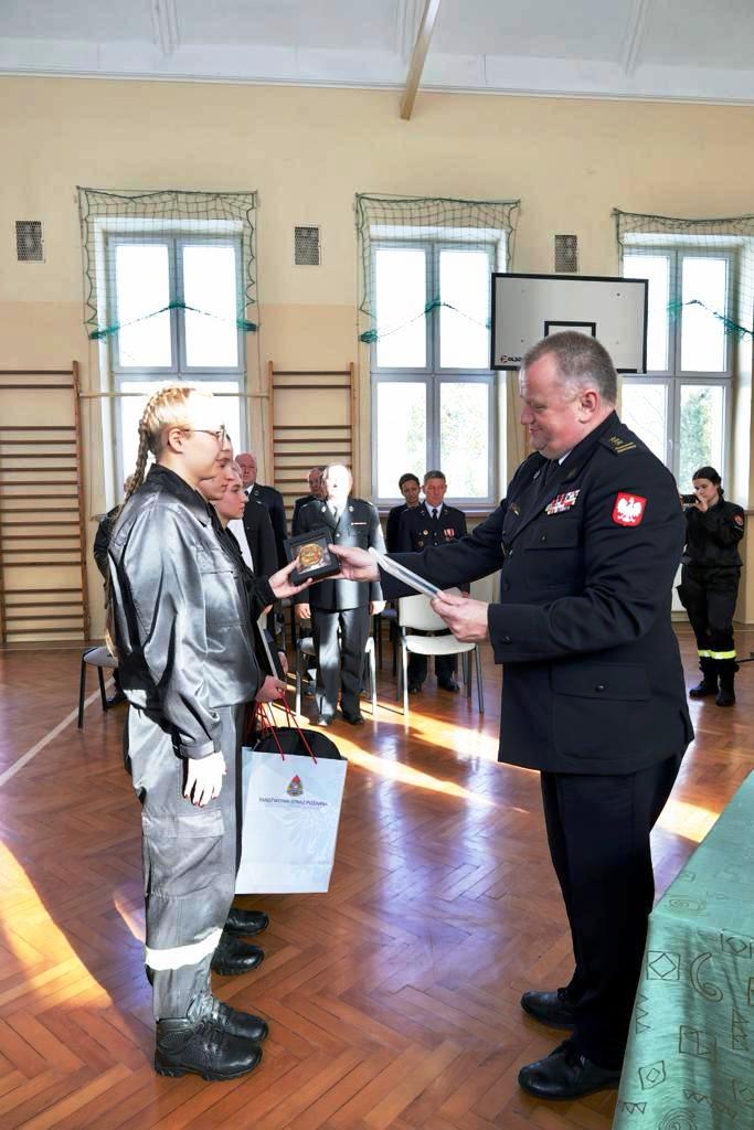 Marcinkowice – odznaki Komendanta Głównego PSP „Iuvenis Forti” dla uczniów Zespołu Szkół im. Władysława Orkana w Marcinkowicach