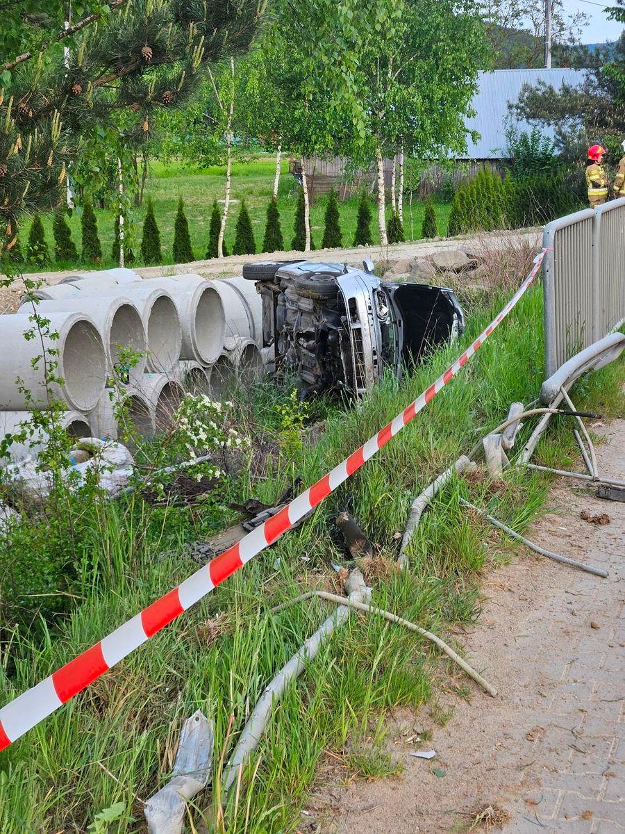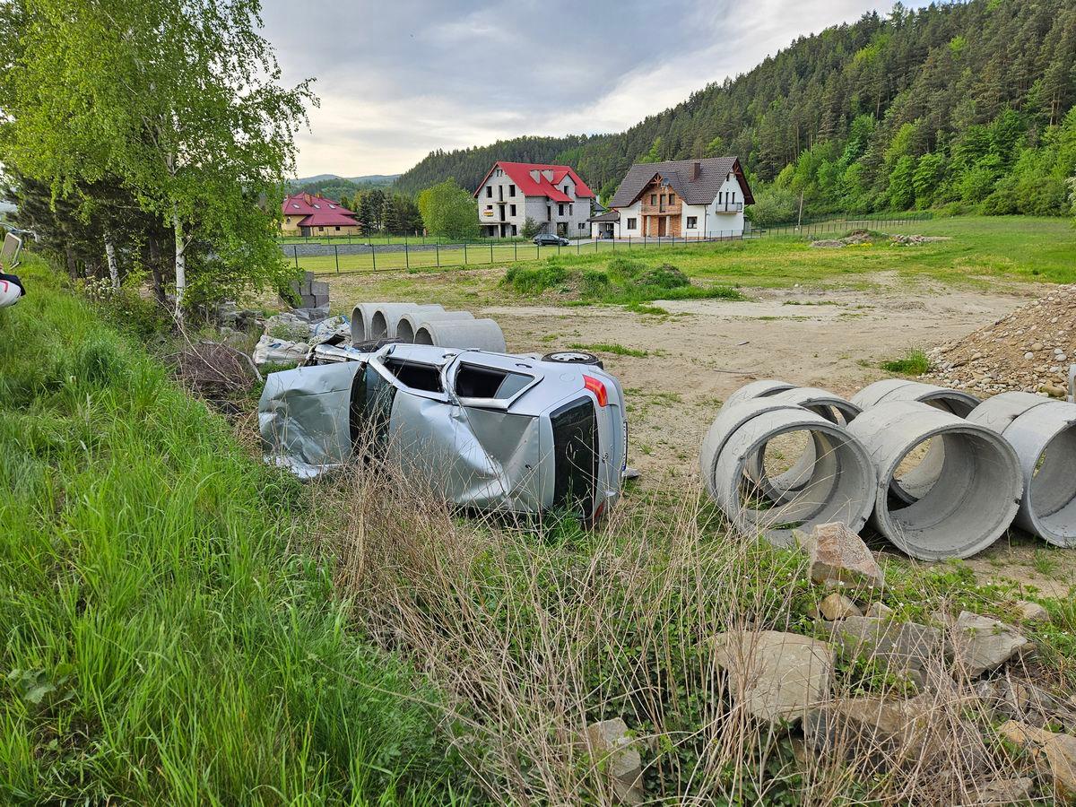 2 maja o godzinie 18.07 zastępy z JRG nr 2 w Nowym Sączu, OSP Łącko oraz OSP Maszkowice zadysponowane zostały do działań w Maszkowicach. Po przybyciu na miejsce zdarzenia ustalono, że samochód osobowy VW Golf wypadł z drogi i uderzył w kręgi betonowe stojące na sąsiedniej działce. W chwili przyjazdu zastępu na miejsce zdarzenia samochód znajdował się na boku a podróżujące nim osoby znajdowały się na zewnątrz. Ratownicy Pogotowia Ratunkowego udzielali pomocy jednej osobie. Działania straży pożarnej polegały na zabezpieczeniu miejsca zdarzenia, odpięciu akumulatora oraz kierowaniu ruchem drogowym, który odbywał się wahadłowo. Sprawdzono pojazd pod kątem wycieków. Osoba po przebadaniu pozostała na miejscu zdarzenia. Zastępy straży pożarnej zakończyły swoje działania i powróciły do bazy. Na miejscu pozostała Policja prowadząc swoje czynności.