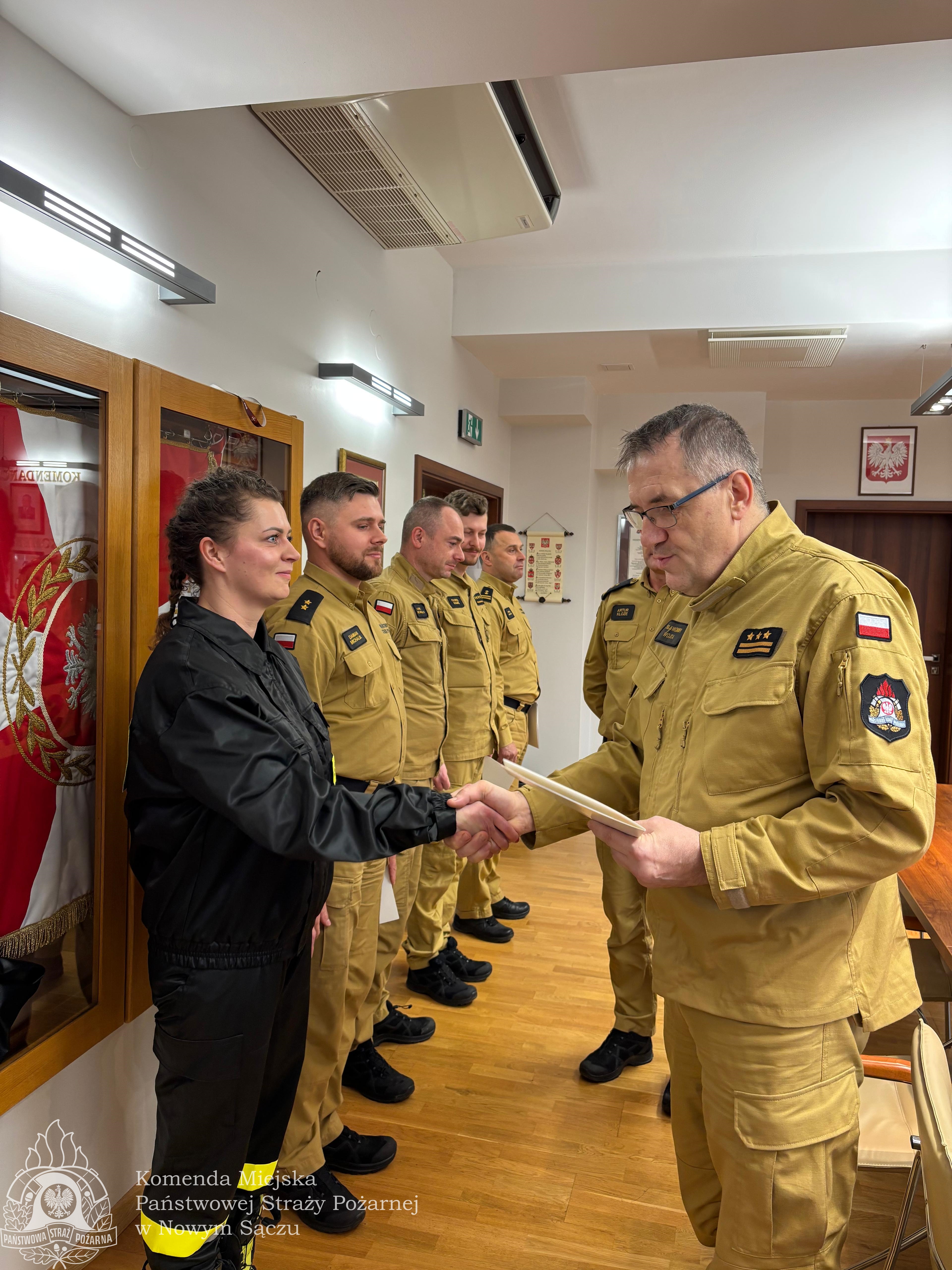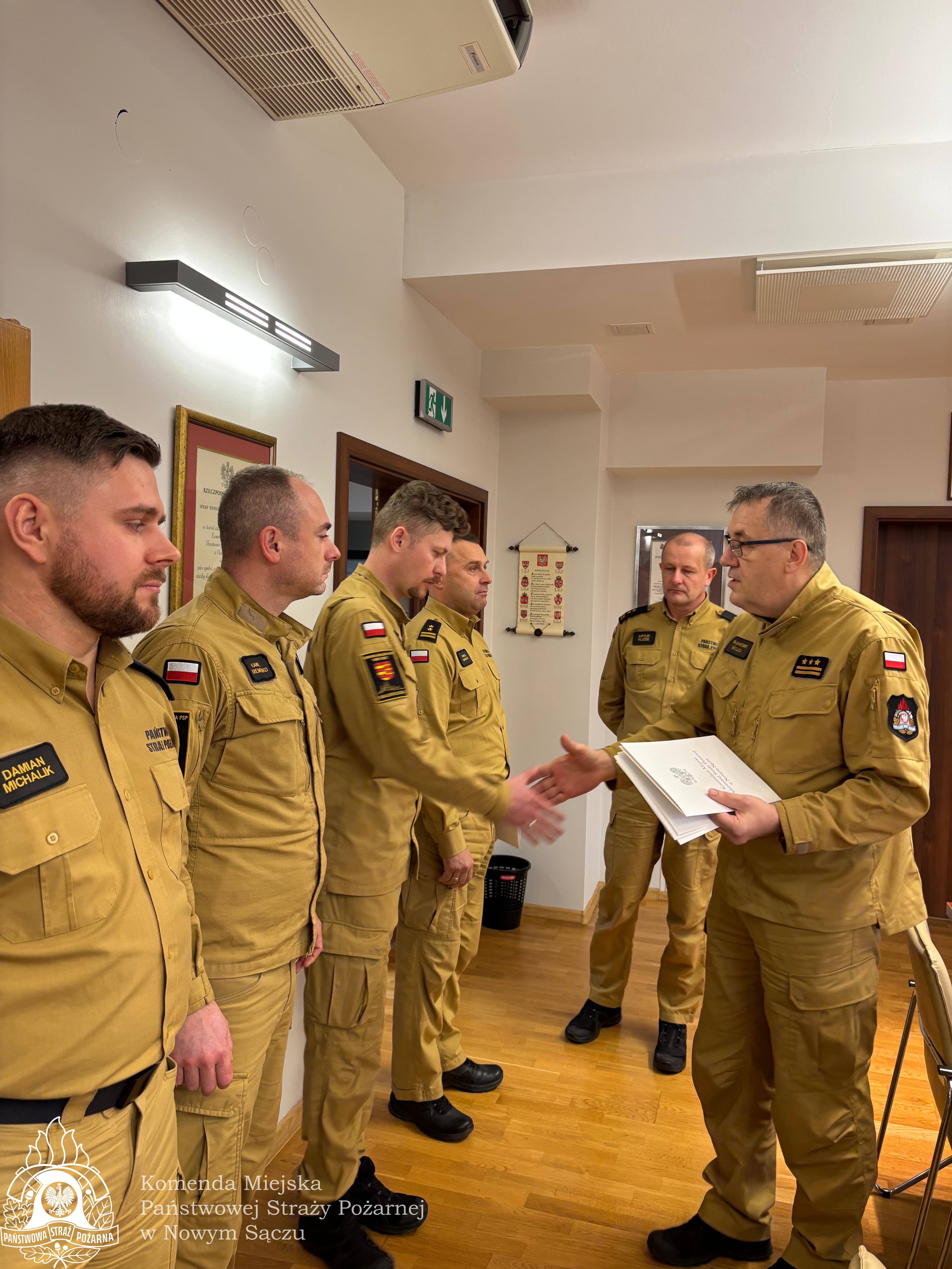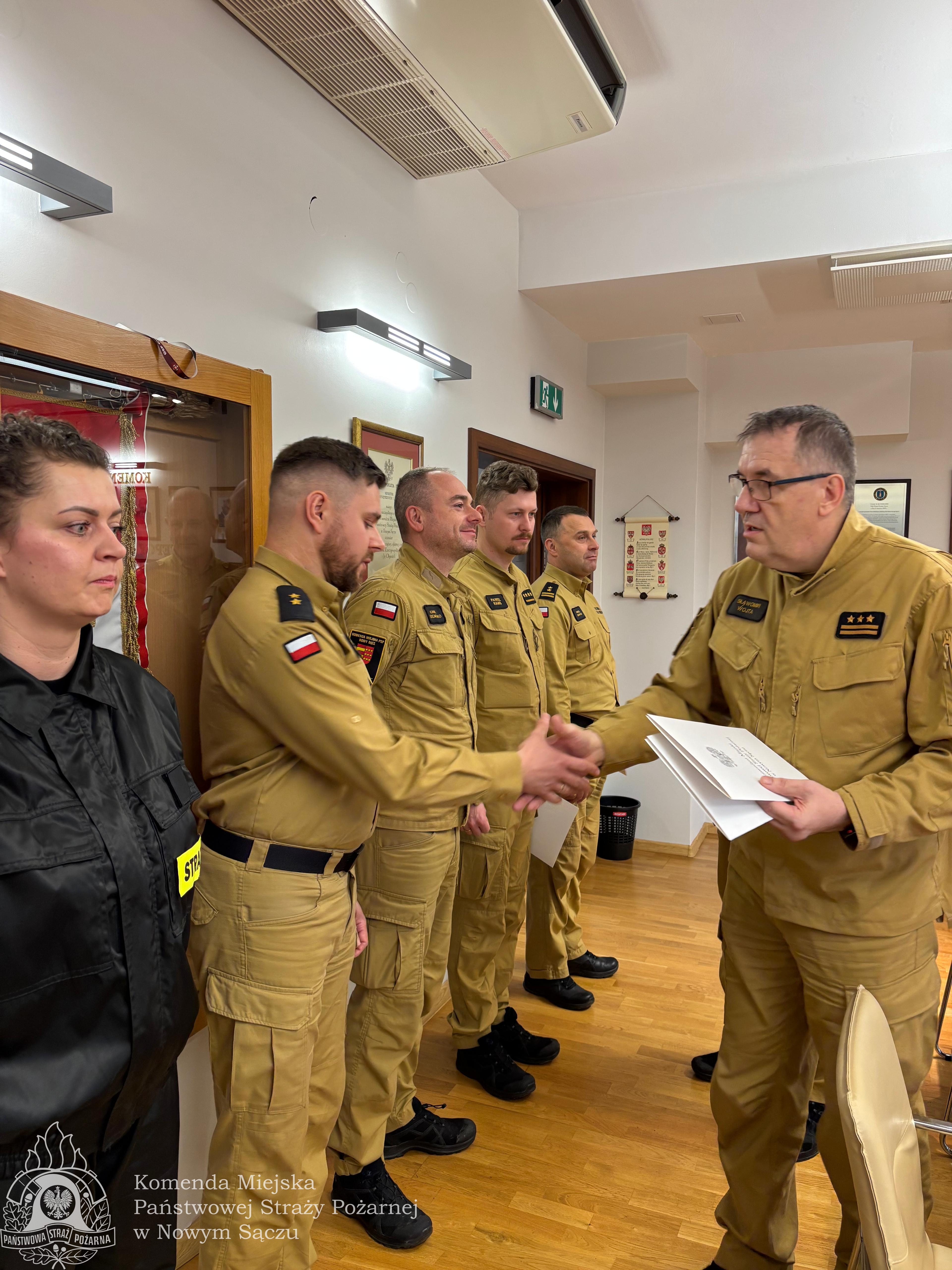 1 kwietnia 2025 r. w siedzibie Komendy Miejskiej Państwowej Straży Pożarnej w Nowym Sączu odbyła się zbiórka, podczas której Komendant Miejski PSP st. bryg. Sławomir Wojta wraz z zastępcą bryg. Arturem Kloze dokonał mianowania funkcjonariuszy na nowe stanowiska służbowe oraz przyjął nowego strażaka do służby przygotowawczej.