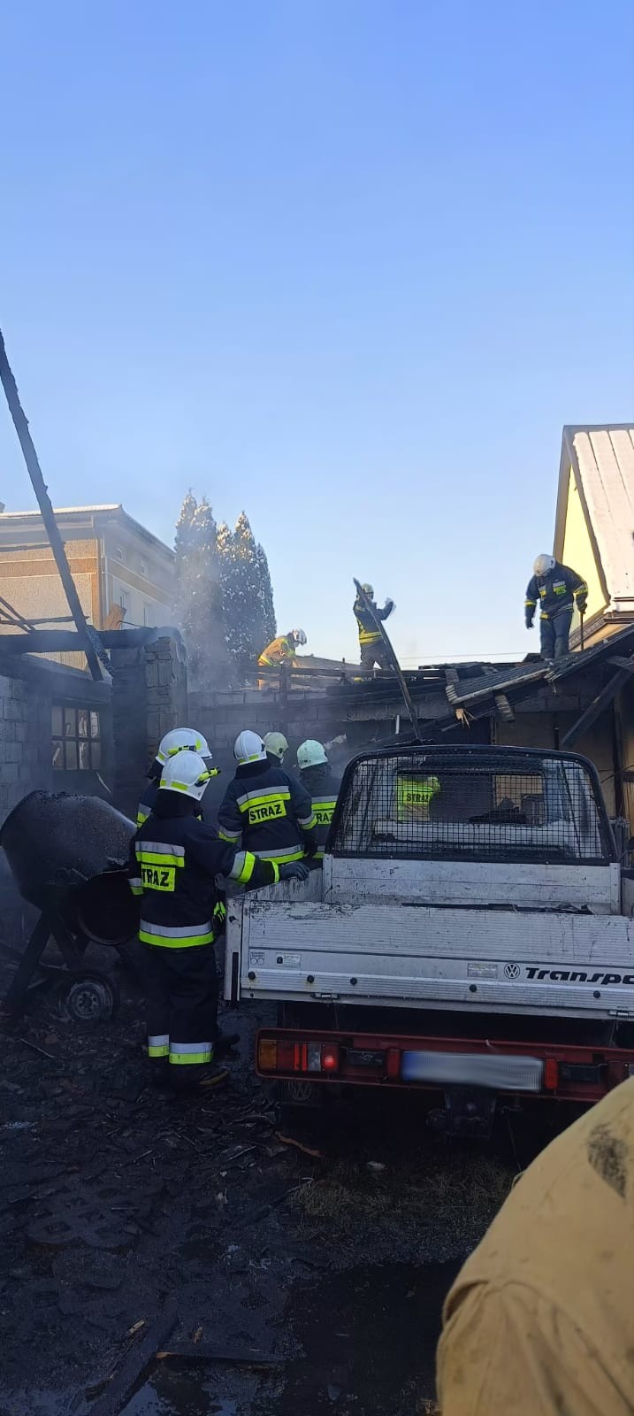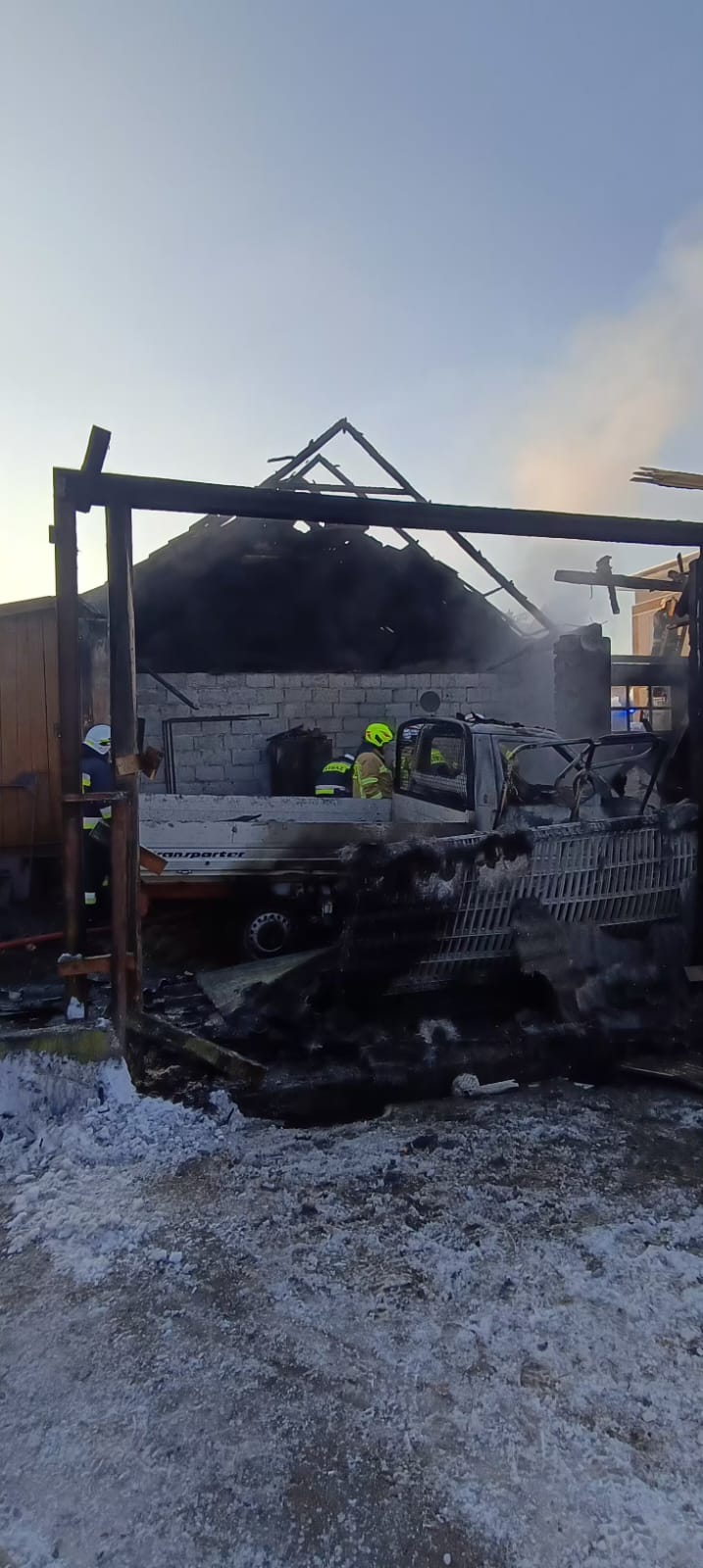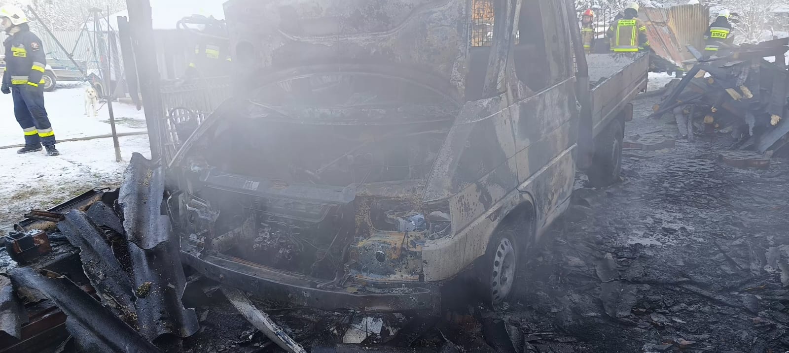 Mostki-pożar budynku gospodarczego w którym znajdował się samochód dostawczy