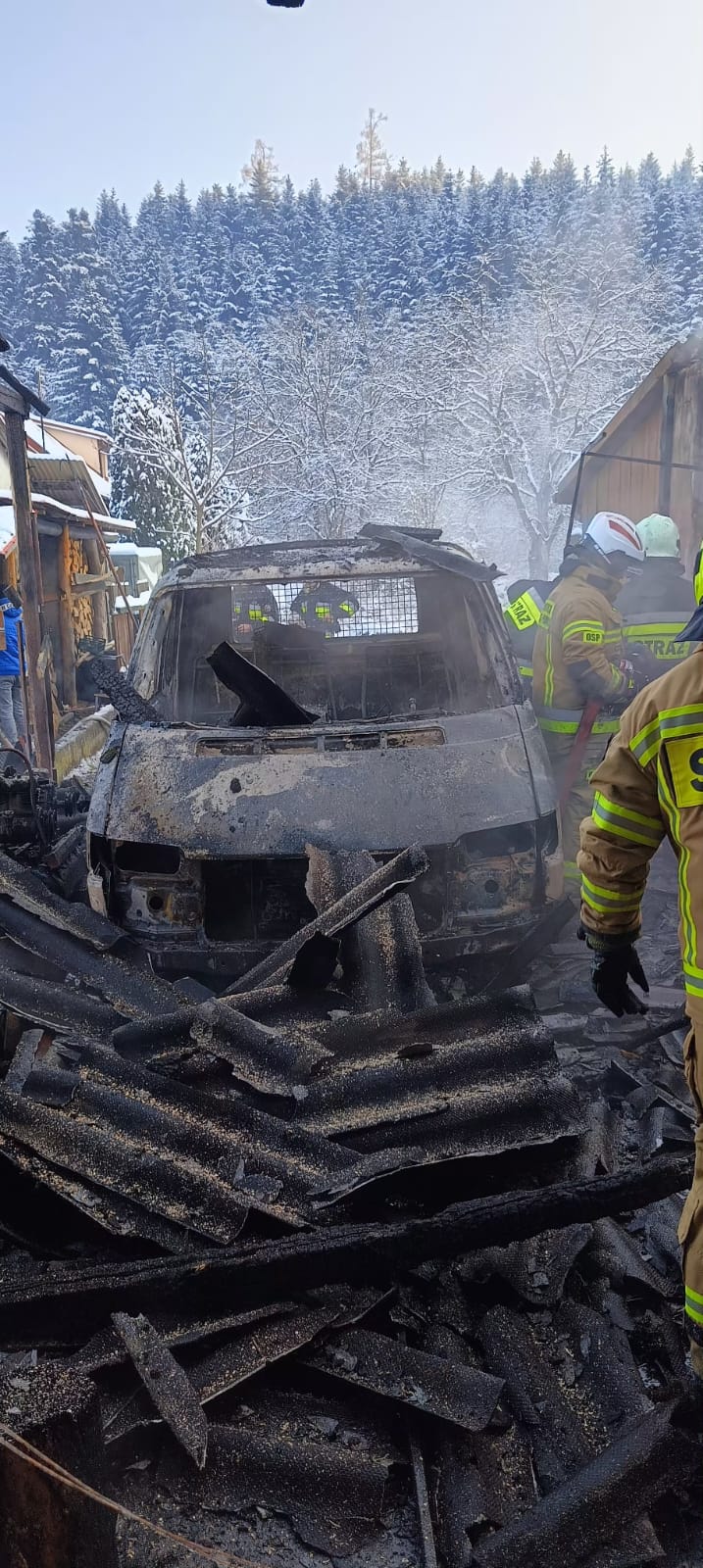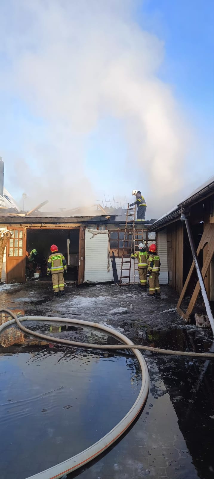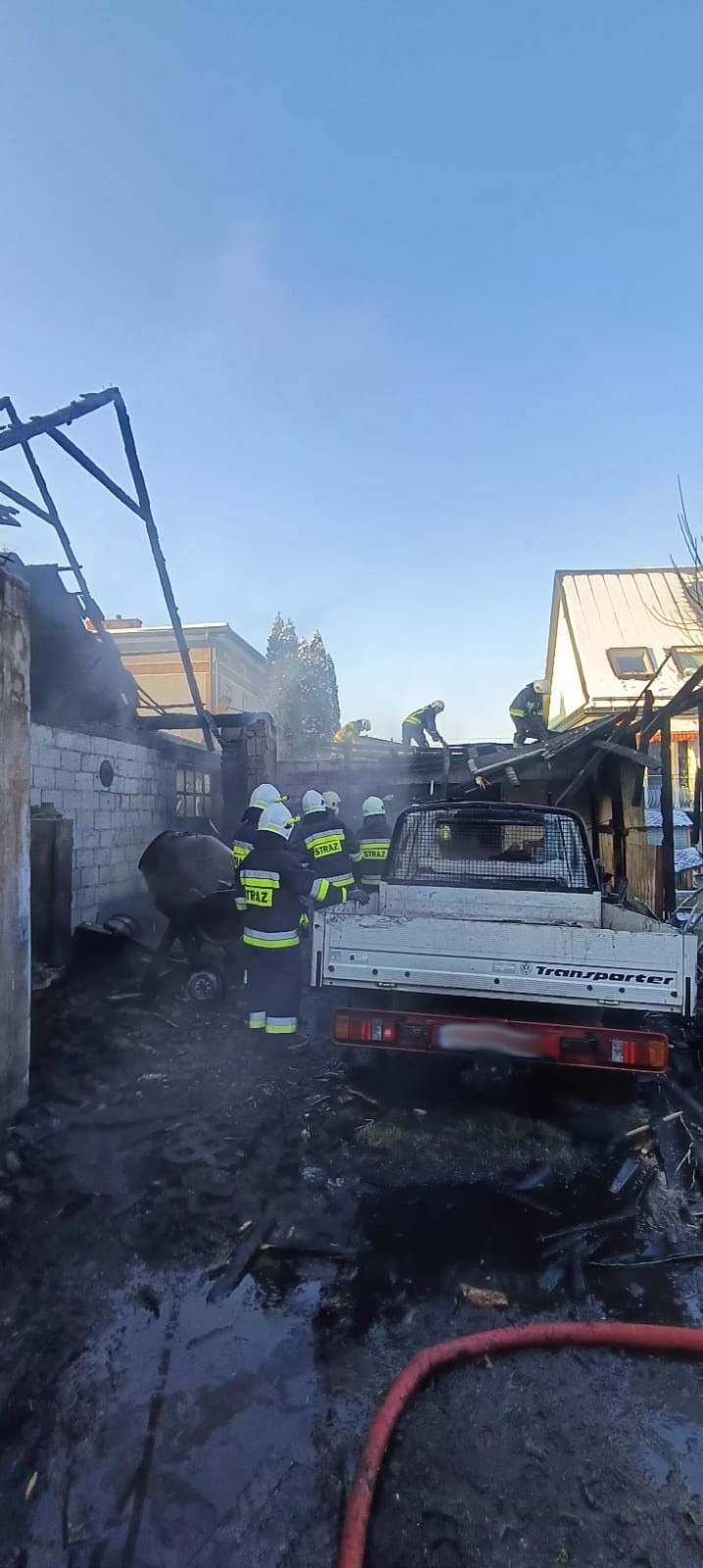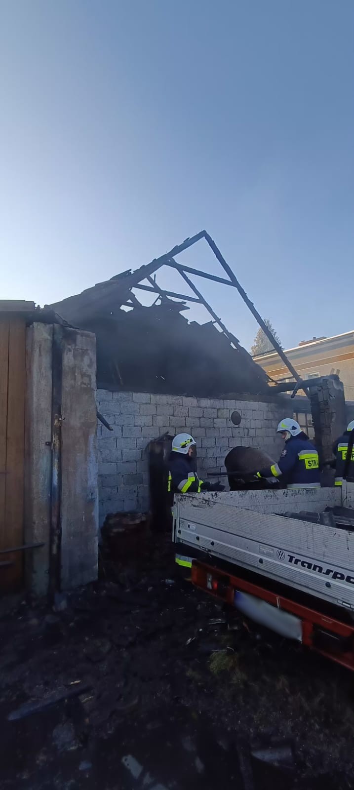 Mostki-pożar budynku gospodarczego w którym znajdował się samochód dostawczy