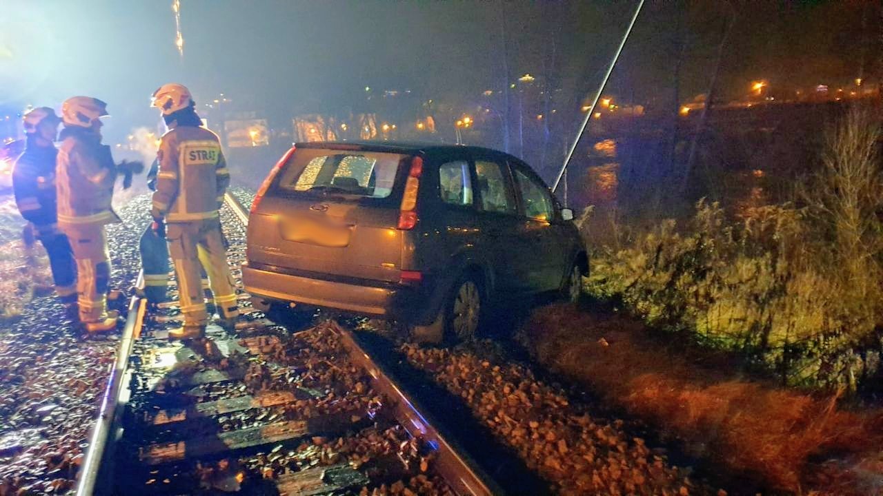 Muszyna- samochód osobowy utknął na torach