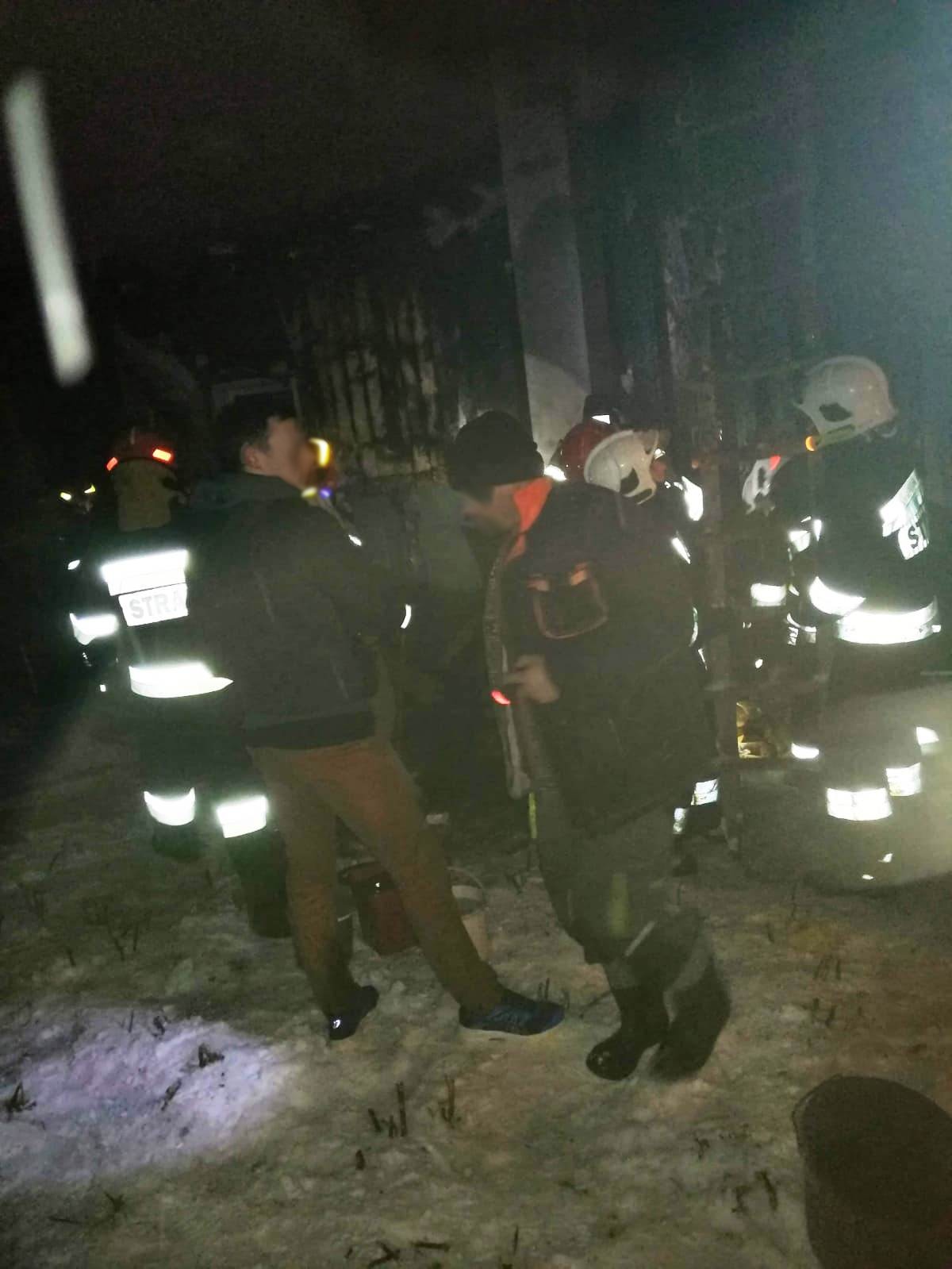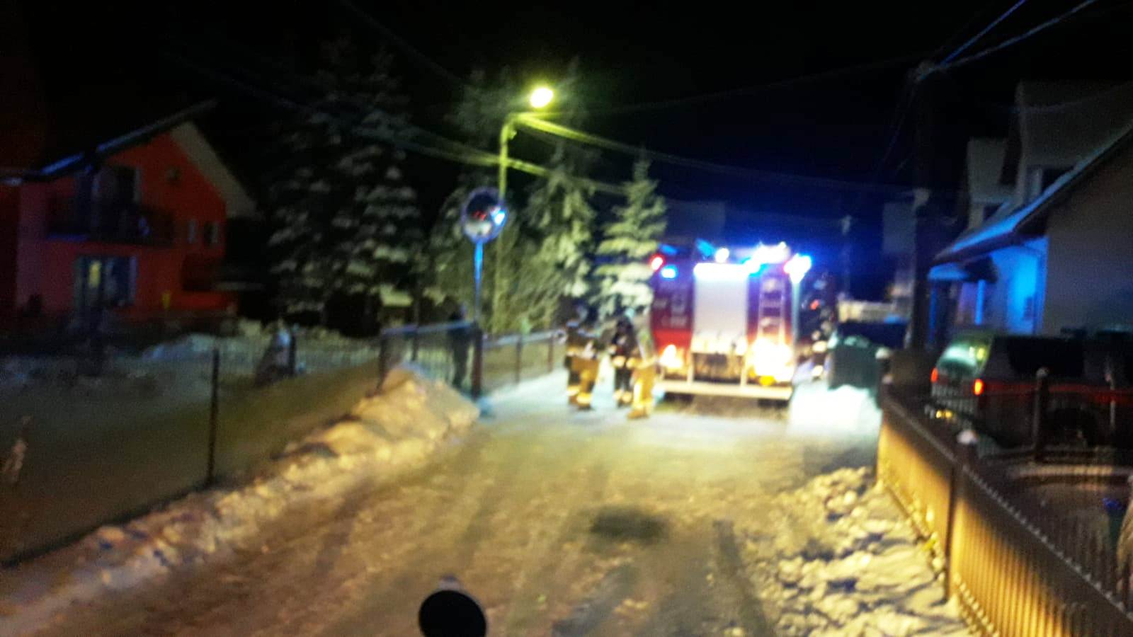 9 lutego około godziny 20.59 zastępy z JRG w Krynicy, OSP Muszyna oraz OSP Muszyna Folwark zadysponowane zostały do działań w Muszynie na ul. Kościuszki. Pojazdami pożarniczymi udało się dojechać do najbliższej drogi, która była oddalona o około 2 km od budynku objętego pożarem. Bezpośredni dojazd na miejsce pojazdami ratowniczo gaśniczymi nie był możliwy ze względu na lokalizacje budynku w miejscu do którego prowadzi wąska droga o bardzo dużym nachyleniu i stromych podjazdach. Dodatkowym utrudnieniem były warunki atmosferyczne tj. intensywne opady śniegu oraz temperatura -1 °C. Ratownicy na miejsce udali się pieszo zabierając podręczny sprzęt gaśniczy, burzący, łopaty oraz kamerę termowizyjną. Na miejsce zadysponowano GOPR wyraz z pojazdem typu quad o gąsienicowym układzie bieżnym. Po dotarciu pieszo na miejsce ratowników OSP oraz z JRG ustalono, że pożarem objęta była drewniana ściana budynku gospodarczego wraz z częścią dachu. W odległości 5 m od budynku gospodarczego znajdowały się dwa budynku mieszkalne zagrożone pożarem. Zasilanie w energie elektryczną zostało odłączone przez właściciela, przed przybyciem strażaków. Z budynku wyniesiono butlę propan butan 11 kg. W czasie pożaru nikt z domowników nie przebywał w budynku gospodarczym. Przed przybyciem zastępów straży pożarnej właściciel wraz z osobami postronnymi przystąpili do próby ugaszenia pożaru przy pomocy wody podawanej z wiader oraz śniegu. Działania te skutecznie ograniczyły rozprzestrzenianie się pożaru. Strażacy wykonali rozbiórkę nadpalonych elementów i dogaszali je śniegiem. Wodą dogaszano elementy pozostałe przy budynku. Za pomocą kamery termowizyjnej sprawdzono ilość koniecznych do rozbiórki elementów. Po odczekaniu kilkudziesięciu minut i sprawdzeniu kamerą termowizyjną nie stwierdzono zarzewi ognia. Przed zakończeniem działań ponownie schłodzono wodą nadpalone elementy. Działania strażaków trwały ponad dwie godziny.