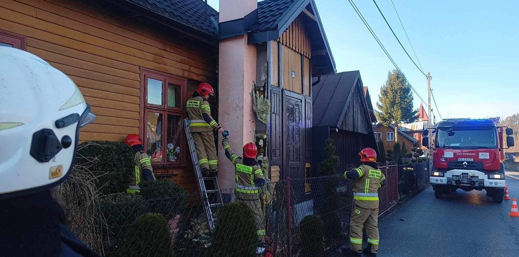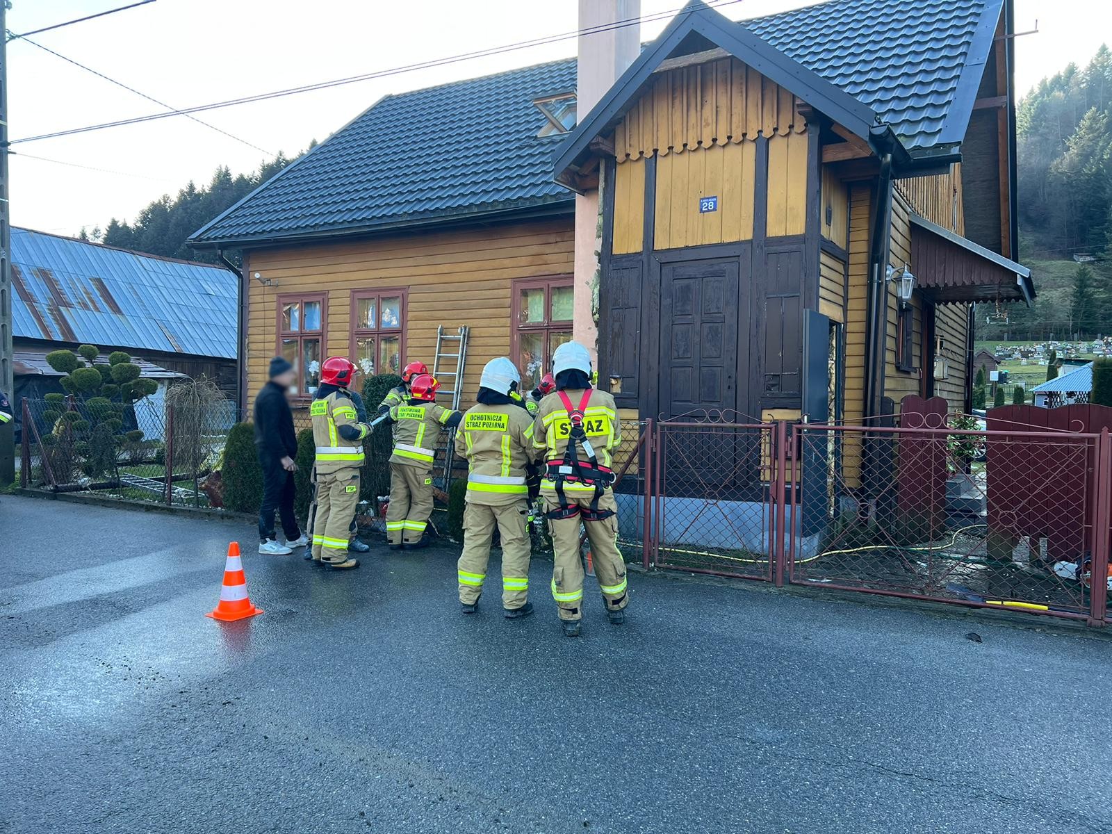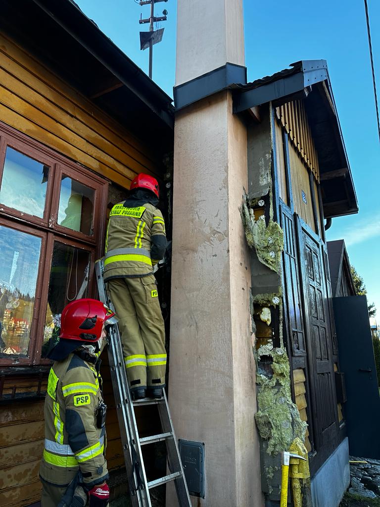 Muszyna, ul. Kościuszki- pożar drewnianej ściany przy kominie