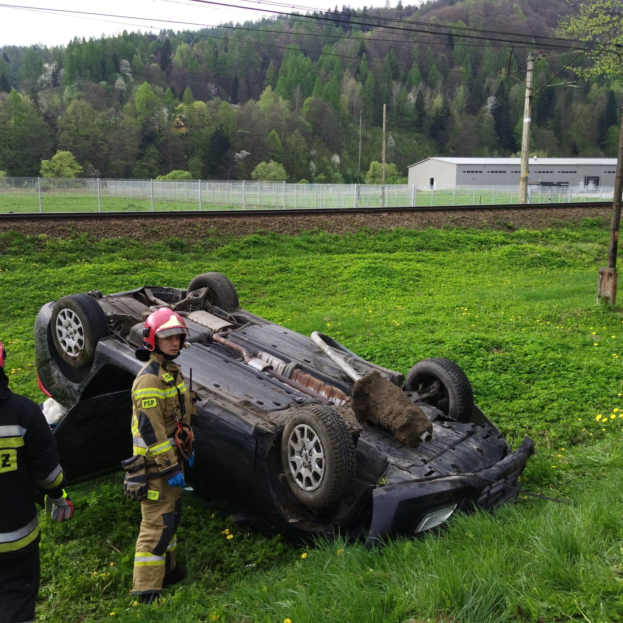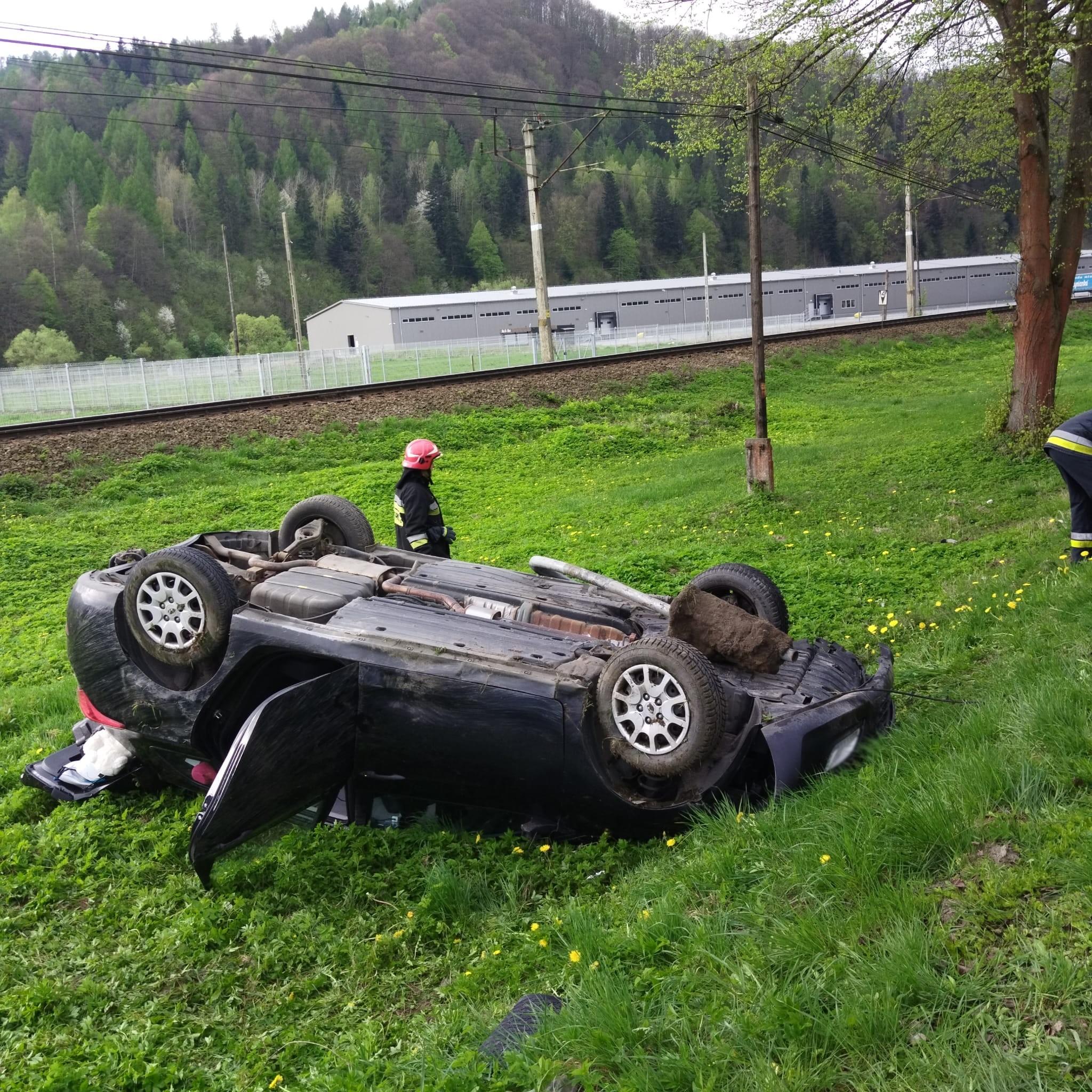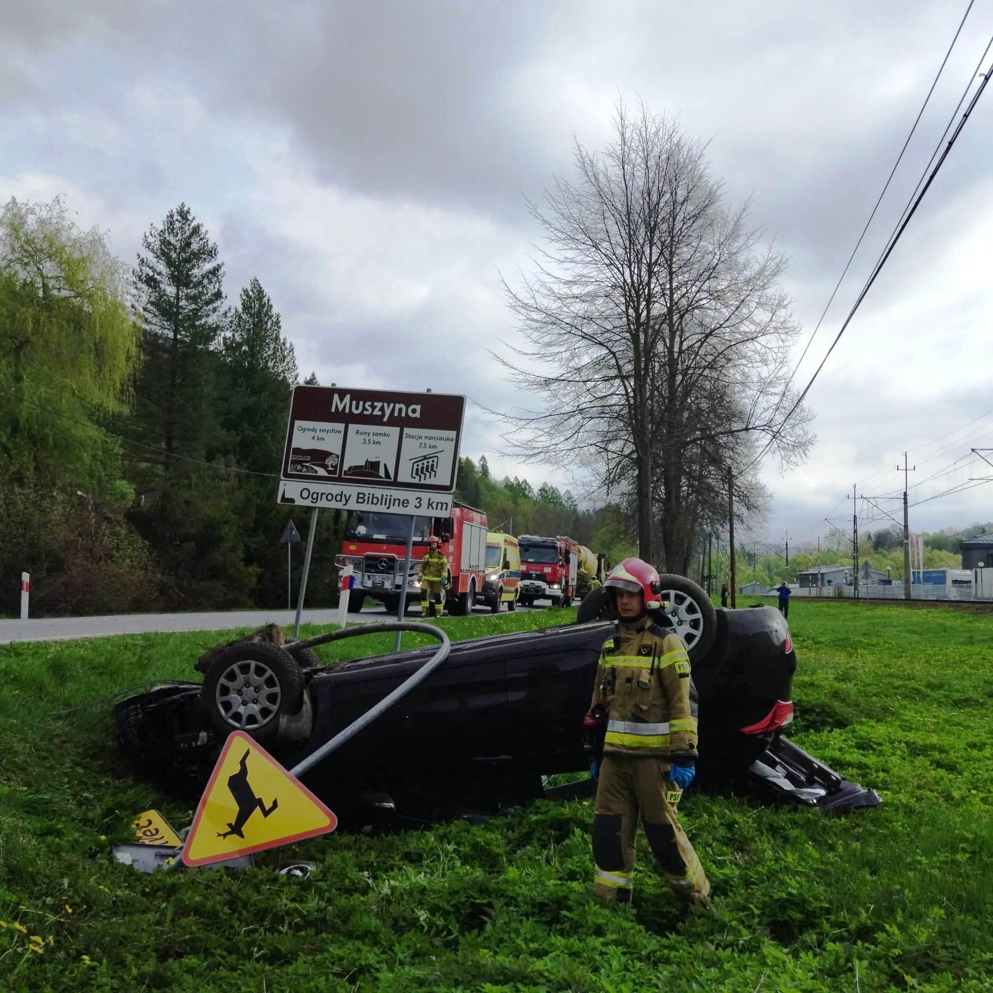 10 kwietnia o godzinie 8.45 zastępy z JRG w Krynicy Zdroju oraz OSP Muszyna zadysponowane zostały do działań w Muszynie na ulicę Lipową. Po przybyciu na miejsce zdarzenia ustalono, że na łuku drogi doszło do uderzenia samochodu osobowego w przydrożny znak drogowy i do dachowania. Uszkodzony pojazd znajdował się w przydrożnym rowie melioracyjnym w całości poza obrysem jezdni. Wycieków nie stwierdzono. Samochodem podróżowała jedna osoba. Osoba ta opuściła pojazd o własnych siłach i przebywała pod opieką ratowników medycznych Pogotowia, którzy najechali na zdarzenie. Działania strażaków polegały na zabezpieczeniu miejsca zdarzenia oraz kierowaniu wahadłowym ruchem drogowym. Osoba kierująca po przebadaniu pozostała na miejscu zdarzenia. By móc uzyskać dostęp do akumulatora uszkodzony pojazd postawiono na koła za pomocą wyciągarki samochodowej. Odłączono zasilanie w pojeździe. Z jezdni zostały usunięte pozostałości powypadkowe. Zastępy z JRG zakończyły swoje działania. Zastęp OSP przejechał do zatoczki oczekując na przyjazd pomocy drogowej, tym samym udrożniając ruch w obu kierunkach. Po zabraniu uszkodzonego pojazdu działania straży zakończono. Działania strażaków trwały ponad godzinę.