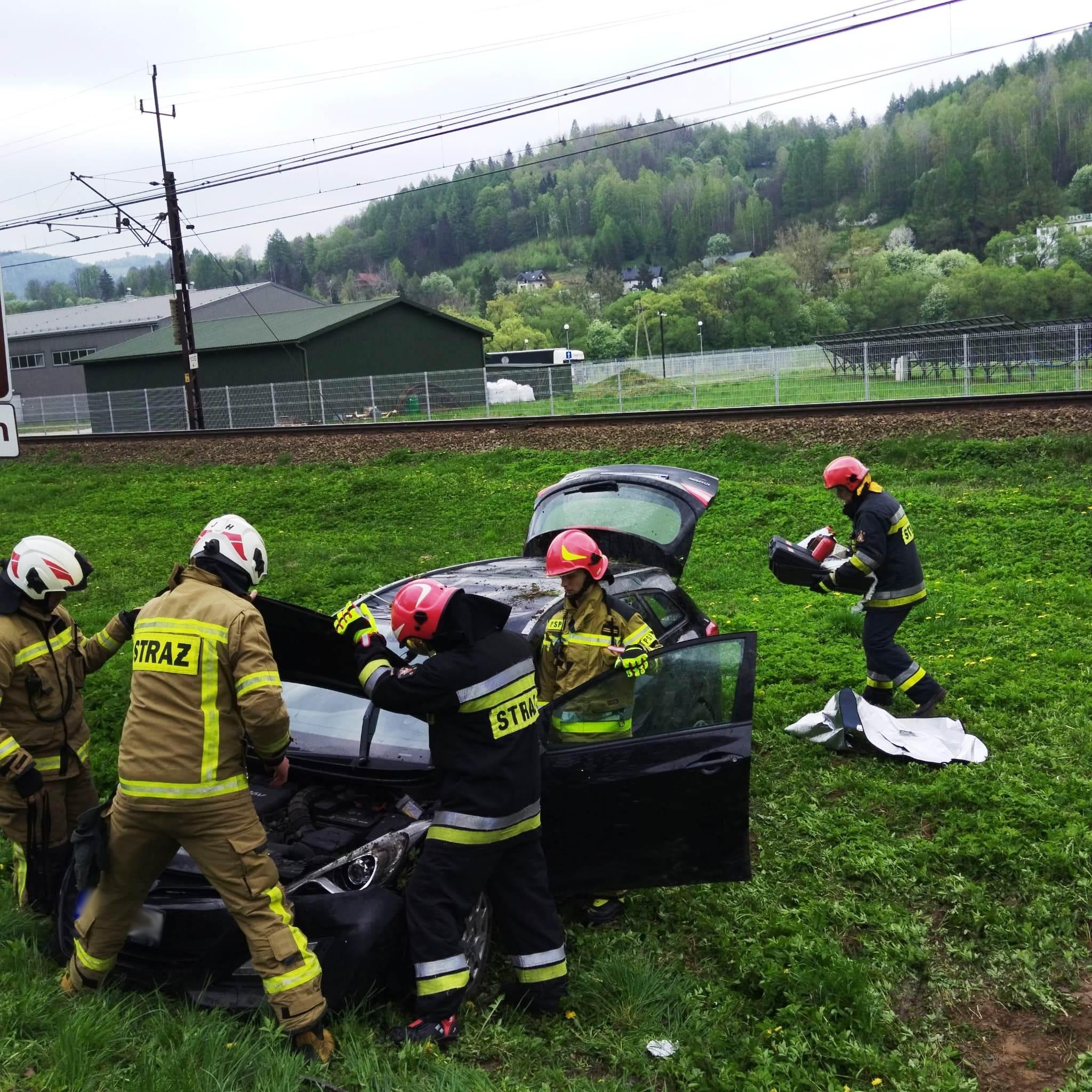 Muszyna, ul. Lipowa - samochód osobowy wypadł z drogi