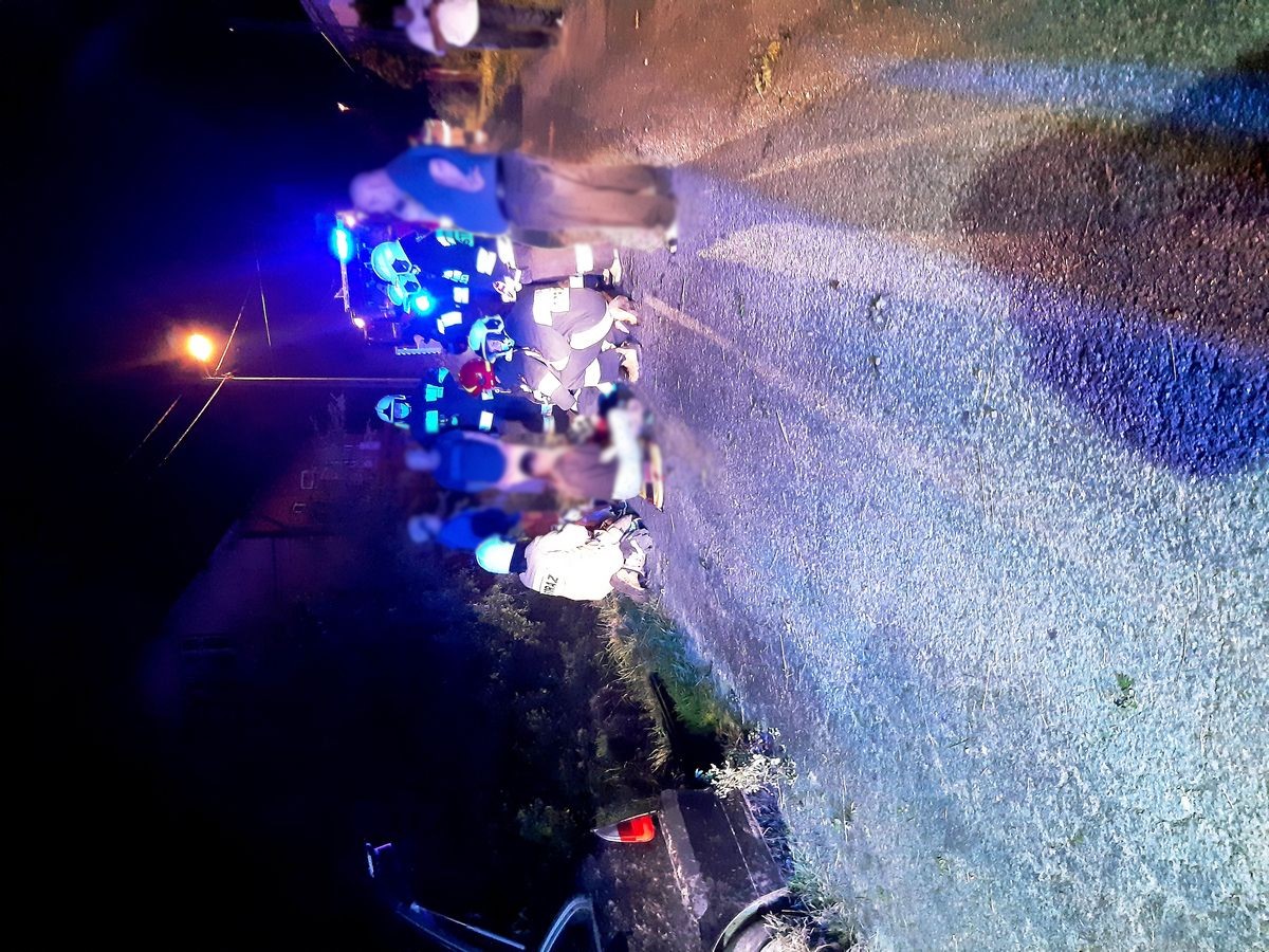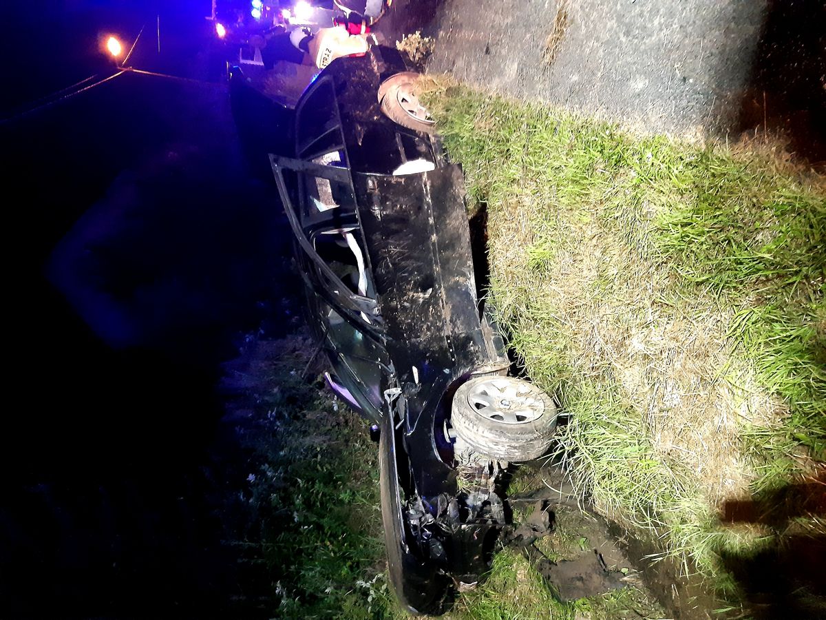 6 lipca o godzinie 23.05 zastępy z JRG w Krynicy Zdroju, OSP Muszyna oraz Muszyna Folwark zadysponowane zostały do działań w Muszynie na ulicę Ogrodową. Po przybyciu na miejsce zdarzenia ustalono, że samochód osobowy BMW, wypadł z drogi i stał nieznacznie przechylony nad niewielkim rowem odwadniającym. Przy pojeździe stały dwie osoby uczestniczące w zdarzeniu. W pojeździe znajdowała się przytomna kolejna osoba. Wszystkie osoby uskarżały się na dolegliwości. Z samochodu BMW do rowu odwadniającego wyciekała niewielka ilość płynów eksploatacyjnych. Działania zastępów straży pożarnej polegały na zabezpieczeniu miejsca zdarzenia oraz udzieleniu pomocy przedmedycznej poszkodowanym osobom. Poszkodowane osoby przejęły załogi przybyłych karetek Pogotowia Ratunkowego. Dalsze czynności polegały na zabezpieczeniu sorbentem zagrożenia stwarzającego przez wypływające płyny eksploatacyjne z uszkodzonego pojazdu. Na prośbę Policji zastęp OSP Muszyna Folwark pozostał na miejscu zdarzenia do zakończenia czynności dochodzeniowych prowadzonych przez Policję.