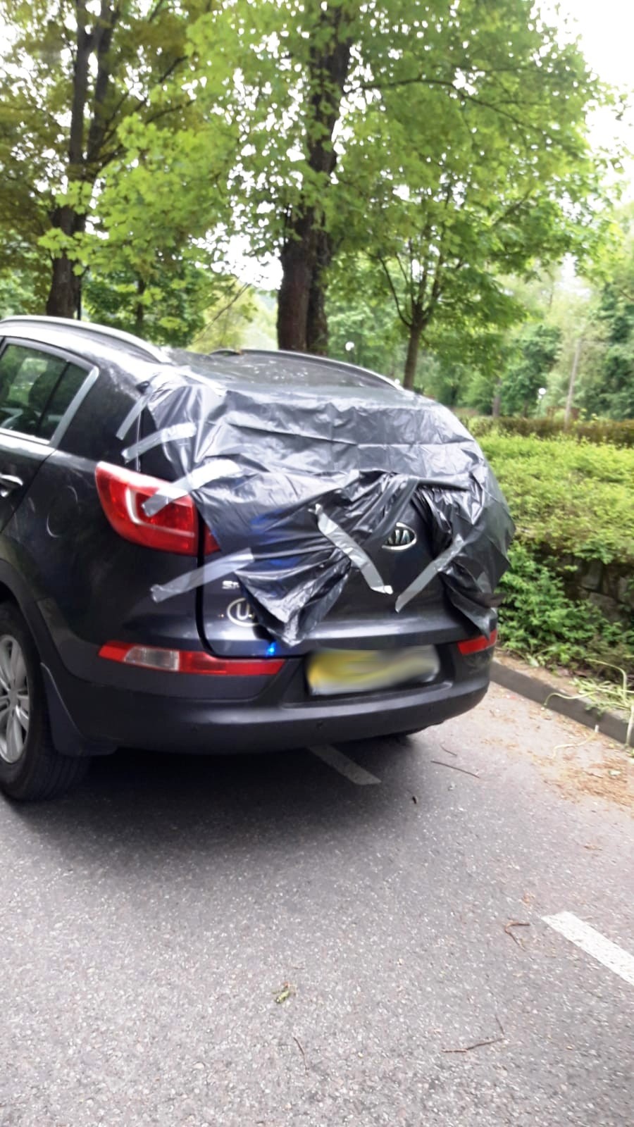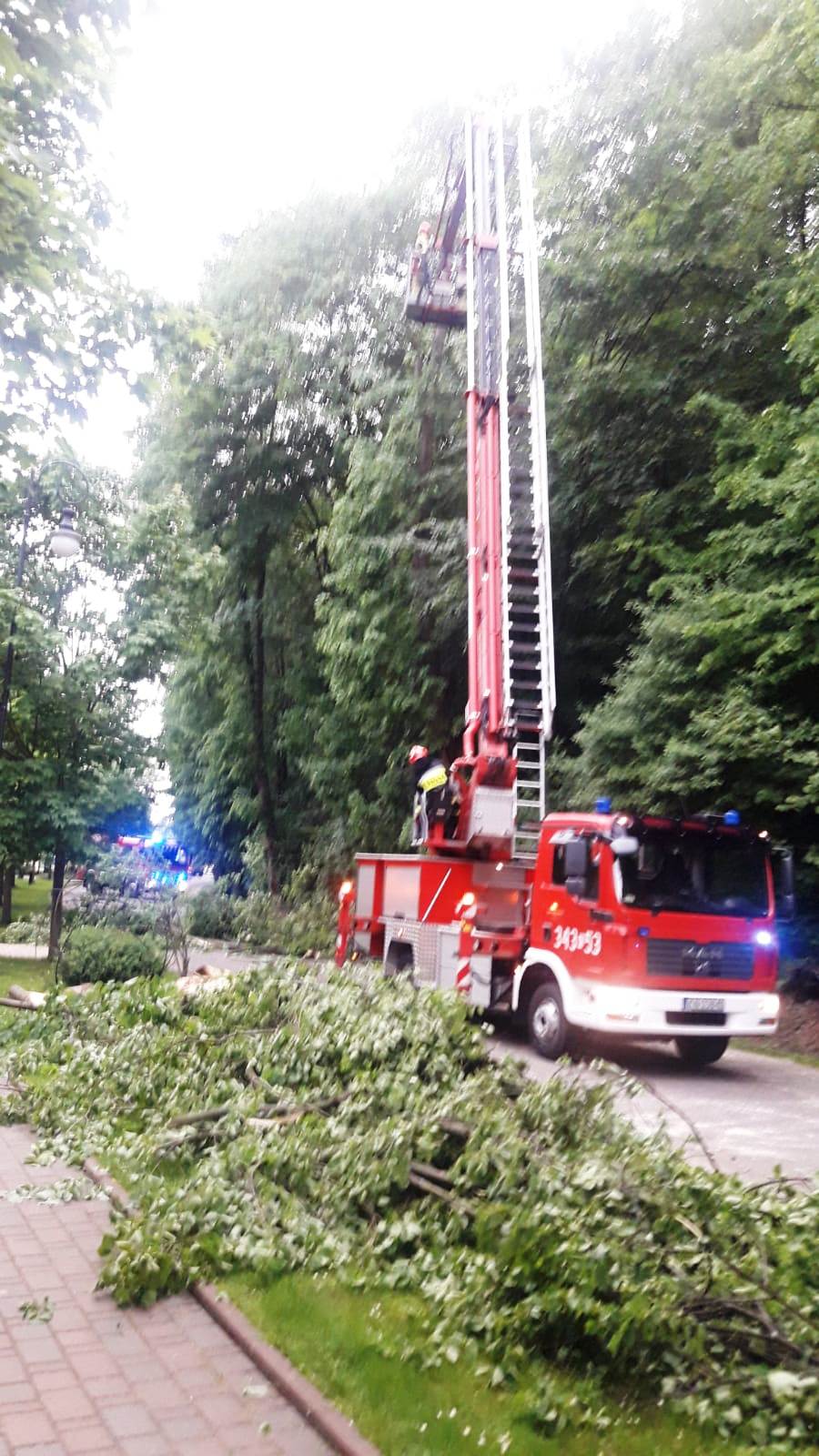 Muszyna, ul. Zdrojowa- złamane drzewo uderzyło w samochód