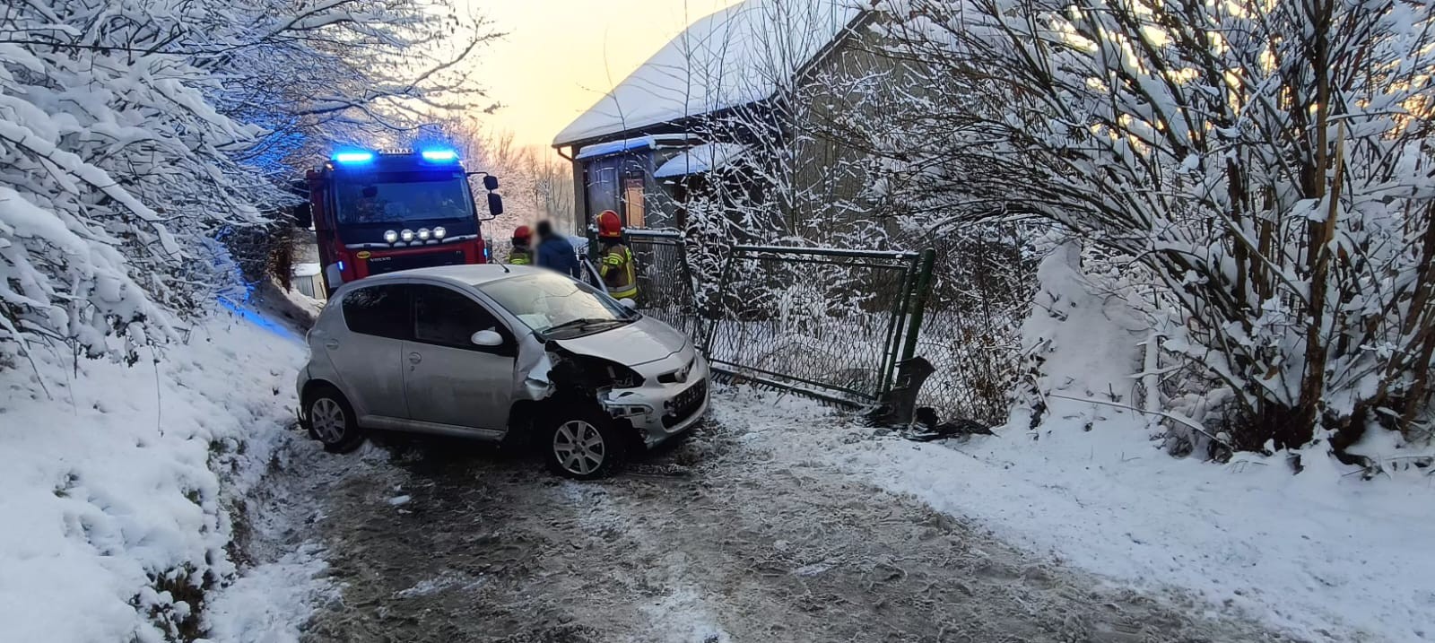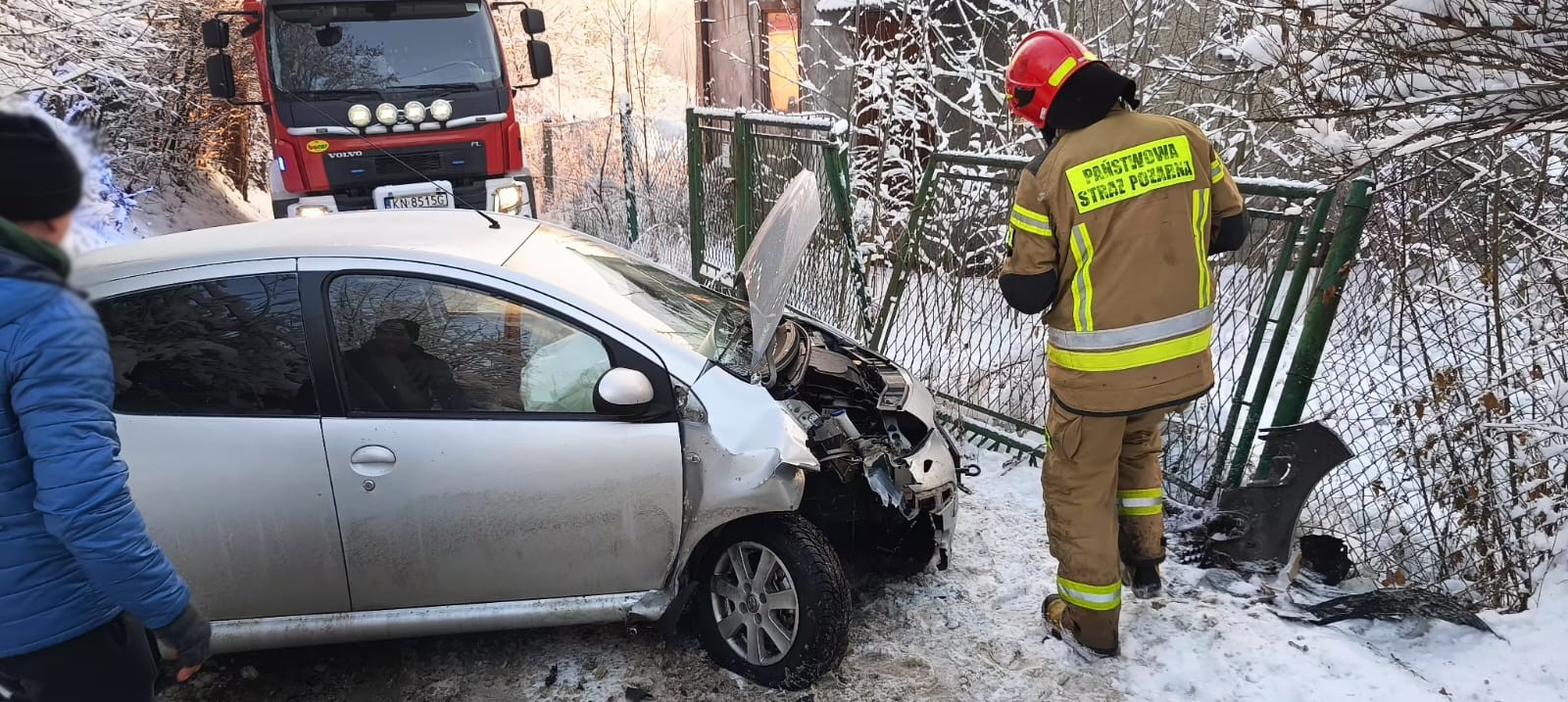 Myślec- samochód osobowy uderzył w ogrodzenie