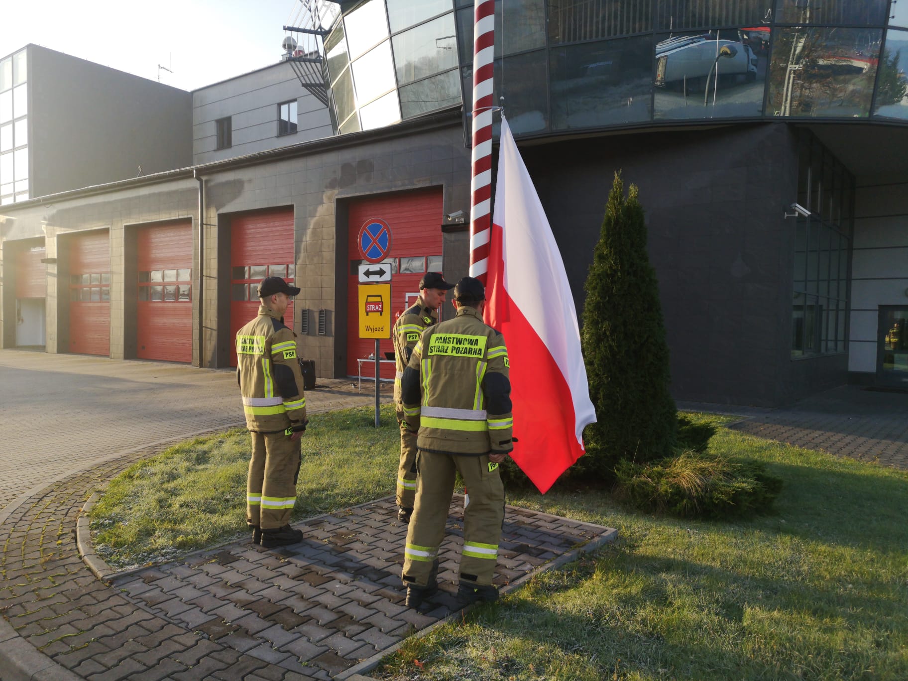 Strażacy z poszczególnych Jednostek Ratowniczo-Gaśniczych Komendy Miejskiej PSP w Nowym Sączu pełniący służbę w dniu 11 listopada uczcili kolejną rocznicę odzyskania suwerenności przez Polskę. W poszczególnych jednostkach wciągnięto flagę na maszt oraz odśpiewano hymn państwowy.