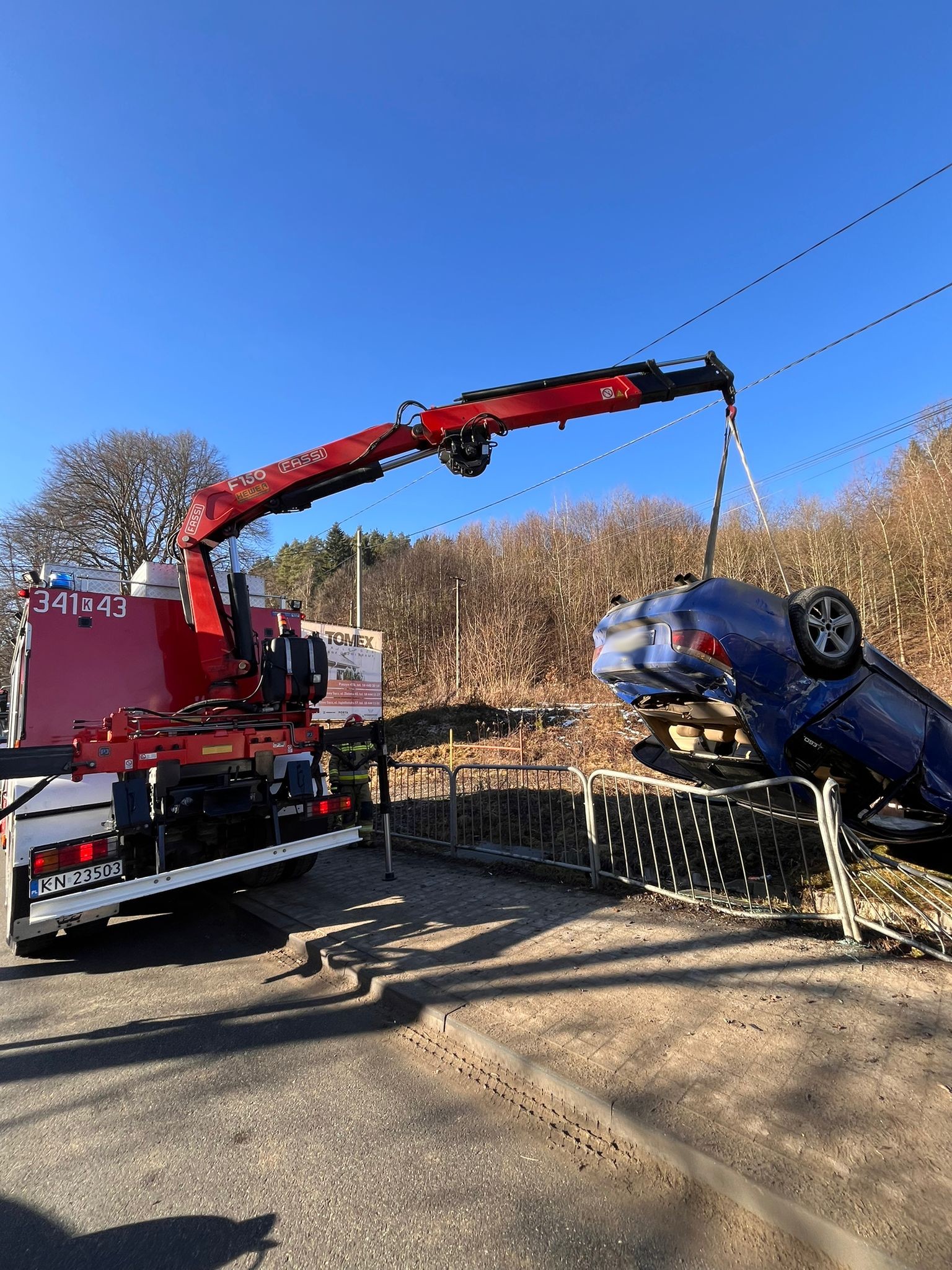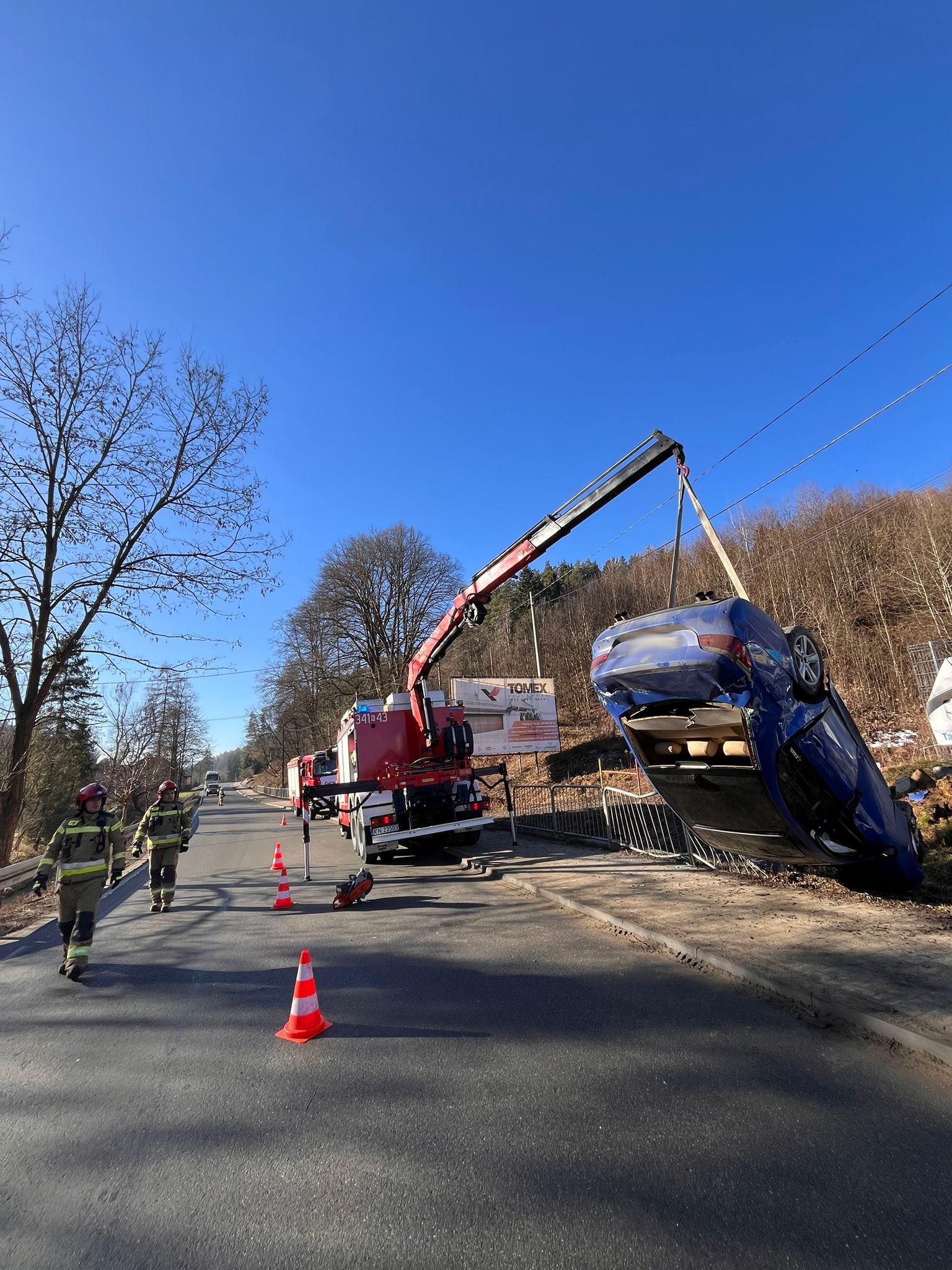 30 stycznia o godzinie 9.25 zastępy z JRG nr 1 w Nowym Sączu oraz OSP Librantowa zadysponowane zostały do działań w Naściszowej. Po przybyciu na miejsce zdarzenia ustalono, że doszło do dachowania pojazdu osobowego marki BMW. Samochód znajdował się na dachu wisząc częściowo na barierkach oddzielających chodnik od rowu melioracyjnego, całkowicie poza obrysem jezdni. Pojazdem podróżowała jedna osoba z dzieckiem, która przy pomocy osób postronnych opuściła samochód i nie uskarżała się na żadne dolegliwości. Nastąpił wyciek płynów eksploatacyjnych. Pozycja w jakiej znajdował się samochód uniemożliwiła odpięcie klem akumulatora. Działania strażaków polegały na zabezpieczeniu miejsca zdarzenia, wycięciu części pogiętych barierek wystających na chodnik, przestawienie samochodu z barierek i postawieniu go na koła przy użyciu żurawia hydraulicznego. Wahadłowo kierowano ruchem drogowym. Odpięto klemy akumulatora. Obecna na miejscu laweta zabrała pojazd i uprzątnięto jezdnie z resztek po kolizji. Działania strażaków trwały ponad godzinę.