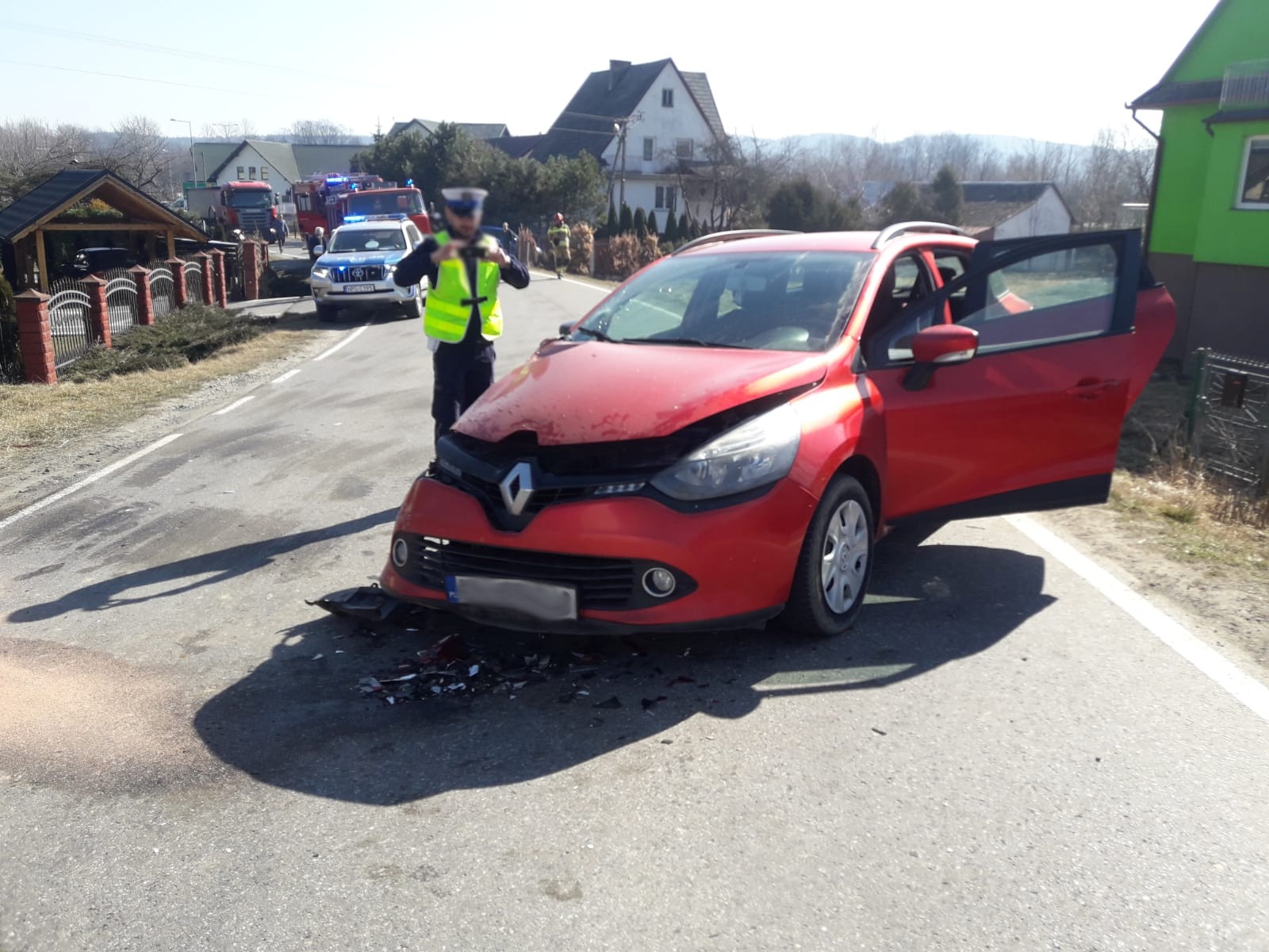 21 marca o godzinie 10.10 zastępy z JRG nr 2 w Nowym Sączu oraz OSP Naszacowice zadysponowane zostały do działań w Naszacowicach. Po przybyciu na miejsce zdarzenia ustalono, że doszło do zderzenia samochodu osobowego Renault i dostawczego Iveco. Droga był częściowo zablokowana. Samochodem osobowym marki Renault podróżowało dwie osoby, które opuściły pojazd o własnych siłach. Dziecko wieku 6 lat znajdowało się pod opieką ratowników medycznych Pogotowia ratunkowego i zostało przewiezione do szpitala pod opieką matki. Kierowca nie uskarżał się na żadne dolegliwości. Samochodem marki Iveco podróżował sam kierowca, który opuściły pojazd o własnych siłach i nie uskarżał się na żadne dolegliwości. Działania zastępów straży polegały na zabezpieczeniu miejsca zdarzenia oraz odpięciu klem akumulatora w samochodzie osobowym. Dokonano sorpcji rozlanych płynów eksploatacyjnych. Kierowano ruchem wahadłowo na czas prowadzenia działań. Nie stwierdzono wycieków z samochodów. Działania strażaków trwały ponad godzinę.