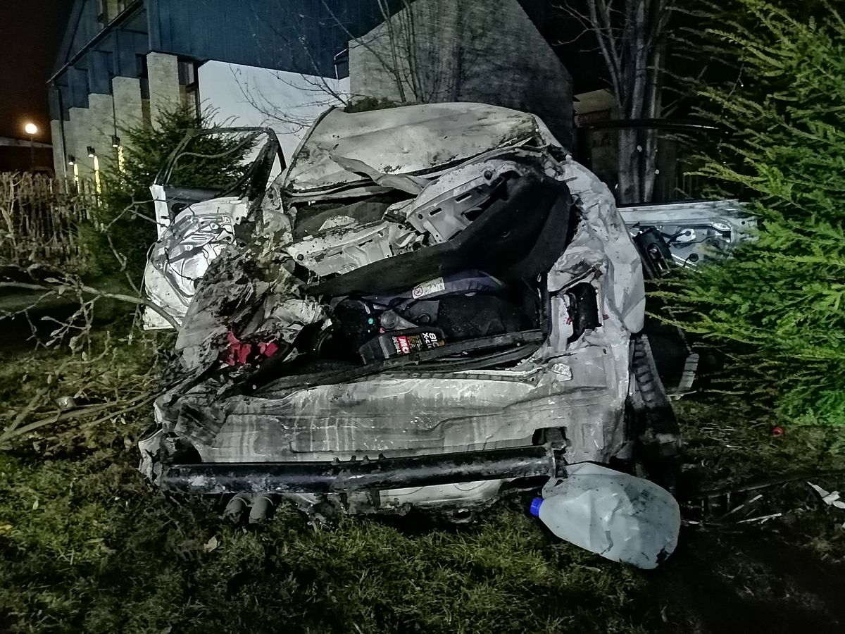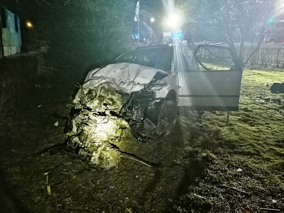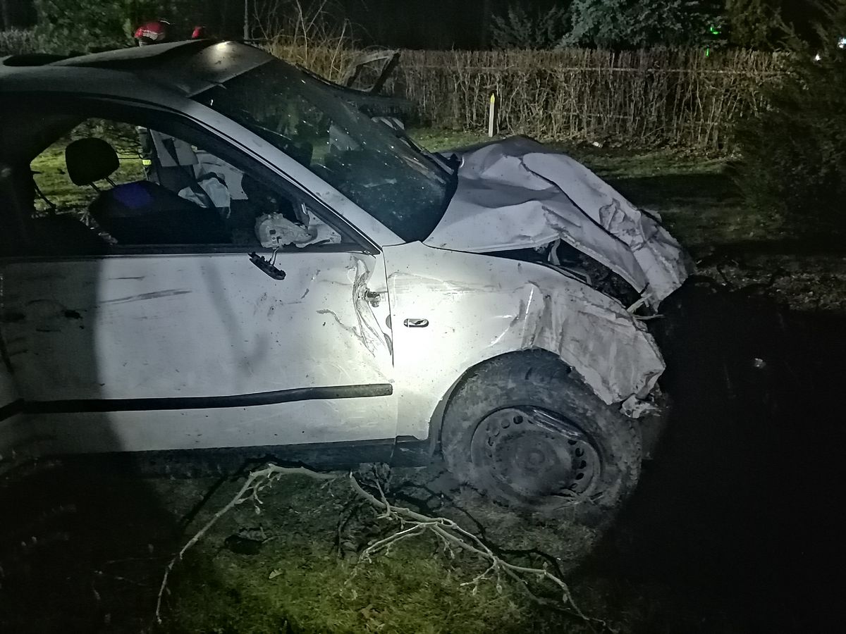 Nawojowa, ul. Lipowa- samochód osobowy wypadł z drogi, trzy osoby poszkodowane