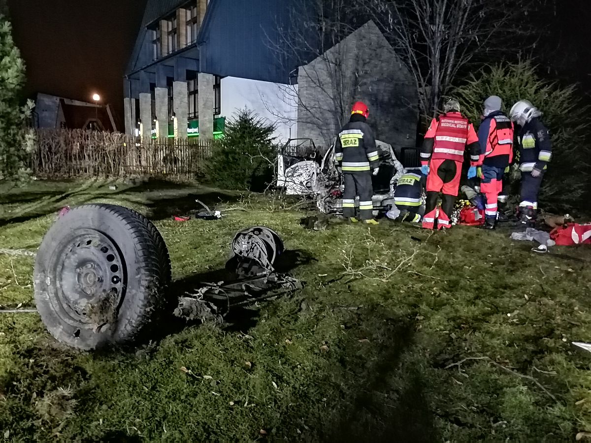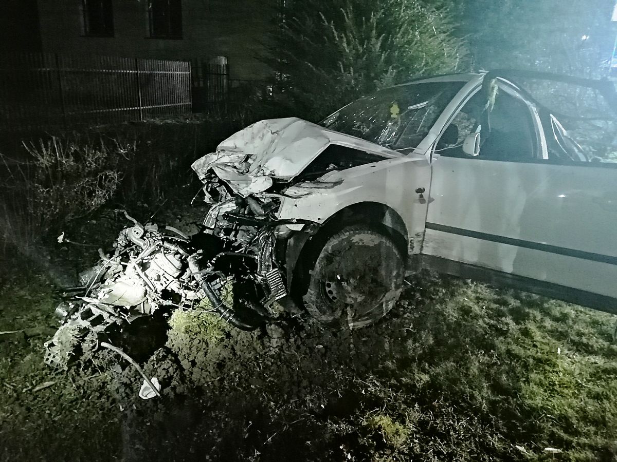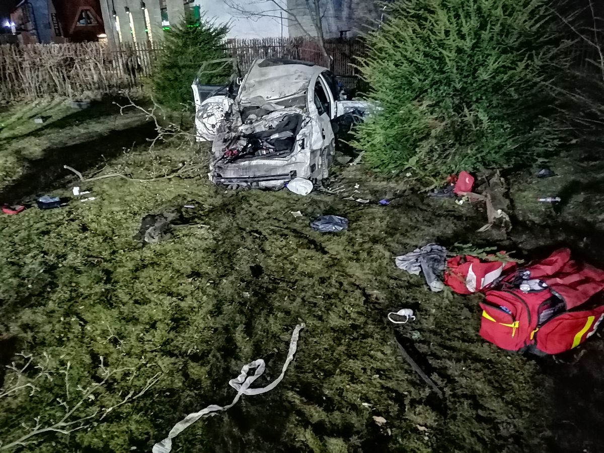 Nawojowa, ul. Lipowa- samochód osobowy wypadł z drogi, trzy osoby poszkodowane