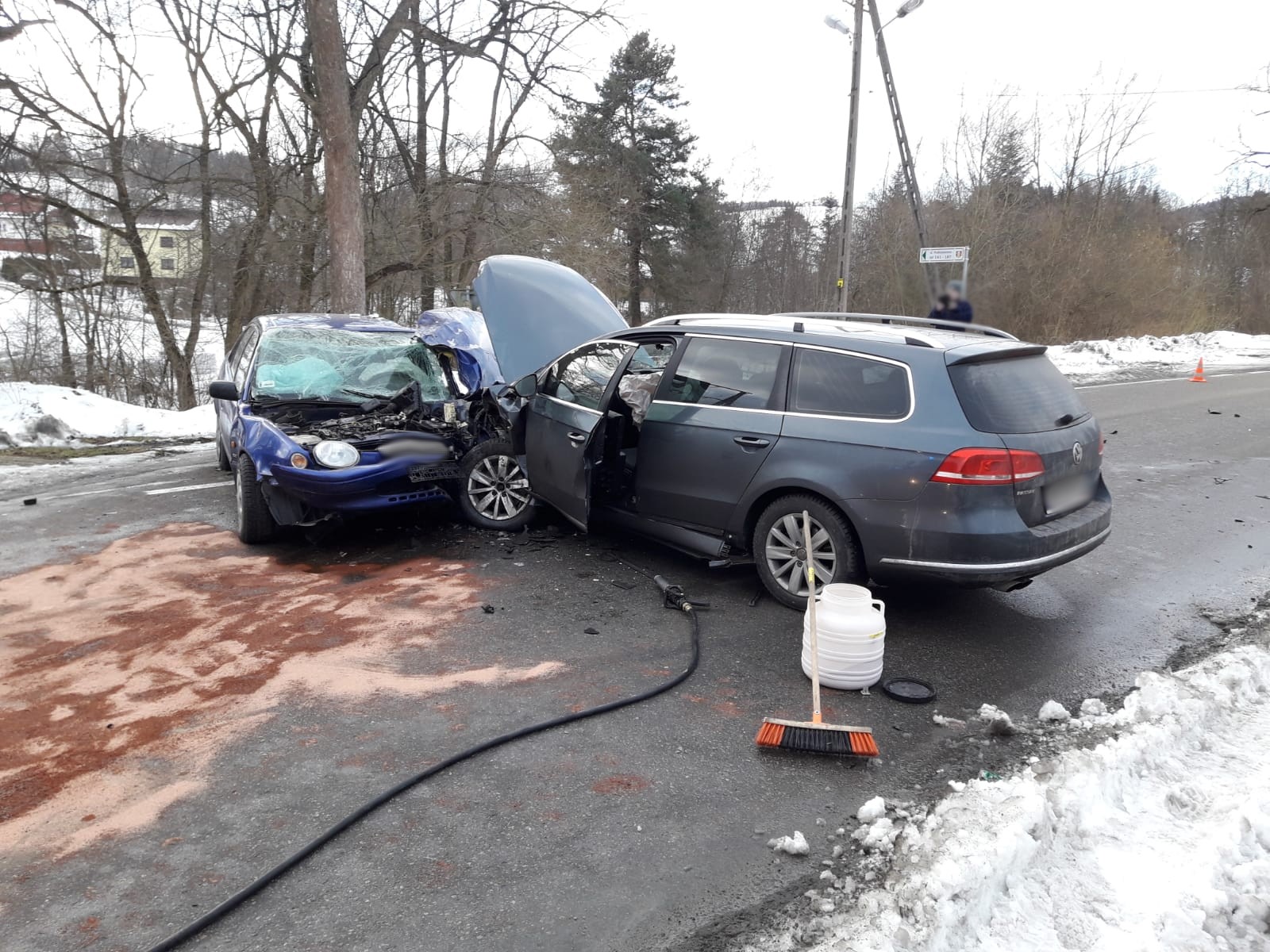 3 lutego około godziny 7.48 zastępy z JRG nr 2 w Nowym Sączu oraz OSP Nawojowa zadysponowane zostały do działań w Nawojowej na ulicę Podkamienne. Po przybyciu na miejsce zdarzenia ustalono, że doszło do zderzenia dwóch samochodów osobowych. Samochody znajdowały się na drodze. Droga była całkowicie zablokowana. Na miejscu znajdowała się karetka Pogotowia Ratunkowego. Samochodem Toyota Corolla podróżowały dwie osoby. Jedna opuściła go o własnych siłach, nie uskarżając się na żadne dolegliwości. Druga osoba nie mogła samodzielnie opuścić samochodu i znajdowała się pod opieką ratowników medycznych Pogotowia ratunkowego. Samochodem osobowym VW Passat podróżował sam kierowca, który opuścił pojazd o własnych siłach i nie uskarżał się na żadne dolegliwości. Działania zastępów straży polegały na zabezpieczeniu miejsca zdarzenia, udzieleniu pomocy ratownikom pogotowia w działaniach medycznych oraz w ewakuacji osoby poszkodowanej z pojazdu przy użyciu deski ortopedycznej. Dokonano sorpcji płynów eksploatacyjnych. Podniesiono przednią maskę samochodu Toyota za pomocą narzędzi hydraulicznych w celu odłączenia klem akumulatora. Działania strażaków trwały ponad godzinę.