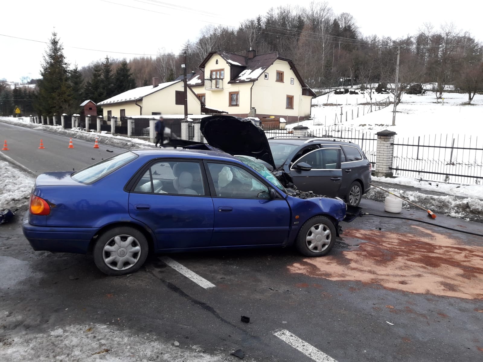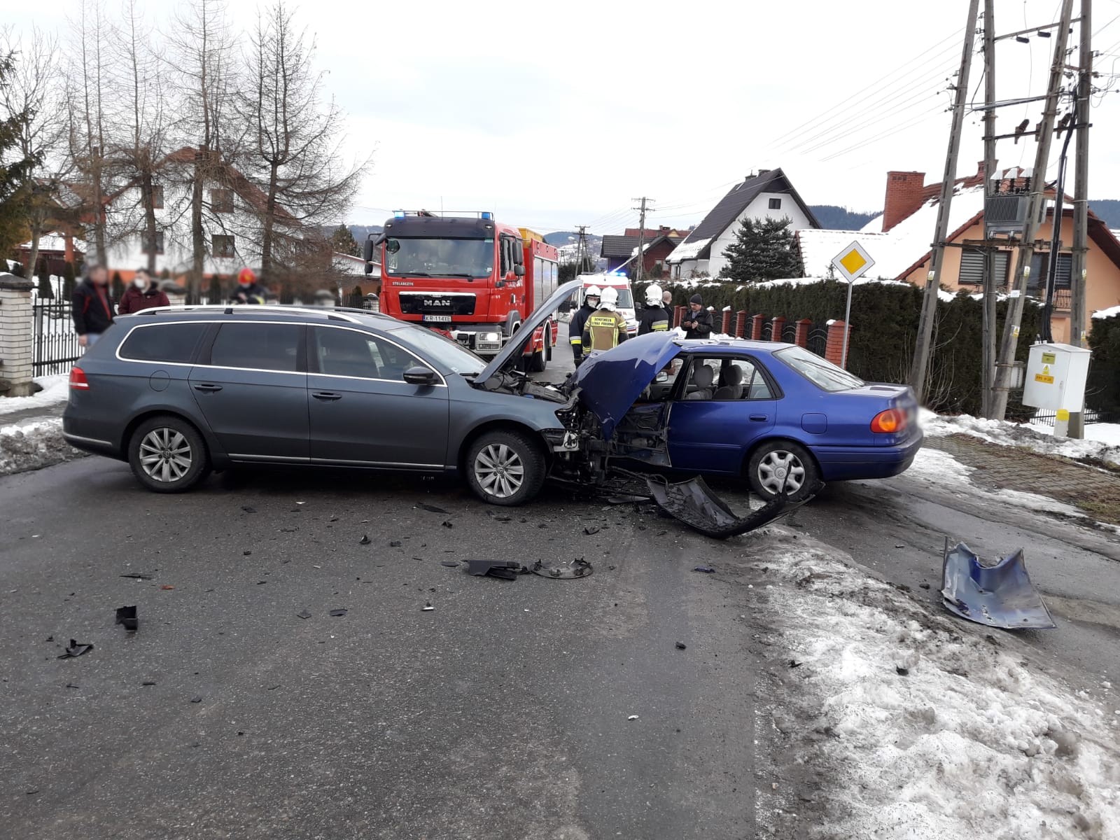 Nawojowa, ul. Podkamienne- zderzenie dwóch samochodów osobowych