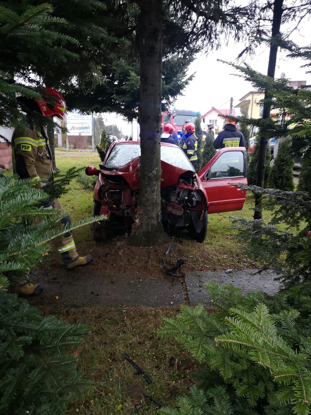 23 grudnia około godziny 14.50 zastępy z JRG nr 2 w Nowym Sączu oraz OSP Nawojowa zadysponowane zostały do działań w Nawojowej na ulicy Starosądeckiej. Po przybyciu na miejsce zdarzenia ustalono, że doszło do zderzenia samochodu osobowego z drzewem, na posesji. Na miejscu znajdowała się Policja oraz karetka Pogotowia Ratunkowego. Samochodem podróżował sam kierowca, który opuścił pojazd i znajdował się pod opieką ratowników medycznych Pogotowia. Działania Straży Pożarnej polegały na zabezpieczeniu miejsca zdarzenia, sprawdzeniu czy pojazd nie ma wycieków oraz odpięciu akumulatora w samochodzie. Działania strażaków zakończono po pięćdziesięciu minutach Na miejscu zdarzenia pozostała Policja.