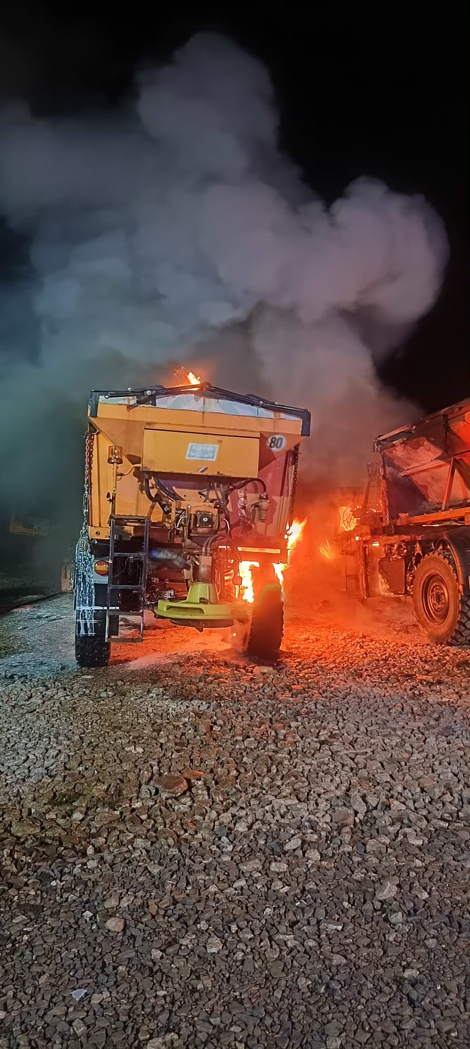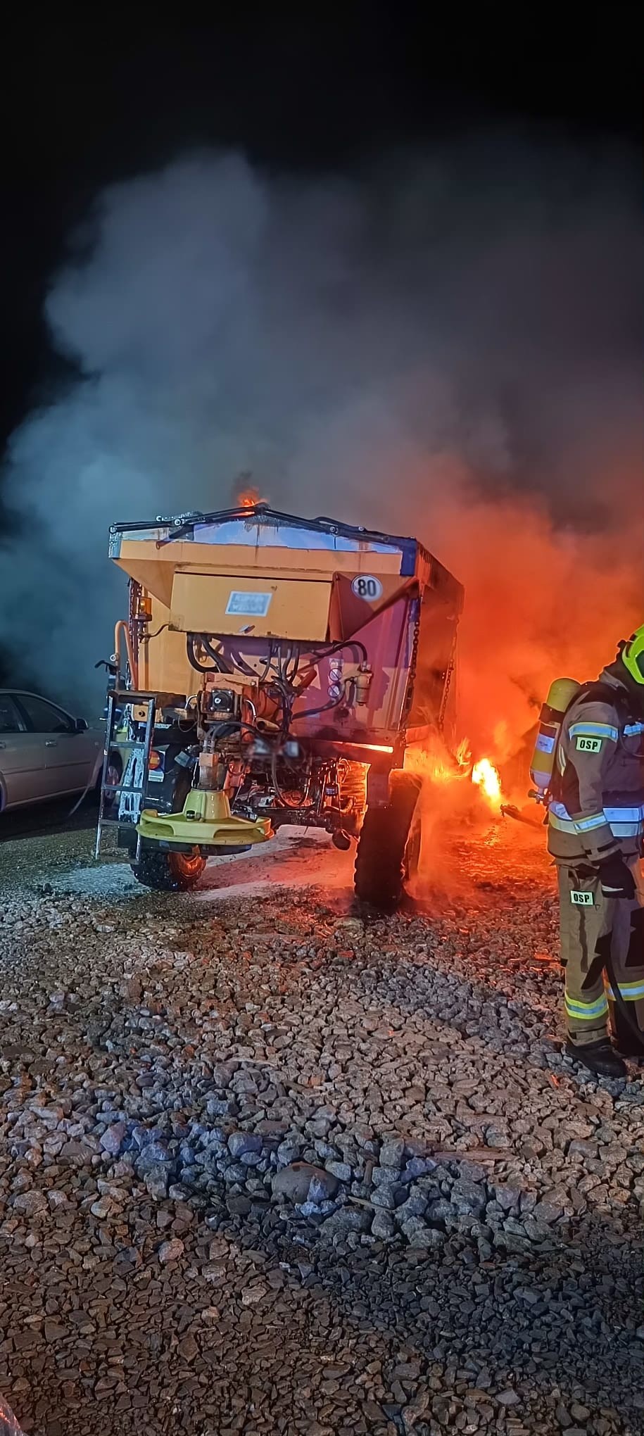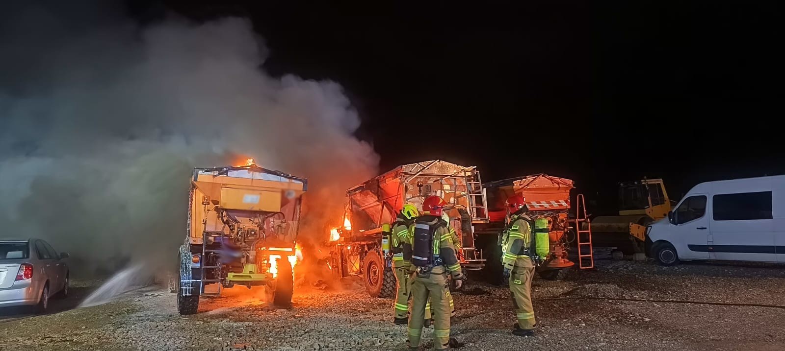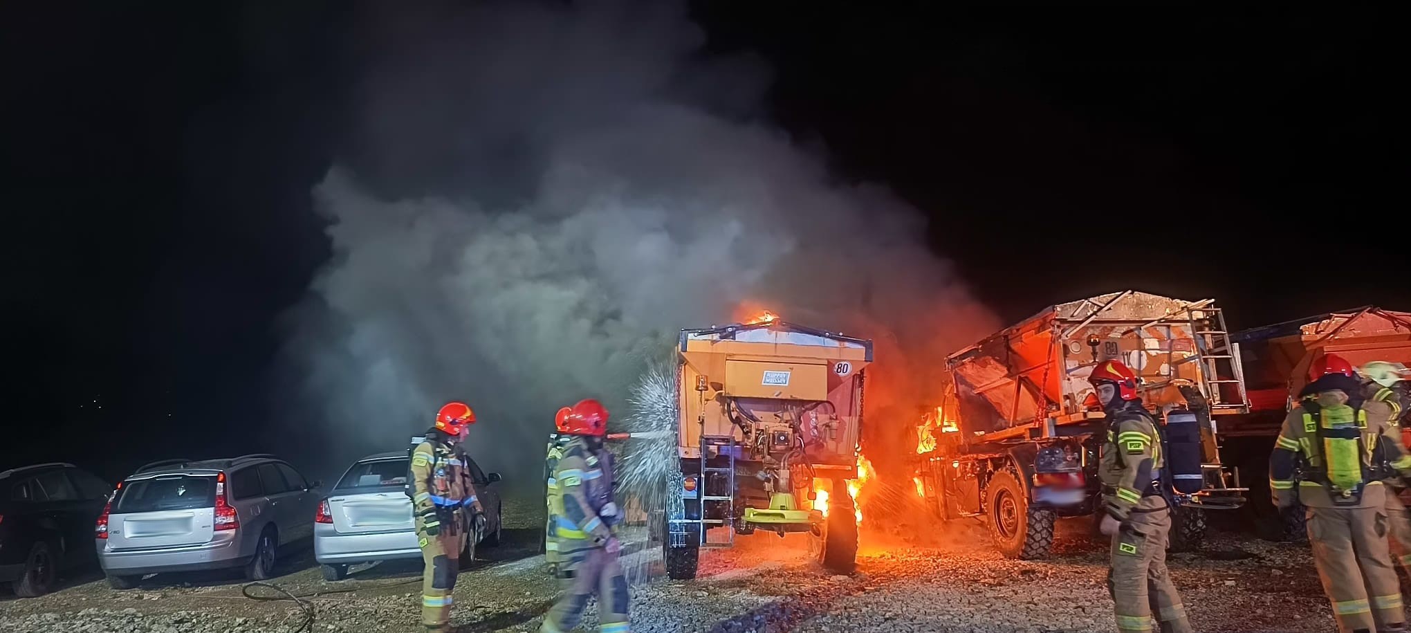 13 października o godzinie 2.43 zastępy z JRG nr 2 w Nowym Sączu, OSP Niskowa oraz OSP Podrzecze zadysponowane zostały do działań w Niskowej. Po przybyciu na miejsce zdarzenia ustalono, że paliły się trzy samochody ciężarowe Mercedes Unimog – pługopiaskarki. Działania zastępów straży pożarnej polegały na zabezpieczeniu miejsca zdarzenia, podaniu prądów piany ciężkiej na palące się samochody ciężarowe oraz podanie drugiego prądu piany ciężkiej w obronie na sąsiednie pojazdy. Po ugaszeniu pożaru sprawdzono kamerą termowizyjną spalone pojazdy. Działania strażaków trwały prawie trzy godziny. Przyczyna pożaru jest nieustalona.