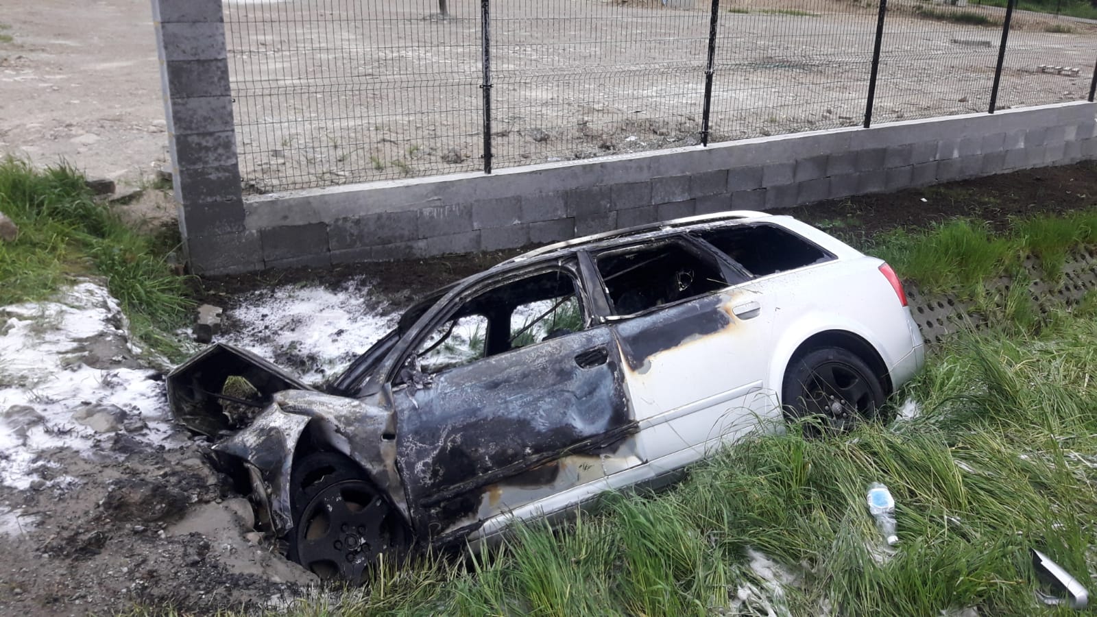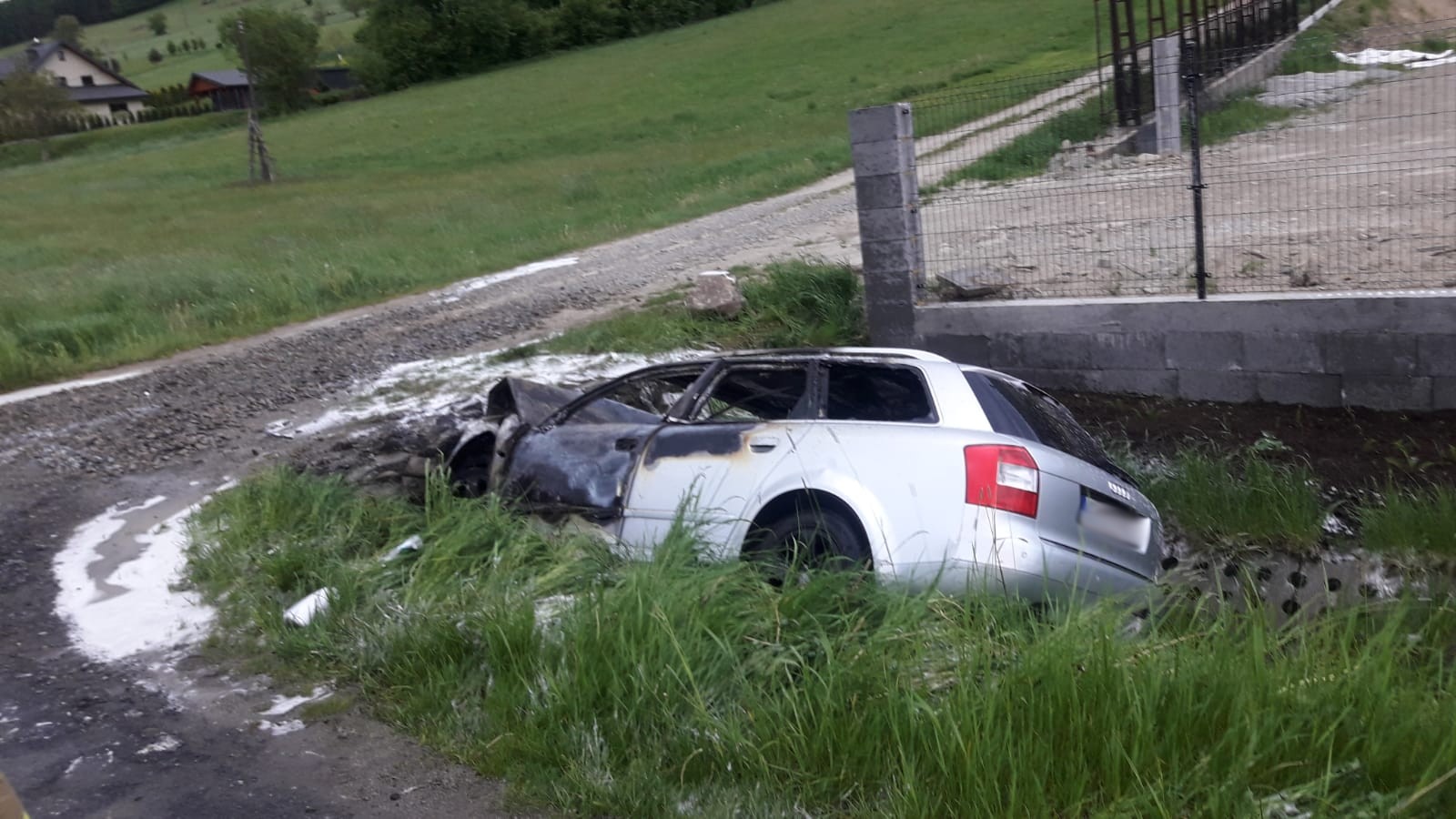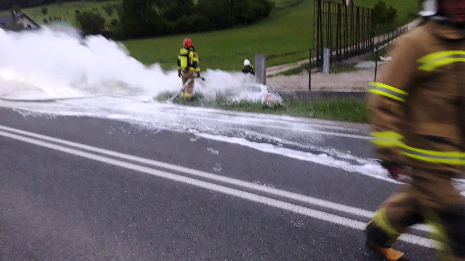 Nowa Wieś – samochód osobowy wypadł z drogi, uderzył w przepust i uległ zapaleniu