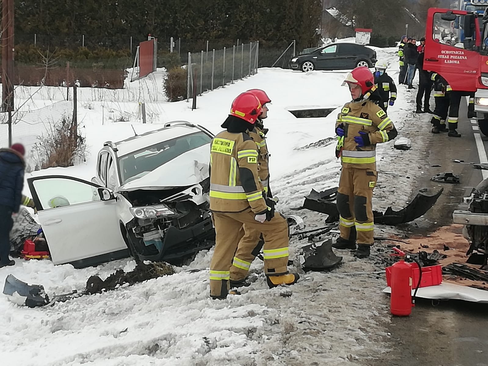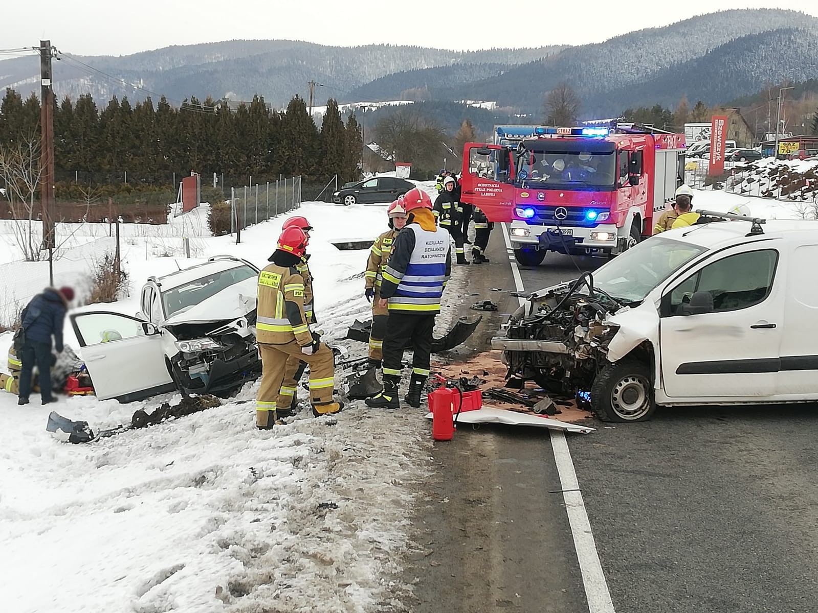 8 lutego o godzinie 15.16 zastępy z JRG w Krynicy Zdroju, OSP Nowa Wieś oraz OSP Łabowa zadysponowane zostały do działań w Nowej Wsi. Po przybyciu na miejsce zdarzenia ustalono, że na drodze krajowej nr 75 doszło do zderzenia dwóch samochodów osobowych. Pojazdami podróżowały łącznie trzy osoby. Uczestnicy zdarzenia wydostali się z pojazdów o własnych siłach. Samochód osobowy Toyota Raw 4 znajdował się w przydrożnym rowie. W pojeździe w chwili zdarzenia znajdowały się dwie osoby. Z relacji świadków wynikało, że jedna osoba po opuszczeniu samochodu zasłabła. Druga osoba nie zgłaszała dolegliwości. Drugi z pojazdów Peugeot Partner znajduje się na jezdni blokuje całkowicie pas jezdni w kierunku Krynicy i częściowo pas drogi w stronę Nowego Sącza. Kierowca uskarżał się na dolegliwości. Działania zastępów straży polegały na zabezpieczeniu miejsca zdarzenia, odłączeniu zasilania w uszkodzonych pojazdach oraz udzieleniu pomocy osobom poszkodowanym. Dalsze działania polegały na sorpcji rozlanych płynów eksploatacyjnych. Zastęp z OSP Nowa Wieś został skierowany do kierowania ruchem, który odbywał się wahadłowo. Osoby poszkodowane przejęli ratownicy karetek Pogotowia ratunkowego. Poszkodowani zostali zabrani do szpitali. Po zakończeniu czynności przez Policję usunięto samochód Peugeot na pobocze oraz usunięto z jezdni części rozbitych pojazdów. Działania strażaków trwały prawie dwie godziny.