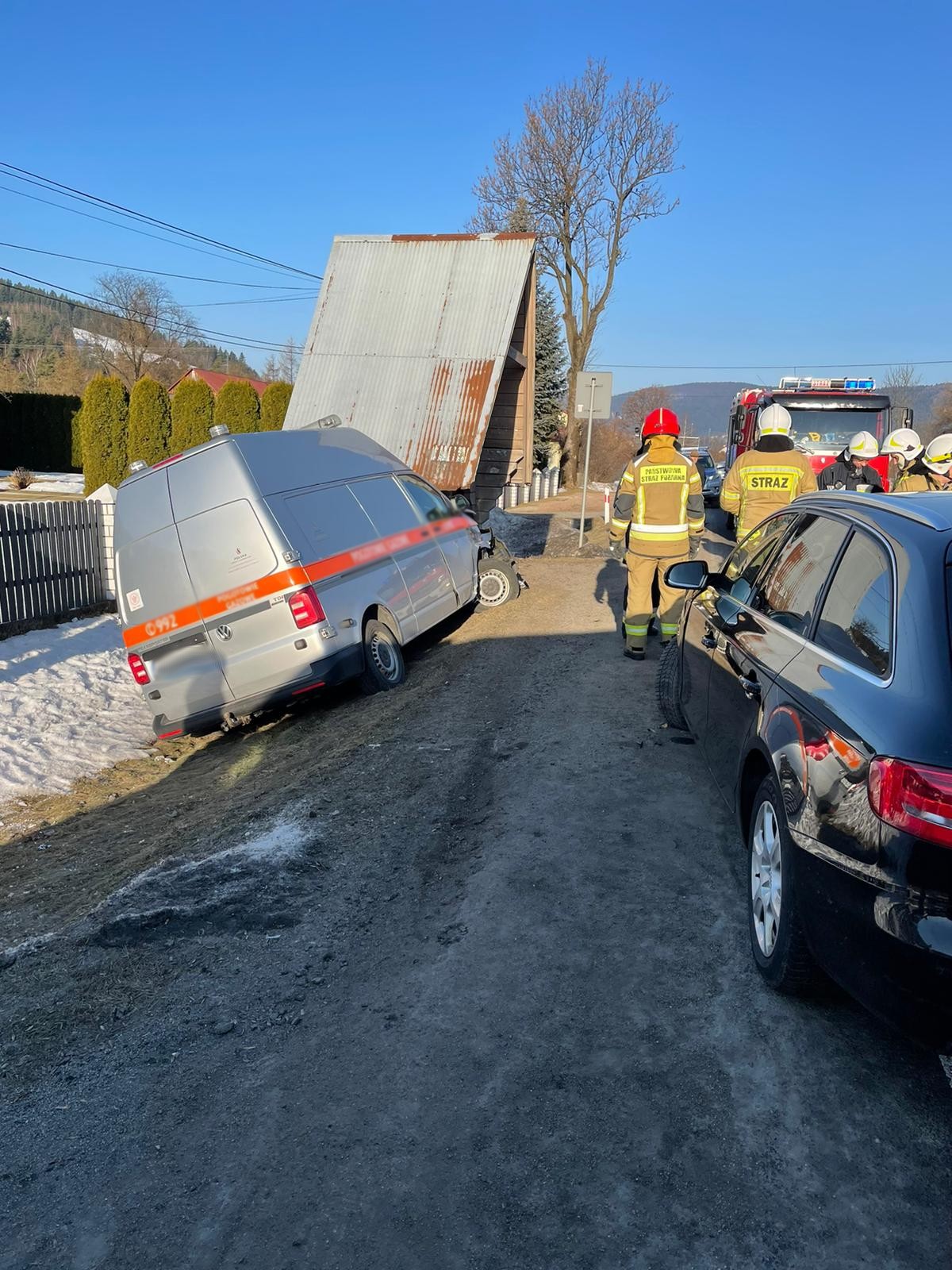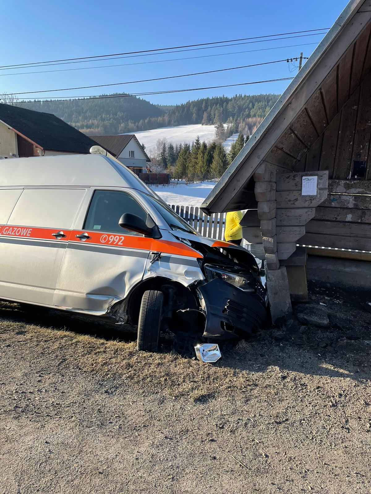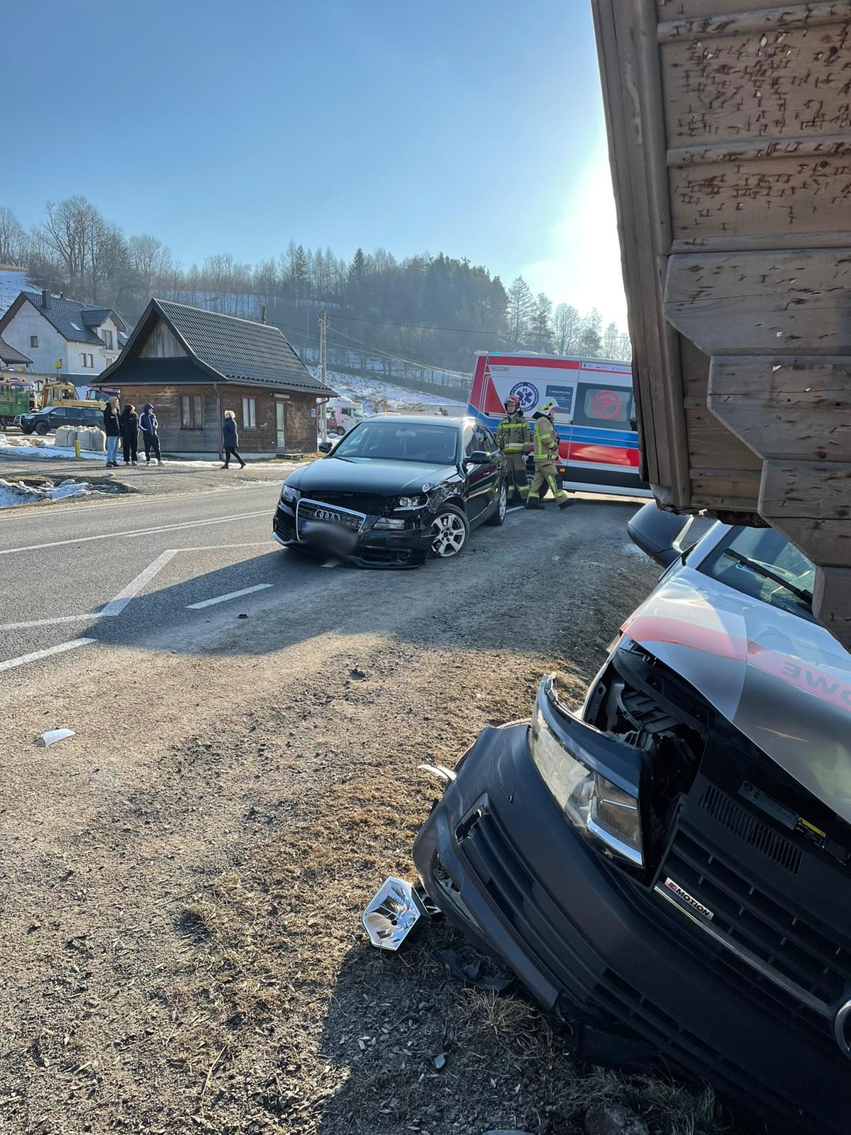 14 lutego o godzinie 8.14 zastępy z JRG w Krynicy Zdroju, OSP Łabowa oraz OSP Nowa Wieś zadysponowane zostały do działań w Nowej Wsi. Po przybyciu na miejsce zdarzenia ustalono, że na drodze krajowej nr 75 doszło do zderzenia samochodu osobowego Audi z pojazdem specjalistycznym Pogotowia Gazowego. Pojazdami podróżowały łącznie trzy osoby. Kierująca samochodem Audi uskarżała się na dolegliwości. Audi blokowało pas jezdni w kierunku Krynicy-Zdroju. Drugi pojazd po zderzeniu uderzył w wiatę przystankową naruszając konstrukcję obiektu i znajdował się poza jezdnią w przydrożnym rowie. Pojazdem pogotowia gazowego podróżowało dwóch pracowników, którzy nie zgłaszali żadnych dolegliwości związanych ze zdarzeniem. Nie stwierdzono wycieków substancji ropopochodnych. Działania straży pożarnej polegały na zabezpieczeniu miejsca zdarzenia, odłączeniu zasilania w uszkodzonych pojazdach oraz wykonaniu medycznych działań ratowniczych poszkodowanej kobiety. Przybyła karetka Pogotowia Ratunkowego zabrała kobietę do szpitala. Dalsze działania polegały na kierowaniu ruchem drogowym w sposób wahadłowy. Poinformowano pracownika Urzędu Gminy Łabowa o uszkodzeniach wiaty przystankowej. Zatoczkę autobusową oraz przystanek oznakowano taśmą ostrzegawczą. Po zakończeniu czynności przez Policję usunięto samochód Audi na pobocze oraz usunięto z jezdni części rozbitych pojazdów. Działania strażaków trwały ponad dwie godziny.