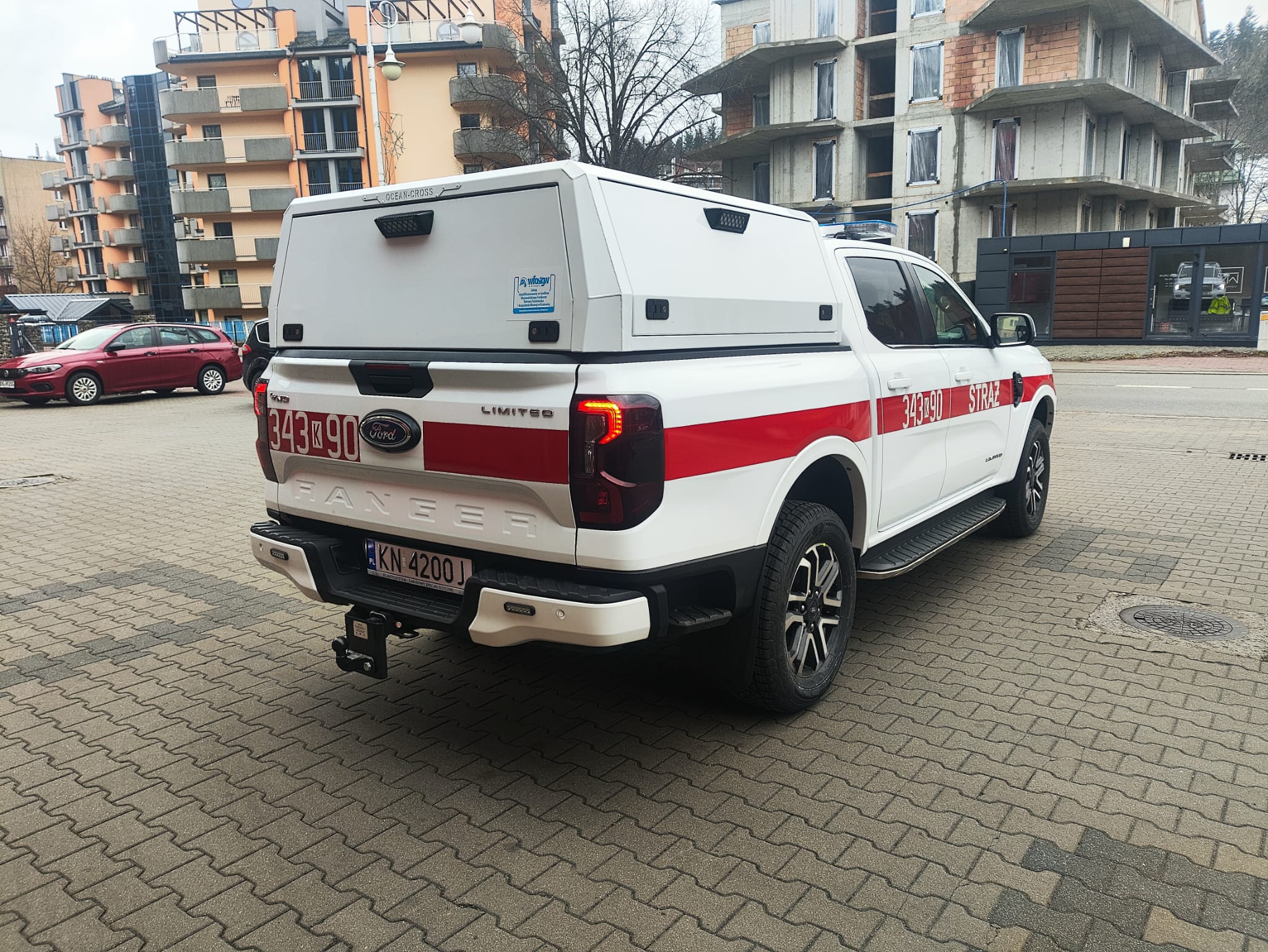 Nowy SLRR Ford Ranger 2.0 EcoBlue Bi-Turbo 205KM 4x4 w wersji Limited. Samochód przystosowany na potrzeby Straży Pożarnej przez Firmę Frank Cars Sp.z o.o z Częstochowy. Pojazd doposażony jest między innymi w zabudowę typu Hard Top z wygodnym dostępem z trzech stron pojazdu, przetwornicę napięcia 12/230 o mocy 3000W, dodatkowy radiotelefon przewoźny Motorola ze specjalnym przewoźnym masztem antenowym oraz wciągarkę samochodową o sile uciągu 5443kg. Rok produkcji podwozia 2023. Wartość pojazdu to 317 586 zł.