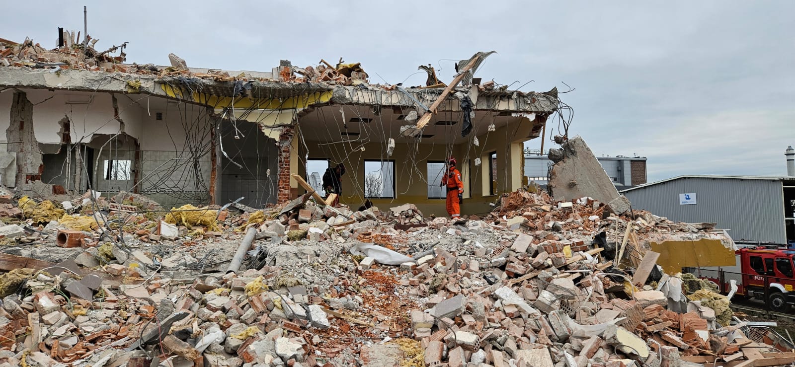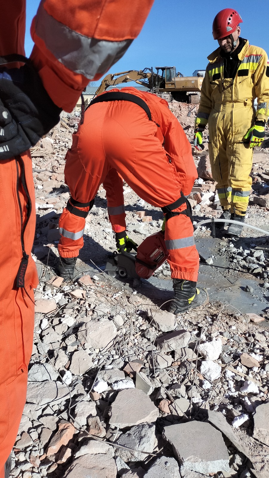 Rozbiórka starej siedziby JRG 2 oraz WSSGR Nowy Sącz, gdzie przez wiele lat funkcjonowała cała rzesza strażaków, wywołuje nostalgię i zadumę. Jednak z drugiej strony ten etap budowy dostarczył Specjalistycznej Grupie Poszukiwawczo Ratowniczej niesamowite warunki do ćwiczeń ratowniczych. Przy współpracy w głównym wykonawcą inwestycji przeprowadzono ćwiczenia SGPR Nowy Sącz z zakresu działań poszukiwawczo ratowniczych. Przede wszystkim przeprowadzone zostały zajęcia dla przewodników psów ratowniczych, dla których powstałe gruzowisko stanowiło obszar działań zbliżony do realistycznej sytuacji katastrofy budowlanej. W podobnych warunkach działał zespół techniczny, który miał możliwość przećwiczenia prowadzenia działań z użyciem nowo pozyskanego wyposażenia elektronarzędzi akumulatorowych.
