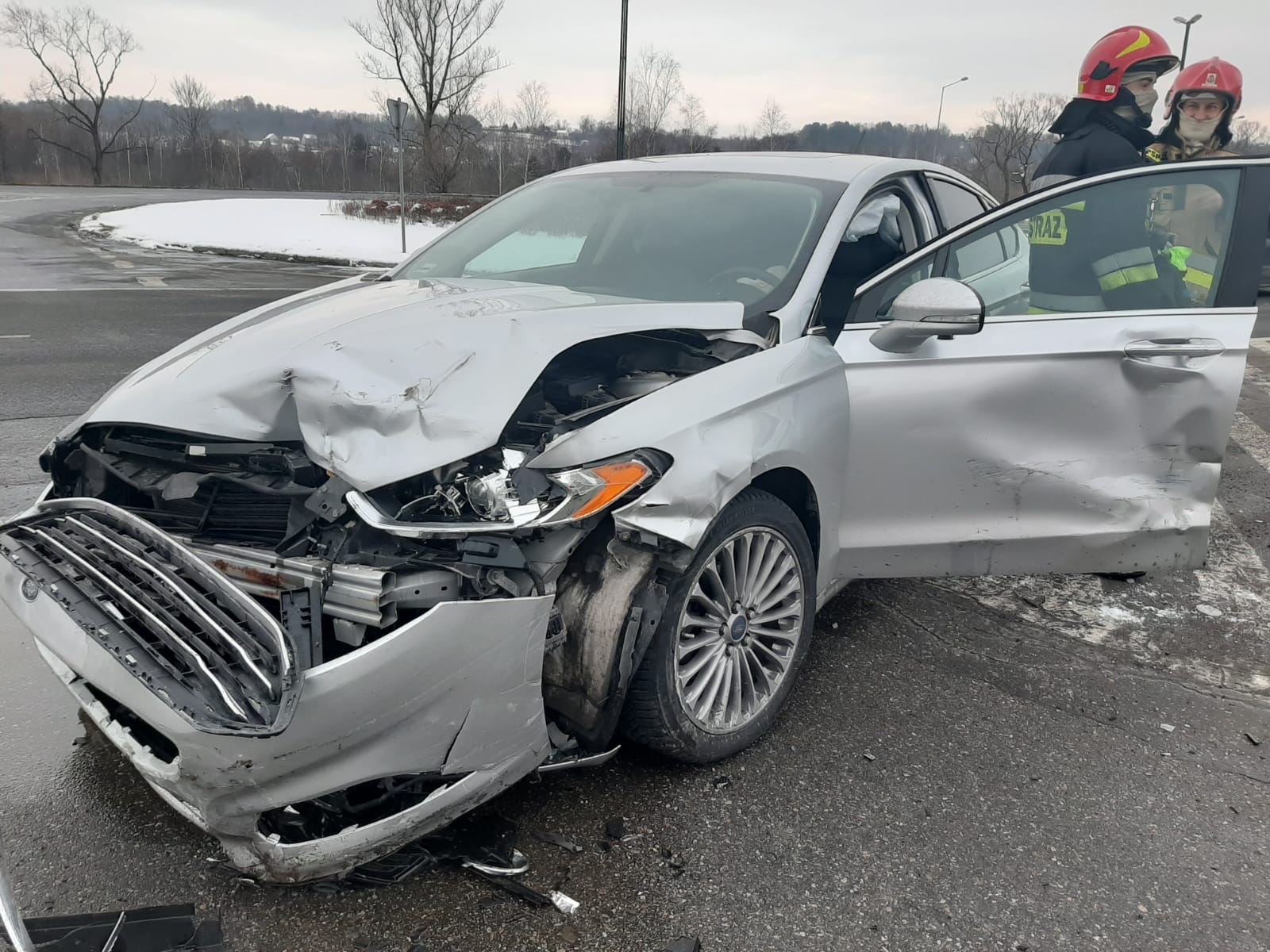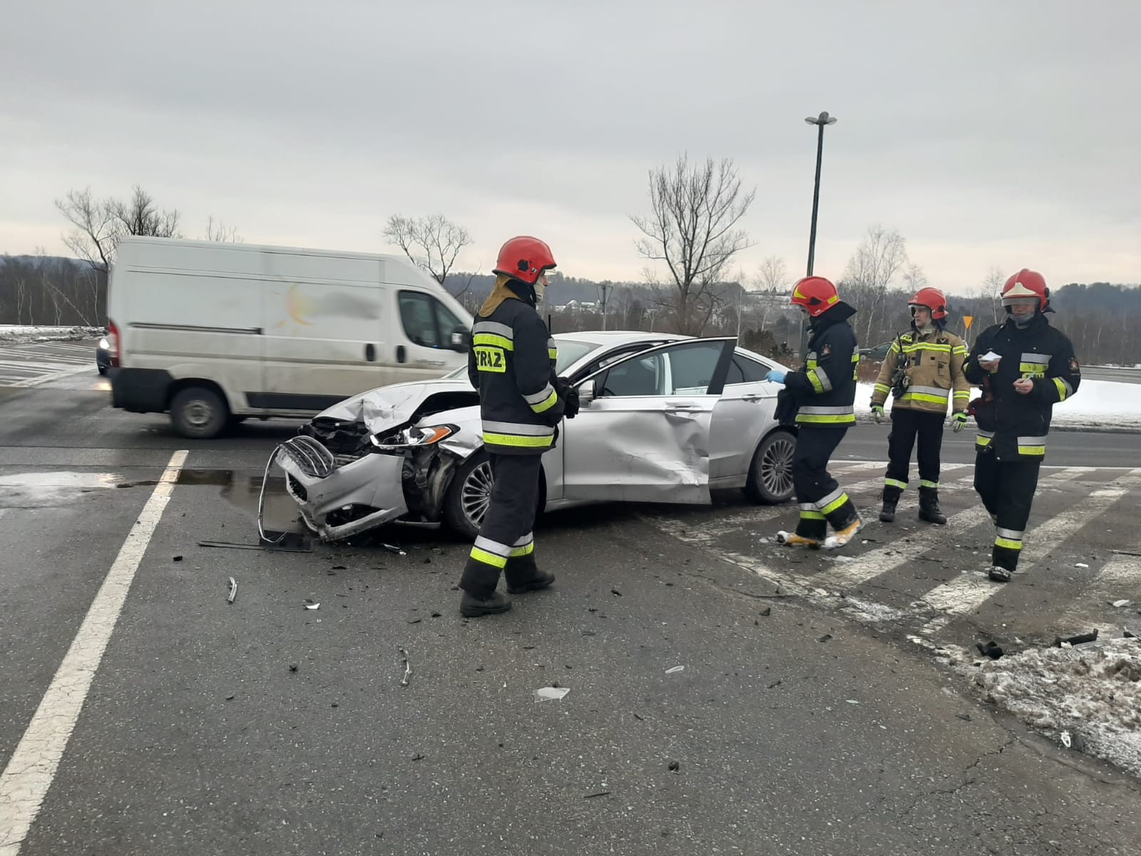 16 lutego około godziny 15.48 zastęp z JRG nr 1 w Nowym Sączu zadysponowany został do działań w Nowym Sączu na Alejach Piłsudskiego. Po przybyciu na miejsce zdarzenia stwierdzono, że w zdarzeniu udział brały dwa samochody osobowe tj. Volvo V40 oraz Ford Fusion. Na miejscu zdarzenia było dwie karetki Pogotowia ratunkowego, których załogi zajęły się osobami uczestniczącymi w zdarzeniu. Samochodami podróżowało łącznie trzy osoby. Z Forda nastąpił wyciek płynów eksploatacyjnych. Działania zastępów straży polegały na zabezpieczeniu miejsca zdarzenia, rozłączeniu instalacji elektrycznej w obydwu pojazdach oraz wykonaniu sorpcji płynów eksploatacyjnych.