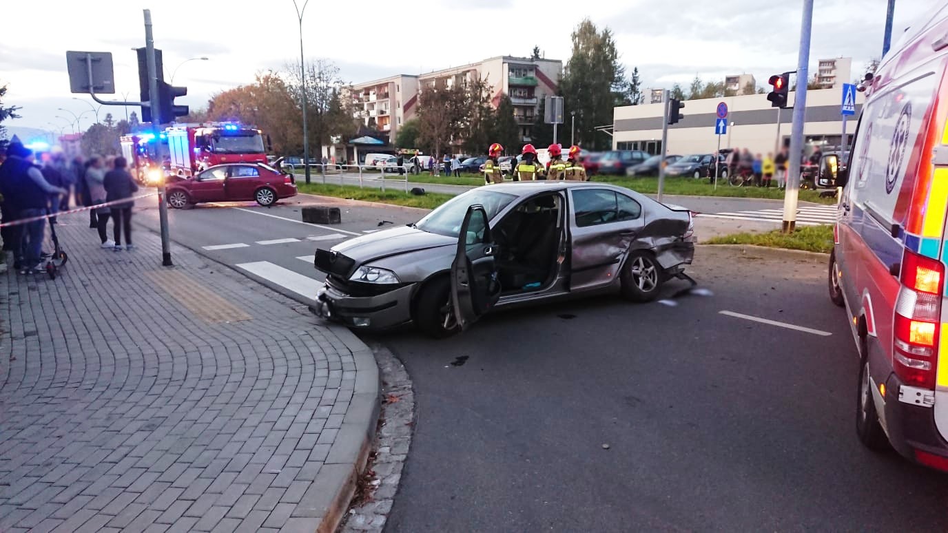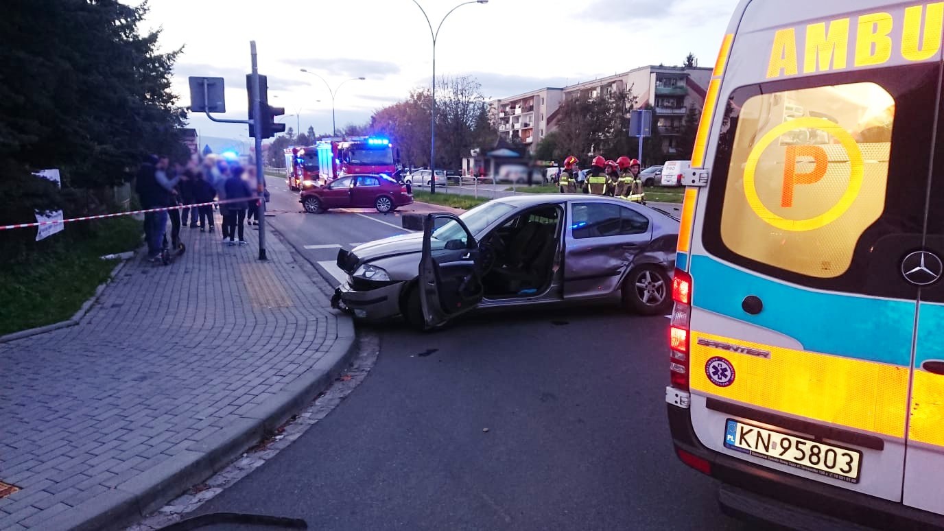 Nowy Sącz, Aleje Sucharskiego- zderzenie dwóch samochodów osobowych