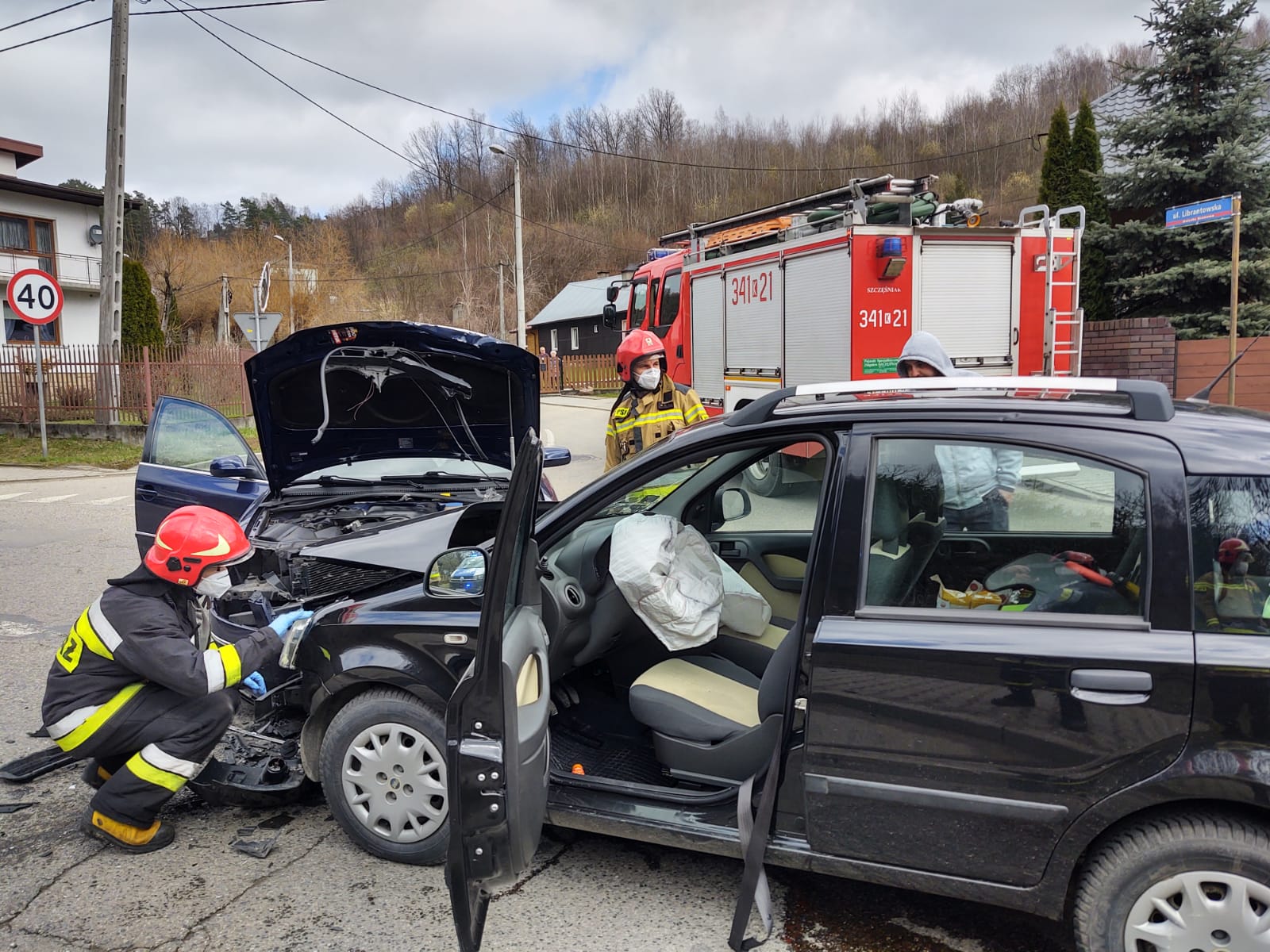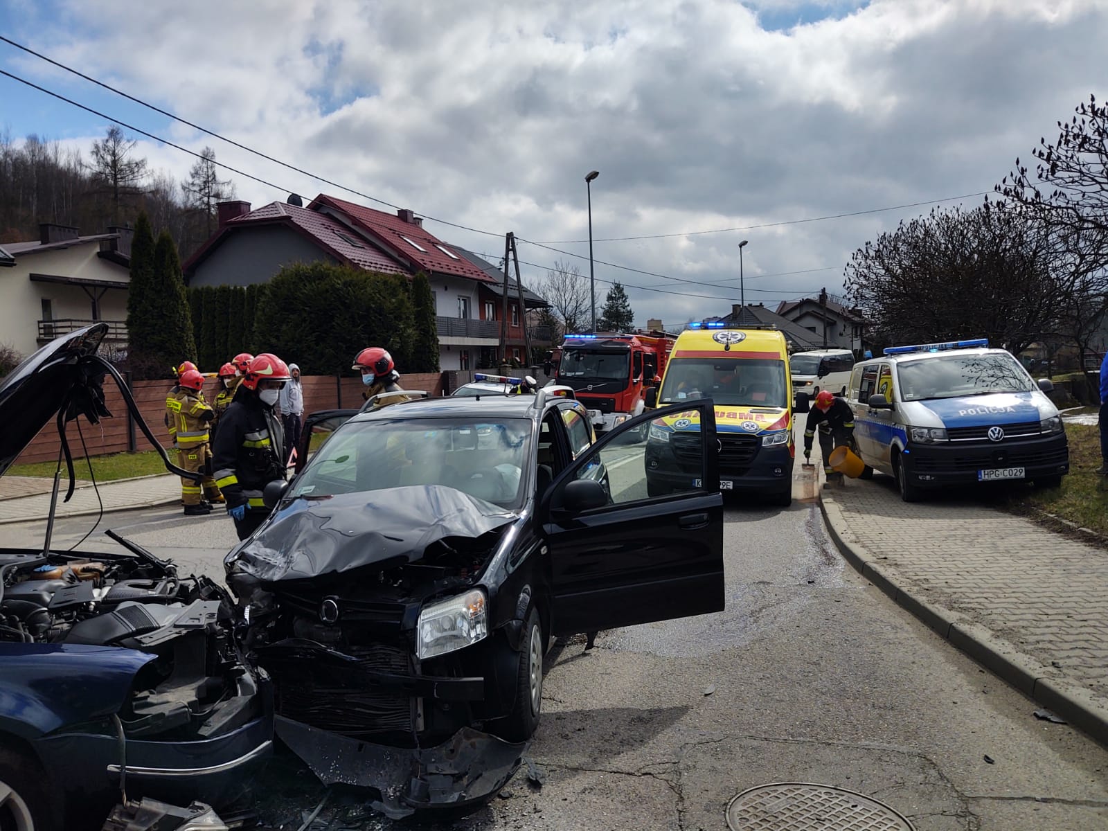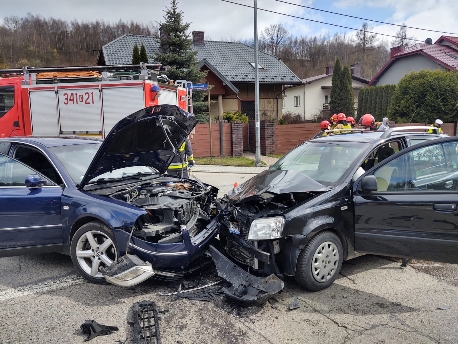 2 kwietnia około godziny 13.51 zastępy z JRG nr 1 w Nowym Sączu zadysponowane zostały do działań w Nowym Sączu na ulicę Barską. Po przybyciu na miejsce zdarzenia ustalono, że zderzyły się dwa samochody osobowe tj. VW Passat oraz Fiat Panda. Kierujący pojazdami opuścili je o własnych siłach. Jedna osoba uskarżała się na dolegliwości. Nastąpił wyciek płynów eksploatacyjnych z uszkodzonych pojazdów. Ruch w obydwu kierunkach był zablokowany przez pojazdy służb ratowniczych. Działania strażaków polegały na zabezpieczeniu terenu działań oraz udzieleniu kwalifikowanej pierwszej pomocy osobie poszkodowanej do czasu przybycia i przejęcia poszkodowanej przez załogę karetki Pogotowia ratunkowego. Dokonano sorpcji rozlanych płynów eksploatacyjnych z uszkodzonych pojazdów. Wprowadzono ruch wahadłowy na czas wykonywania czynności na miejscu zdarzenia przez Policje. Rozłączono akumulatory w obydwu pojazdach. Na prośbę Policji udzielono pomocy w załadunku pojazdów na lawetę. Usunięto z drogi pozostałości po kolizji oraz fragmenty karoserii pojazdów. Działania strażaków trwały godzinę.