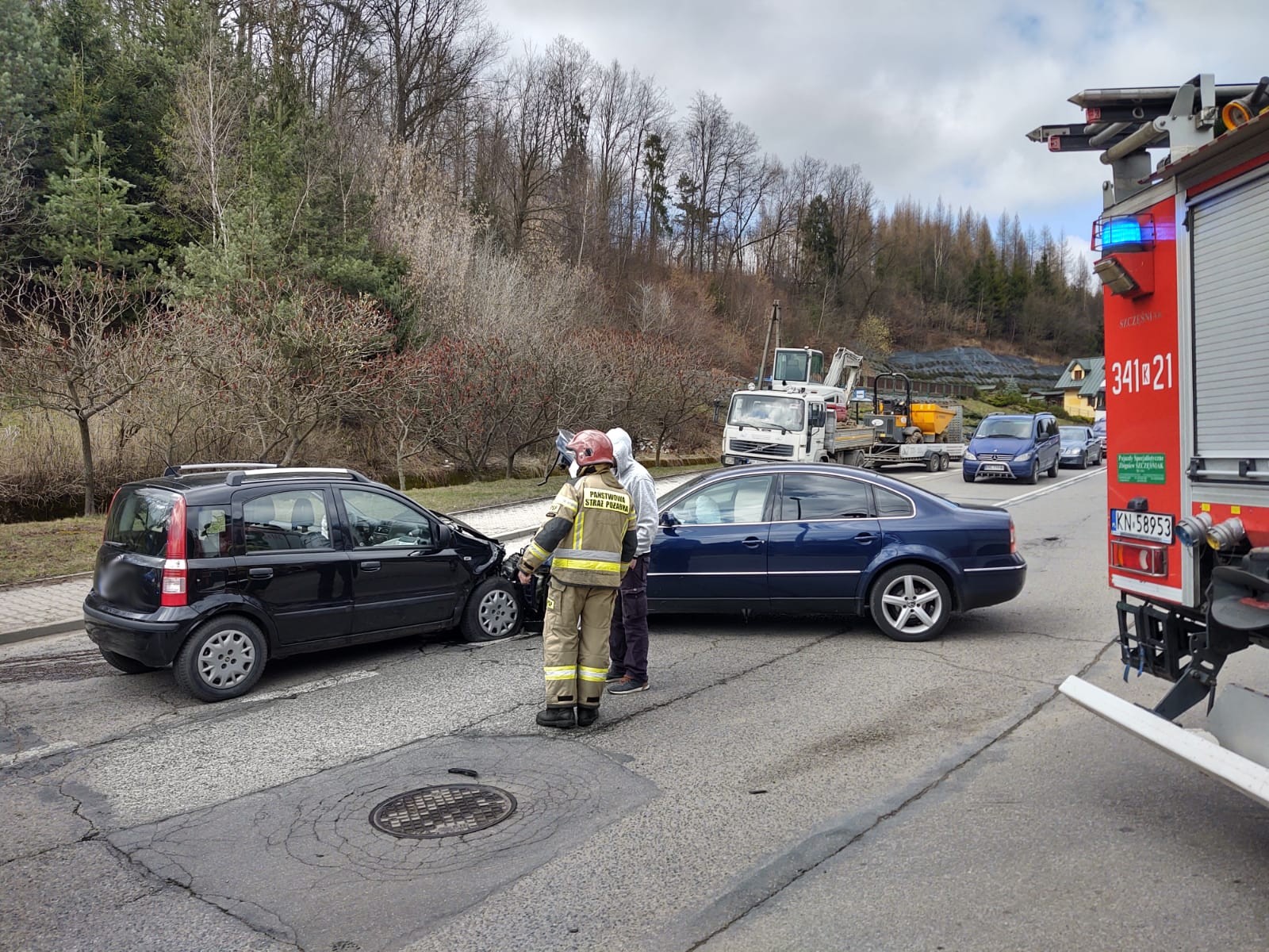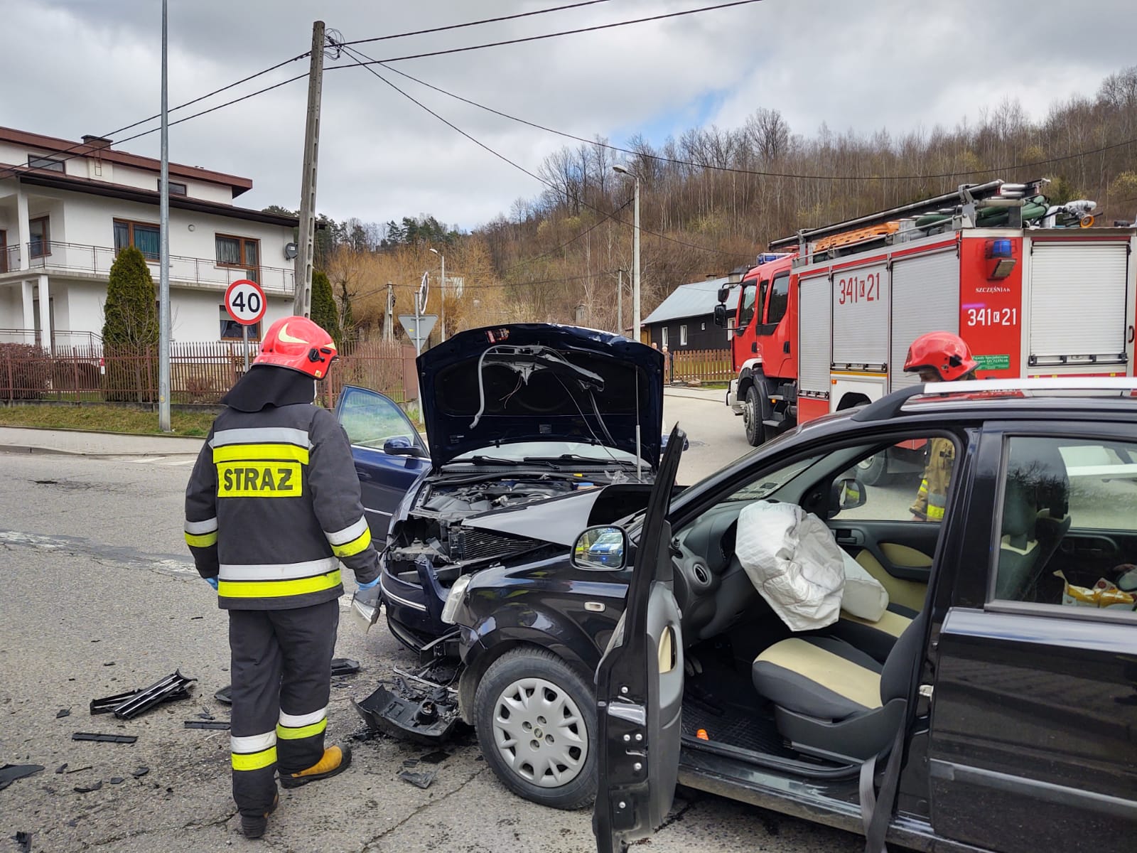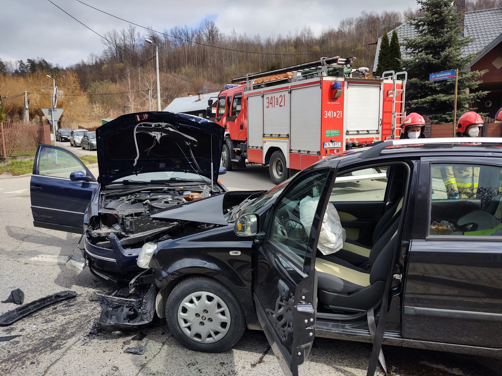 2 kwietnia około godziny 13.51 zastępy z JRG nr 1 w Nowym Sączu zadysponowane zostały do działań w Nowym Sączu na ulicę Barską. Po przybyciu na miejsce zdarzenia ustalono, że zderzyły się dwa samochody osobowe tj. VW Passat oraz Fiat Panda. Kierujący pojazdami opuścili je o własnych siłach. Jedna osoba uskarżała się na dolegliwości. Nastąpił wyciek płynów eksploatacyjnych z uszkodzonych pojazdów. Ruch w obydwu kierunkach był zablokowany przez pojazdy służb ratowniczych. Działania strażaków polegały na zabezpieczeniu terenu działań oraz udzieleniu kwalifikowanej pierwszej pomocy osobie poszkodowanej do czasu przybycia i przejęcia poszkodowanej przez załogę karetki Pogotowia ratunkowego. Dokonano sorpcji rozlanych płynów eksploatacyjnych z uszkodzonych pojazdów. Wprowadzono ruch wahadłowy na czas wykonywania czynności na miejscu zdarzenia przez Policje. Rozłączono akumulatory w obydwu pojazdach. Na prośbę Policji udzielono pomocy w załadunku pojazdów na lawetę. Usunięto z drogi pozostałości po kolizji oraz fragmenty karoserii pojazdów. Działania strażaków trwały godzinę.