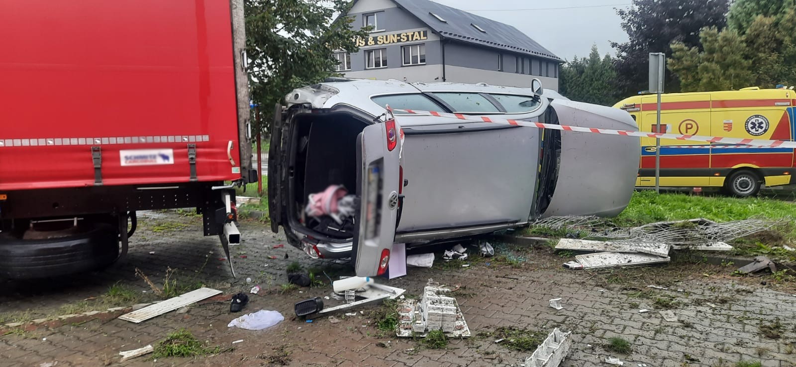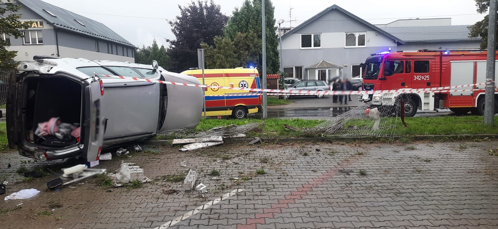 30 sierpnia o godzinie 8.17 zastępy z JRG nr 2 w Nowym Sączu zadysponowane zostały do działań w Nowym Sączu na ulicę Jana Pawła II. Po przybyciu na miejsce zdarzenia ustalono, że doszło do zderzenia czołowo bocznego dwóch samochodów marki Volkswagen i Dacia. Zderzenie doprowadziło do dachowania jednego z pojazdów. Pojazdami podróżowali sami kierowcy. Kierowca jednego pojazdu oddalił się pieszo z miejsca zdarzenia w nieznanym kierunku przed przybyciem zastępu Straży Pożarnej. Kierowca drugiego pojazdu znajdował się na miejscu zdarzenia i nie uskarżał się na dolegliwości bólowe. W wyniku dachowania Volkswagen uszkodził ogrodzenie na odcinku około 5 m, a także skrzynkę elektryczną. Na miejsce zdarzenia dotarł patrol Policji, karetka Pogotowia ratunkowego oraz dodatkowo zadysponowano Pogotowie Energetyczne. W chwili przybycia Straży Pożarnej pojazdy znajdowały się poza jezdnią. Działania strażaków polegały na zabezpieczeniu miejsca zdarzenia poprzez ogrodzenia taśmą ostrzegawczą. Przy pomocy detektora sprawdzono czy przewody wystające z całkowicie uszkodzonej skrzynki elektrycznej są pod napięciem. Detektor wykazał obecność napięcia. Odłączono klemy akumulatorów w pojazdach. Uprzątnięto pozostałości powypadkowe z jezdni. Działania Straży Pożarnej trwały godzinę. Na miejscu zdarzenia pozostali funkcjonariusze Policji prowadząc dalsze czynności wyjaśniające okoliczności zdarzenia.