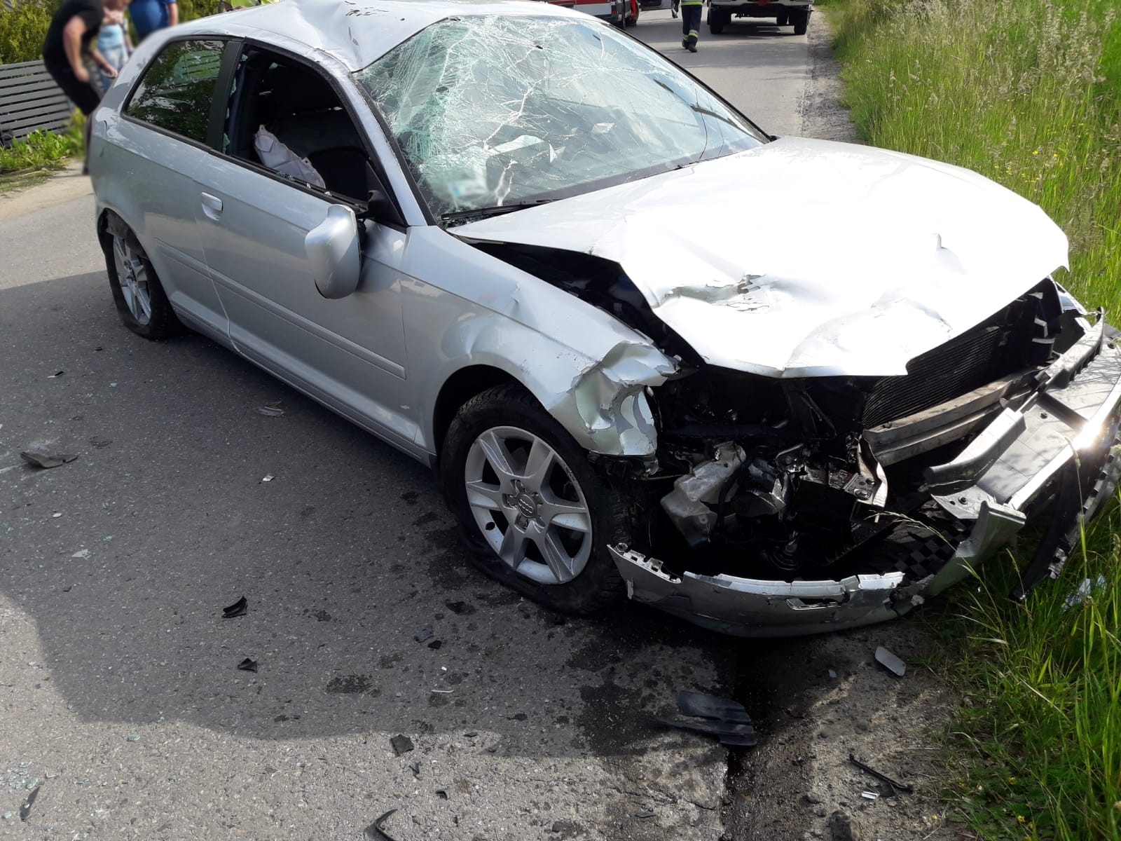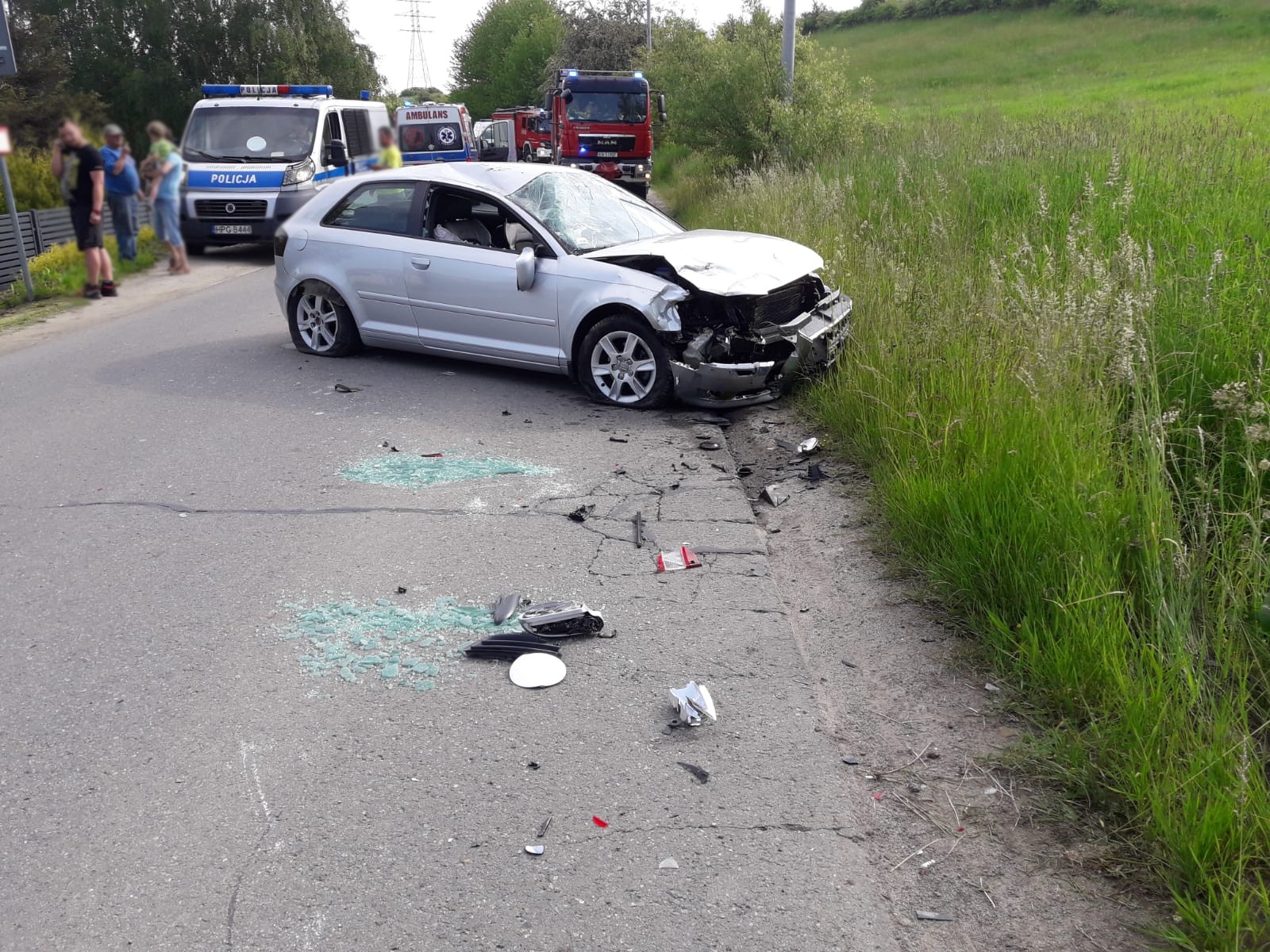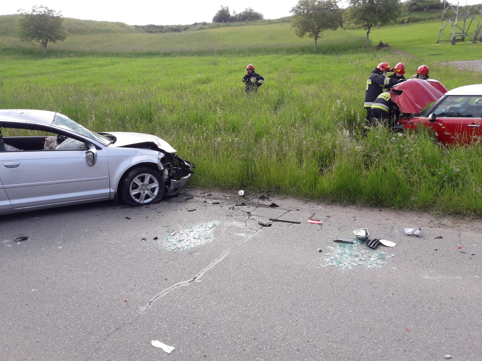 doszło do zderzenia trzech samochodów osobowych marki Audi, Skoda oraz Cooper. Jednej osobie pomocy udzielała załoga karetki Pogotowia ratunkowego. Droga została częściowo zablokowana. Działania zastępów straży polegały na zabezpieczeniu miejsca zdarzenia, całkowitym zablokowaniu ruchu na jezdni oraz przeciągnięciu samochodu Audi na pobocze. Poszkodowana osoba została zabrana do szpitala. Skoda została usunięta z jezdni przez właściciela. Działania strażaków trwały ponad godzinę.