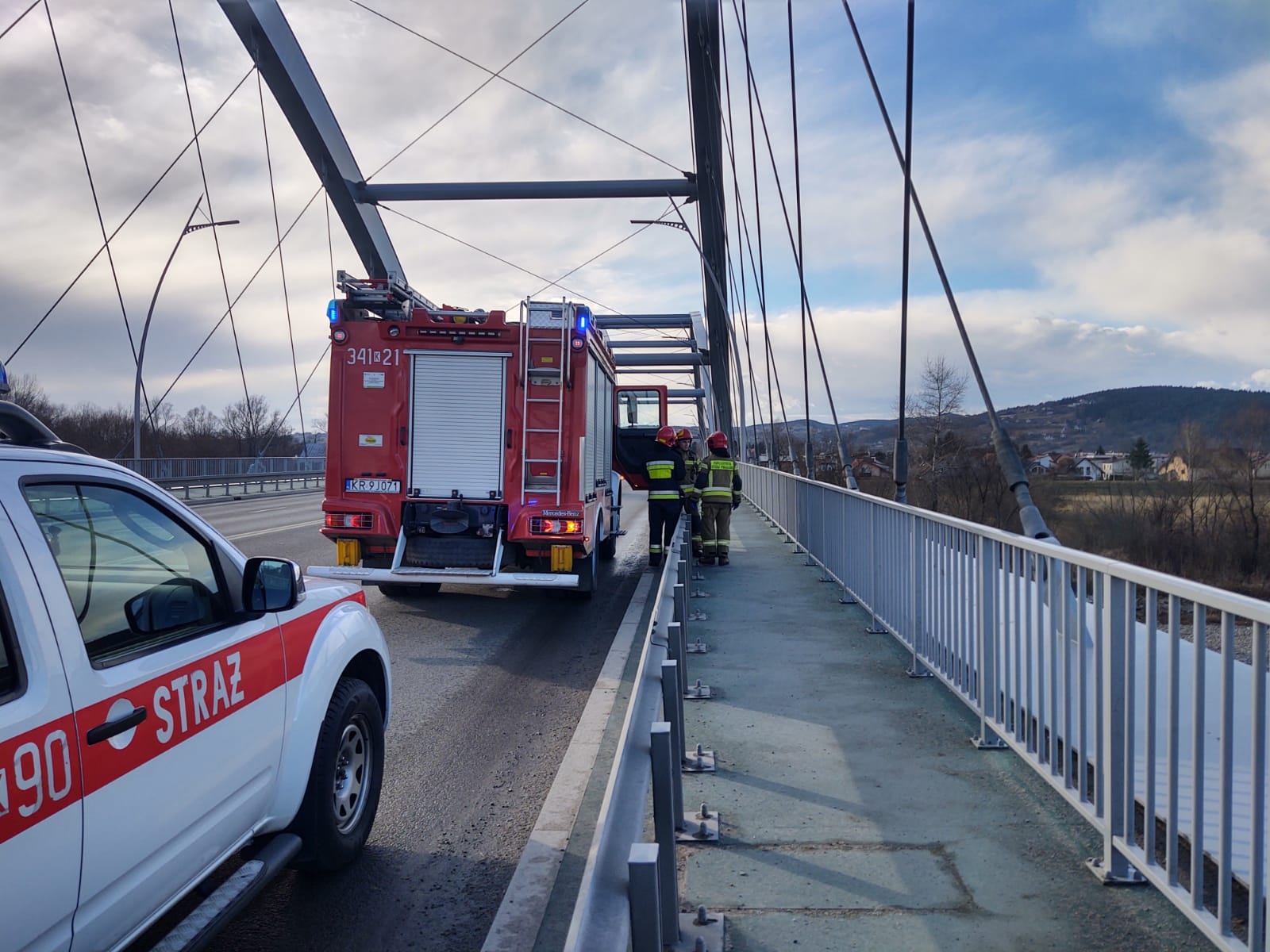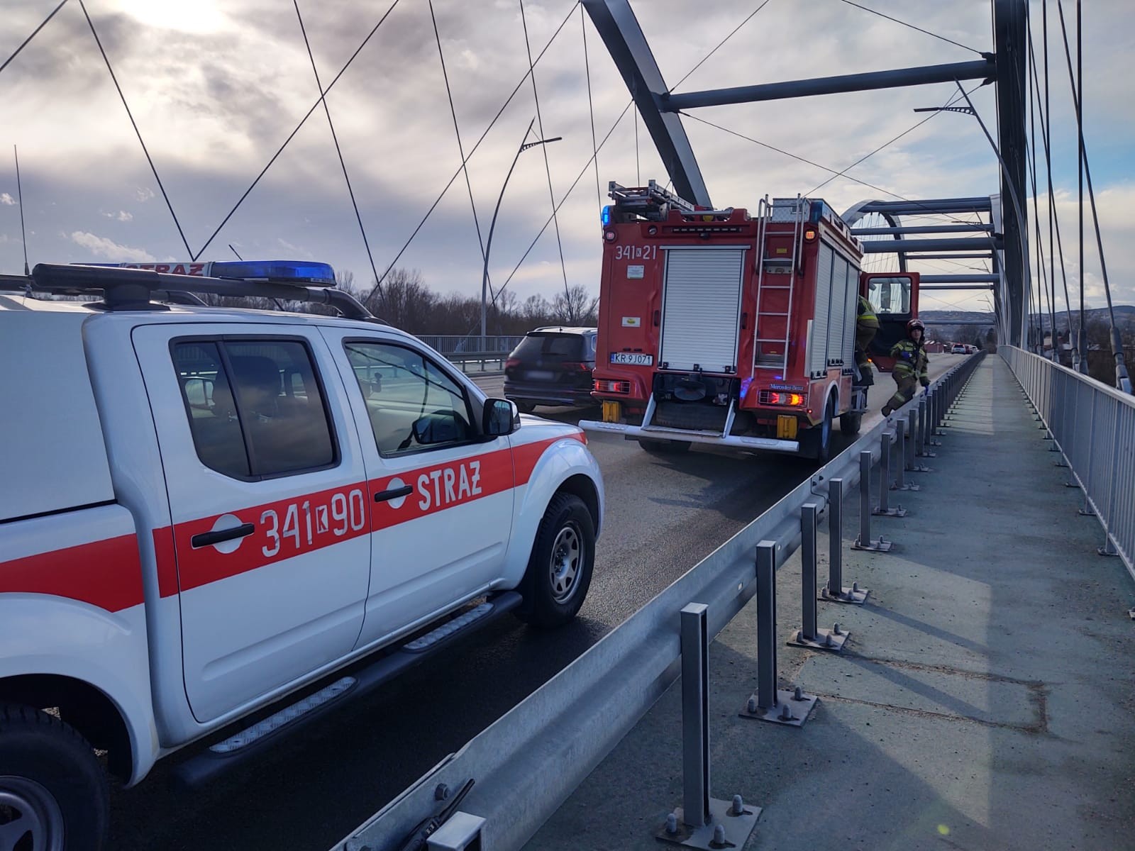 17 lutego o godzinie 14.27 zastępy z JRG nr 1 w Nowym Sączu zadysponowane zostały do działań w Nowym Sączu na most Piłsudskiego przy ulicy Legionów. Po przybyciu na miejsce zdarzenia ustalono, że na moście Piłsudskiego mężczyzna przeszedł przez barierki i chciał skoczyć do rzeki Dunajec. Mężczyzna był przytrzymywany przez osobę postronną, która przechodziła chodnikiem przez most. Mężczyzna usiłujący popełnić samobójstwo był w wieku 55 lat. Działania zastępów straży polegały na zabezpieczeniu miejsca zdarzenia, przeskoczeniu ratowników przez barierki do mężczyzny, który usiłował skoczyć z mostu oraz siłowym przełożeniu mężczyzny na drugą stronę barierek na chodnik. Mężczyźnie udzielono wsparcia psychicznego, aż do czasu przyjazdu Policji. Po przybyciu patrolu Policji osoba została przekazana funkcjonariuszom Policji. Na miejscu pozostała Policja wraz z osobą poszkodowaną w oczekiwaniu na przyjazd karetki Pogotowia Ratunkowego. Działania strażaków trwały kilkanaście minut.