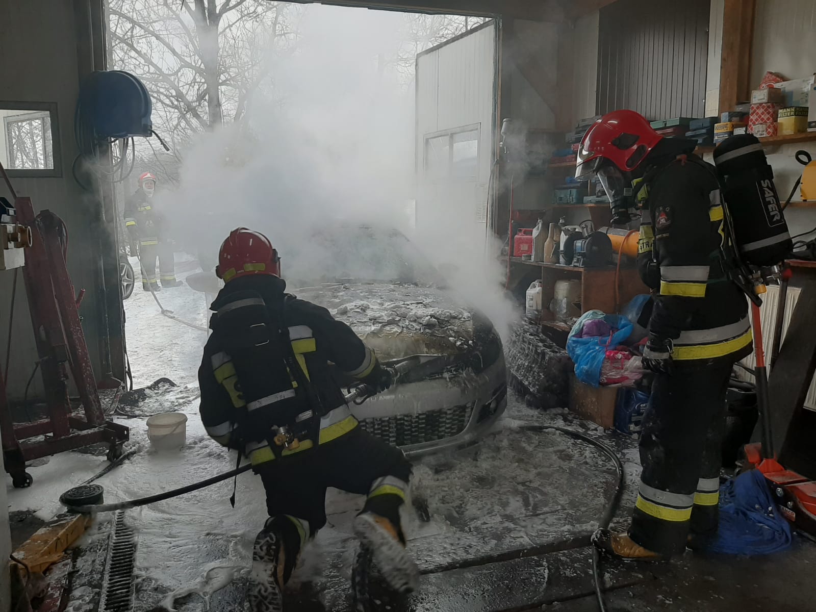 16 lutego około godziny 14.45 zastępy z JRG nr 1 w Nowym Sączu zadysponowane zostały do działań w Nowym Sączu na ulicę Librantowską. Po przybyciu na miejsce zdarzenia stwierdzono, że palił się samochód VW Scirocco. Pożarem objęta była przednia część pojazdu. Samochód znajdował się częściowo w garażu a częściowo na zewnątrz. Działania strażaków polegały na zabezpieczenie miejsca zdarzenia, podaniu prądu piany ciężkiej na część pojazdu objętego pożarem w celu przytłumienia płomieni. Przemieszczono pojazd poza garaż. Dogaszono pojazd oraz go dokładnie przelano. Sprawdzono samochód kamerą termowizyjną nie stwierdzając nieprawidłowości. Działania strażaków trwały godzinę. Prawdopodobną przyczyną pożaru było zwarcie instalacji elektrycznej w samochodzie.